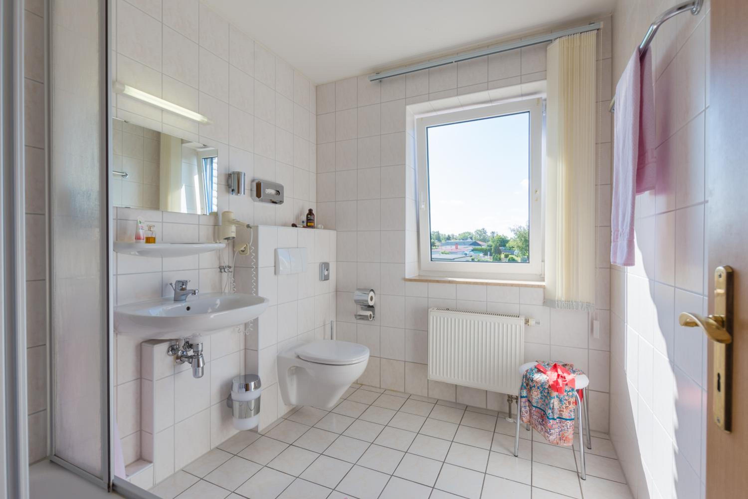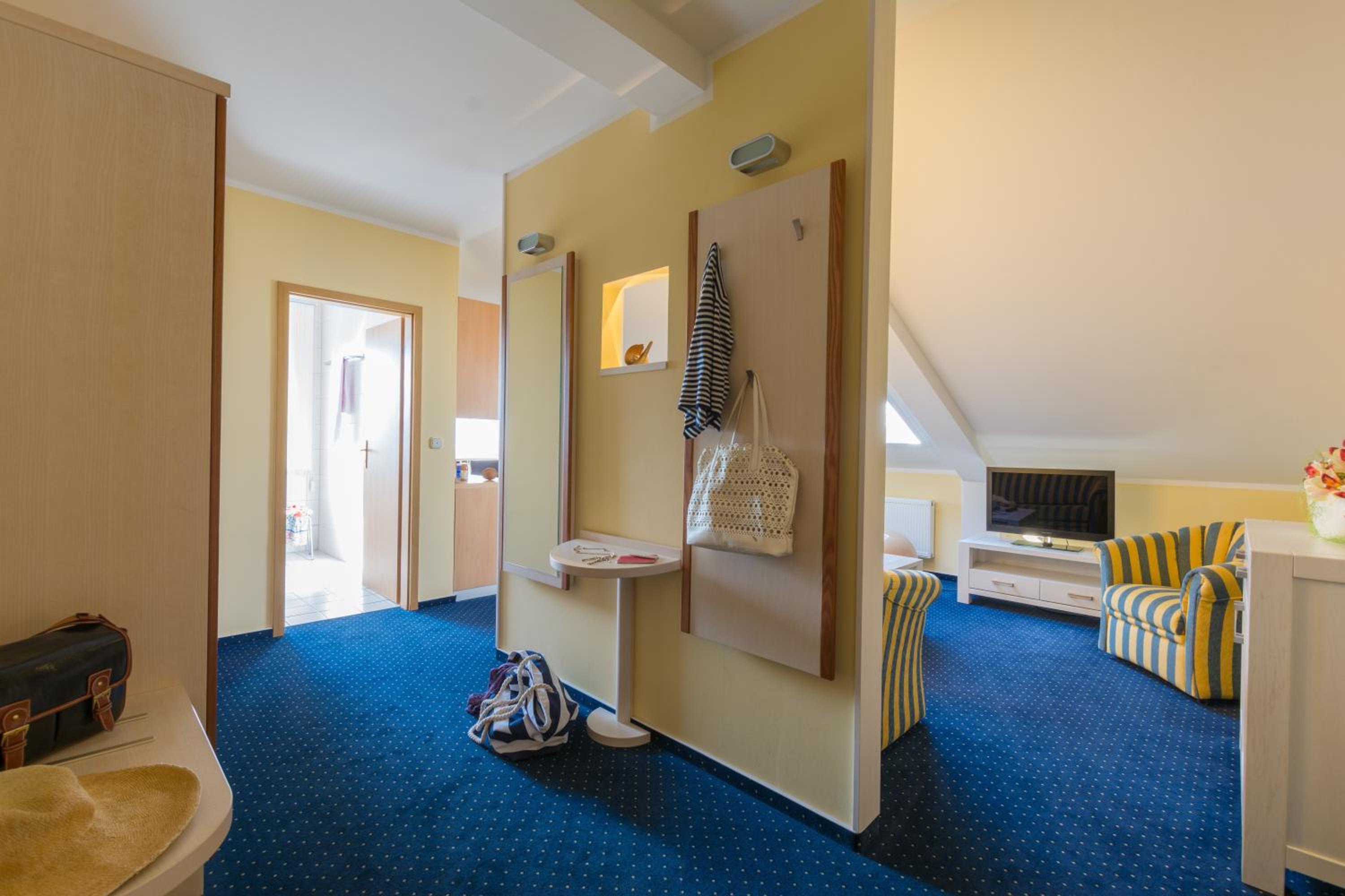 Die Lage des Hotels ist am Salzhaff. Wir hatten aus dem Dachgeschoss einen wunderbaren Blick darauf. Das Zimmer ist klein, aber ansonsten okay.