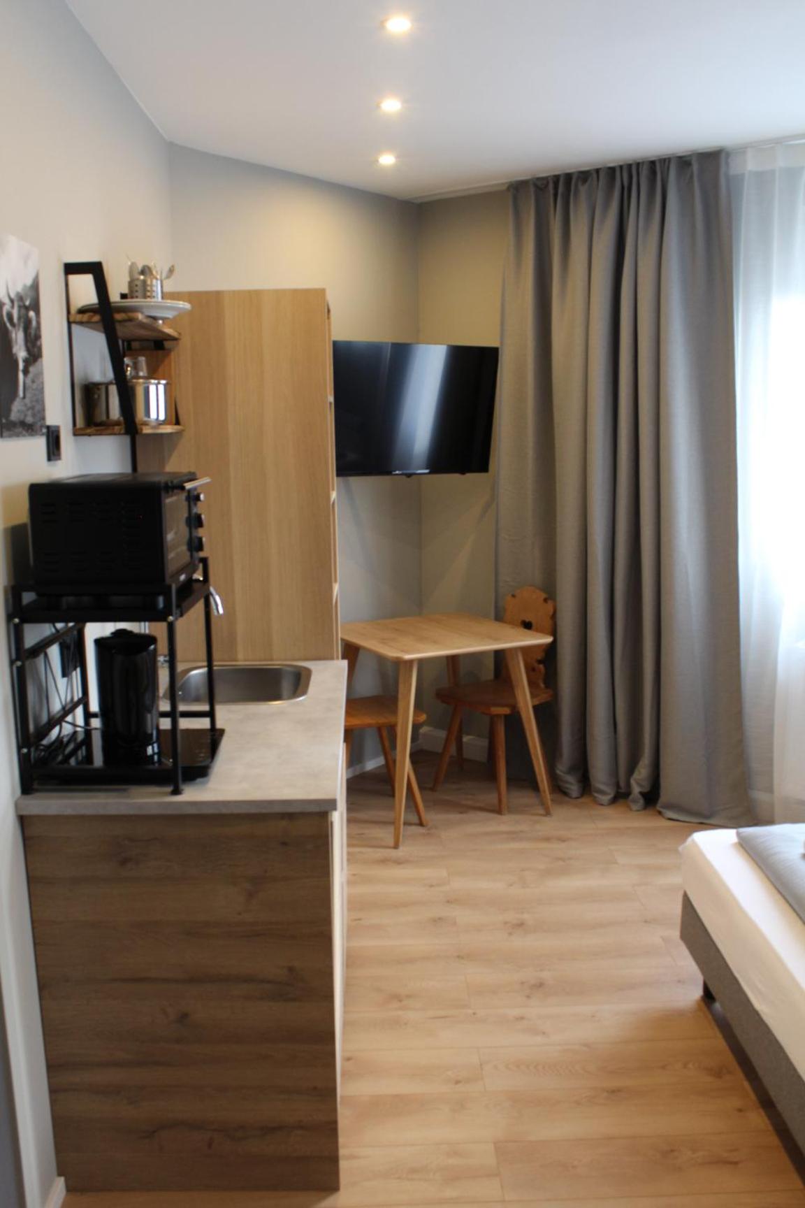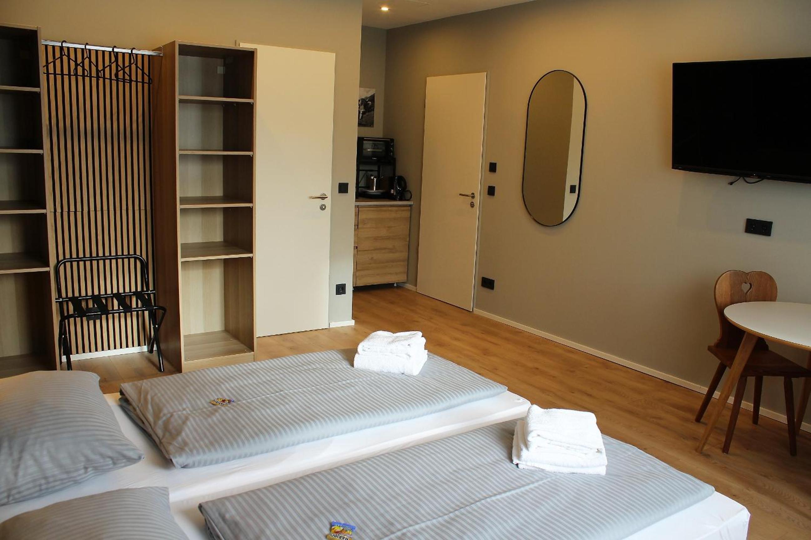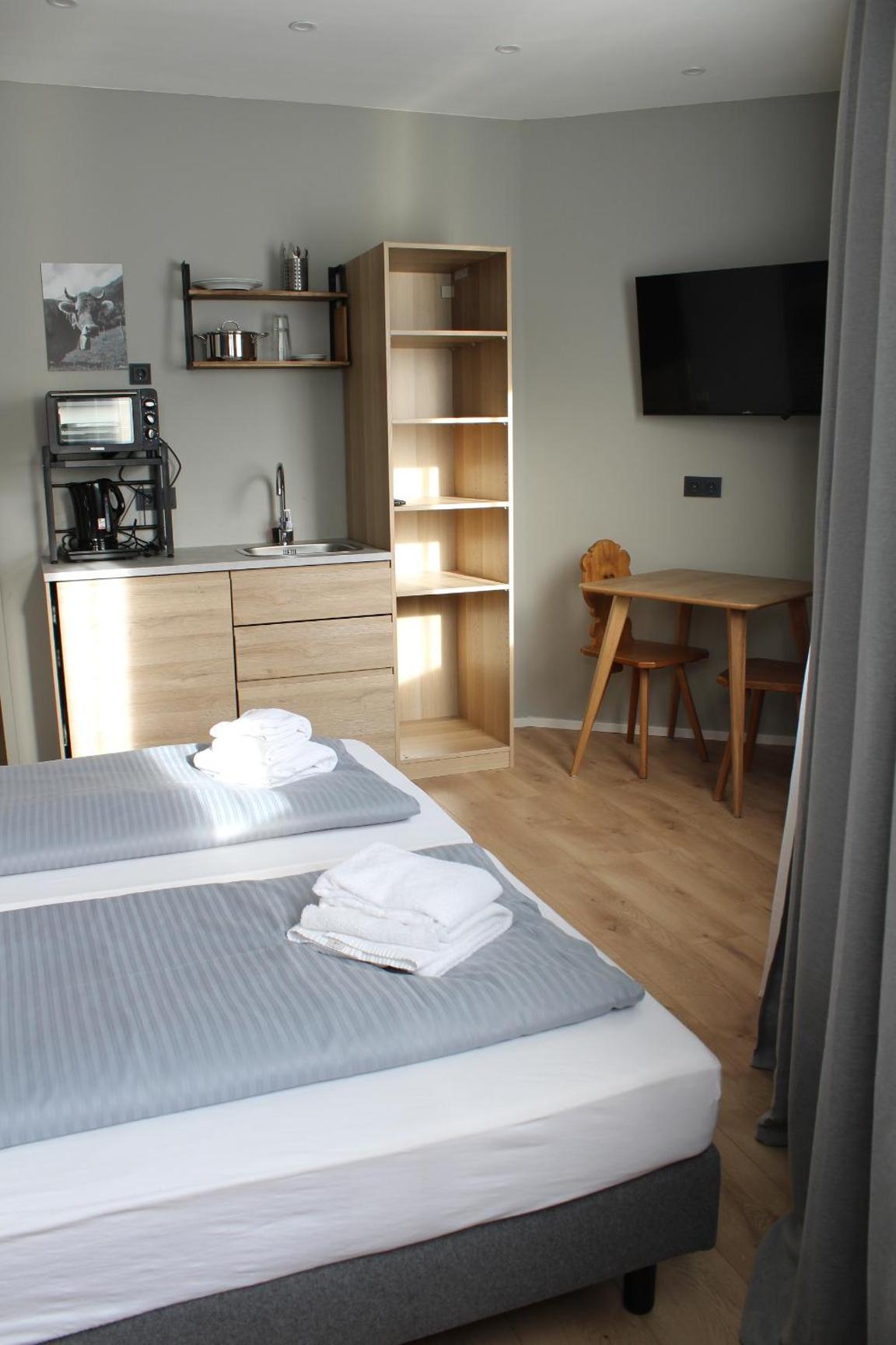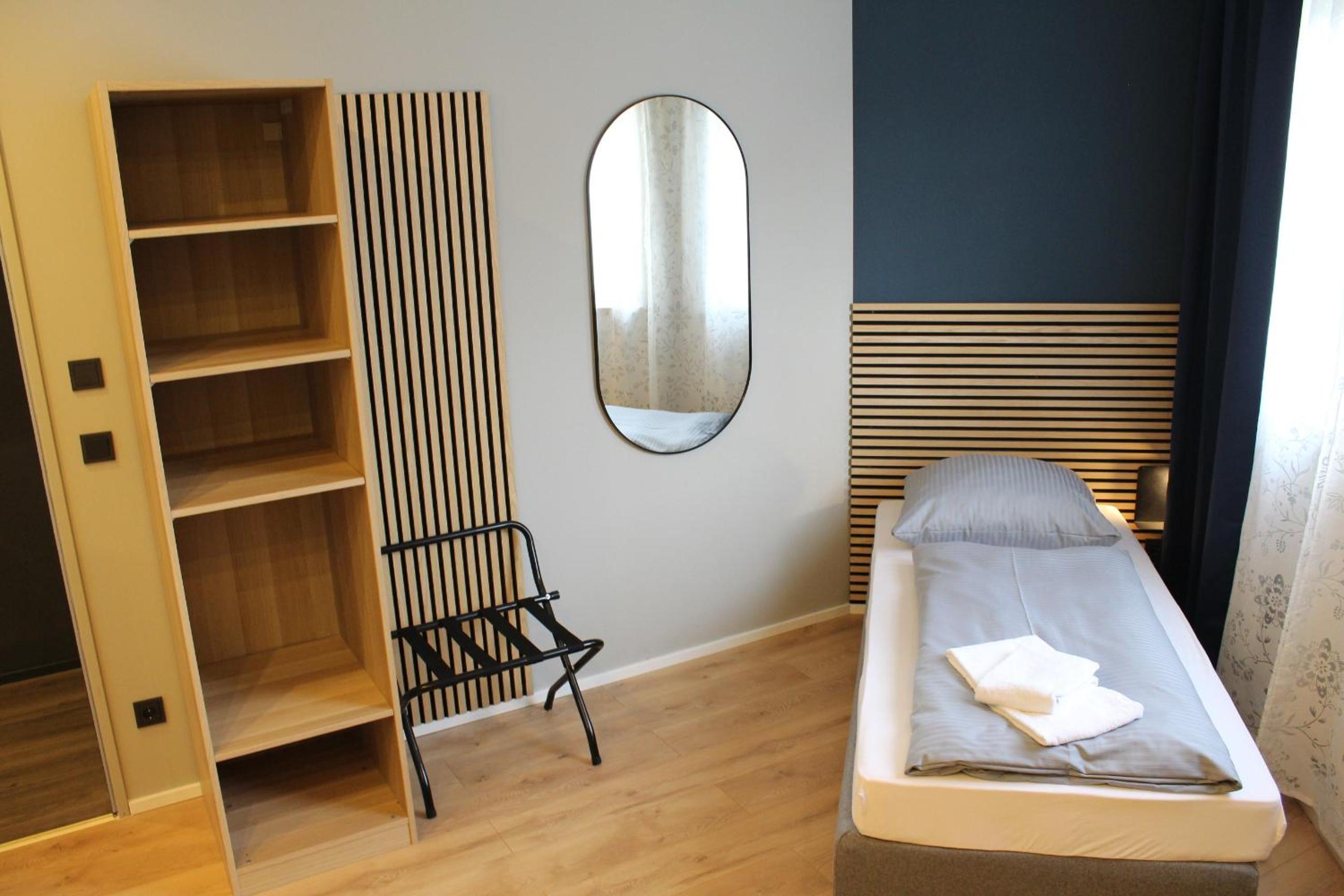 Es war alles vorhanden was man benötigt, das Bett war bequem, das Zimmer hat einen gepflegten Eindruck gemacht. Auch ein kleiner Tisch und Kühlschrank war vorhanden. Einkaufsmöglichkeiten waren zu Fuß erreichbar.