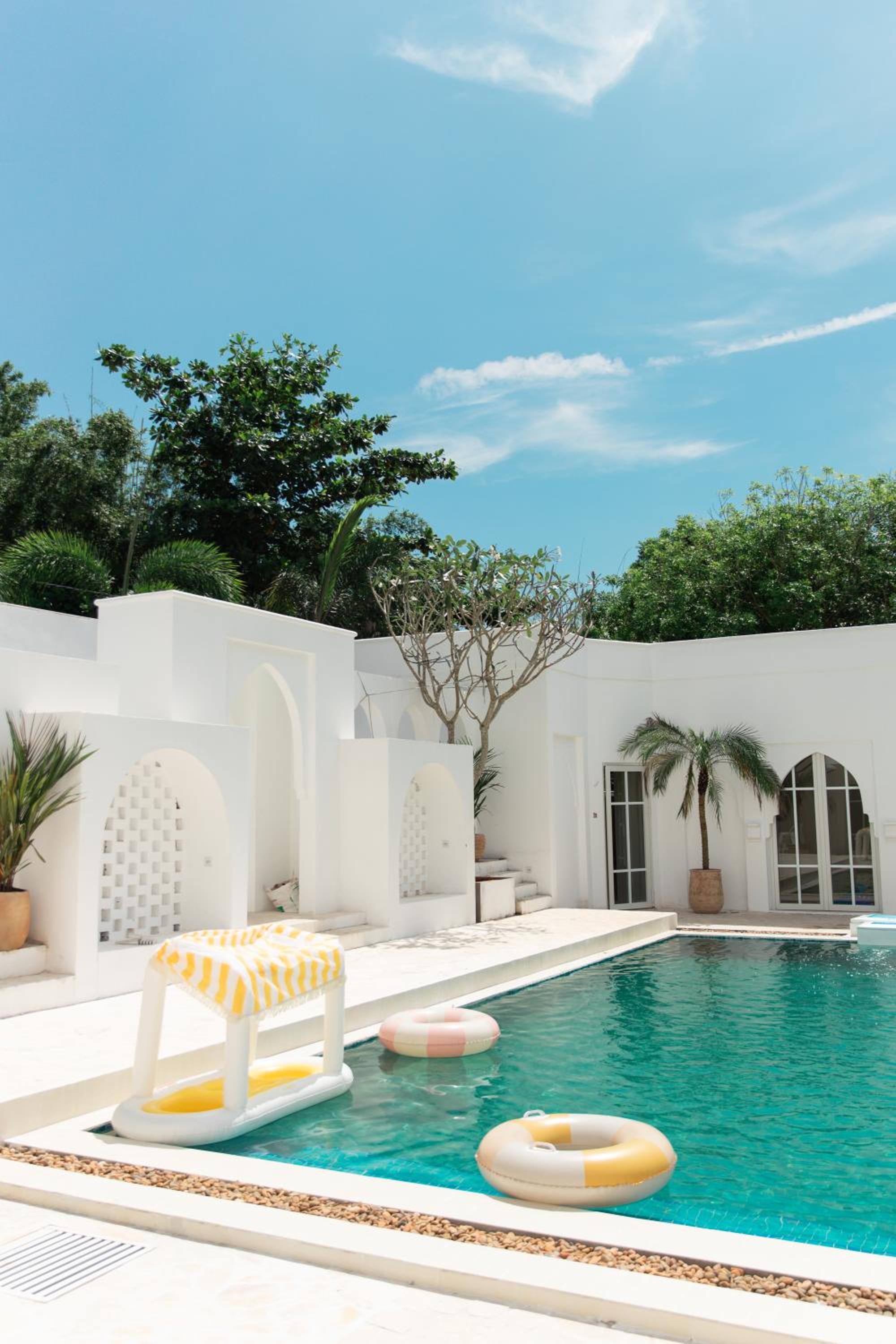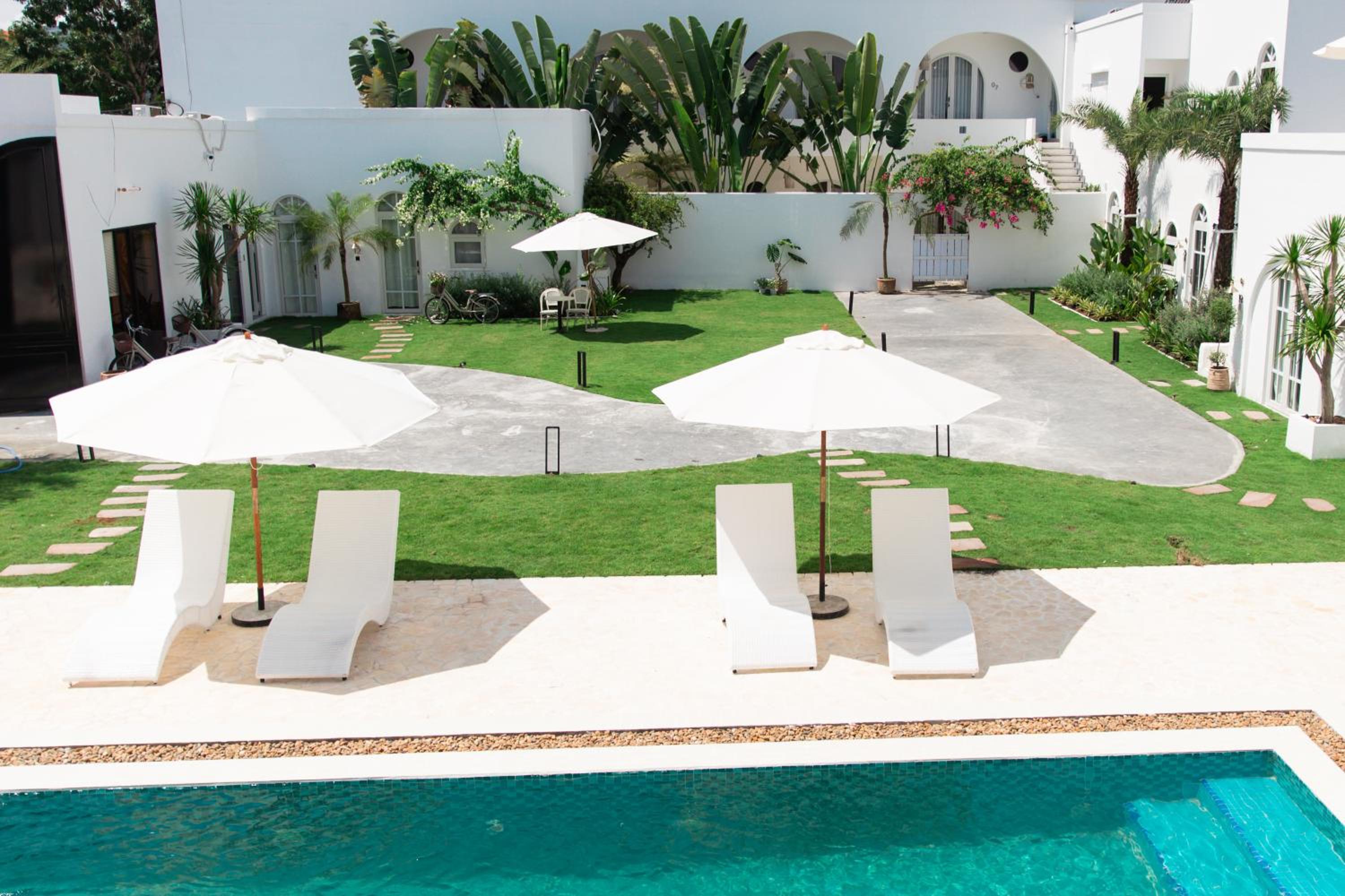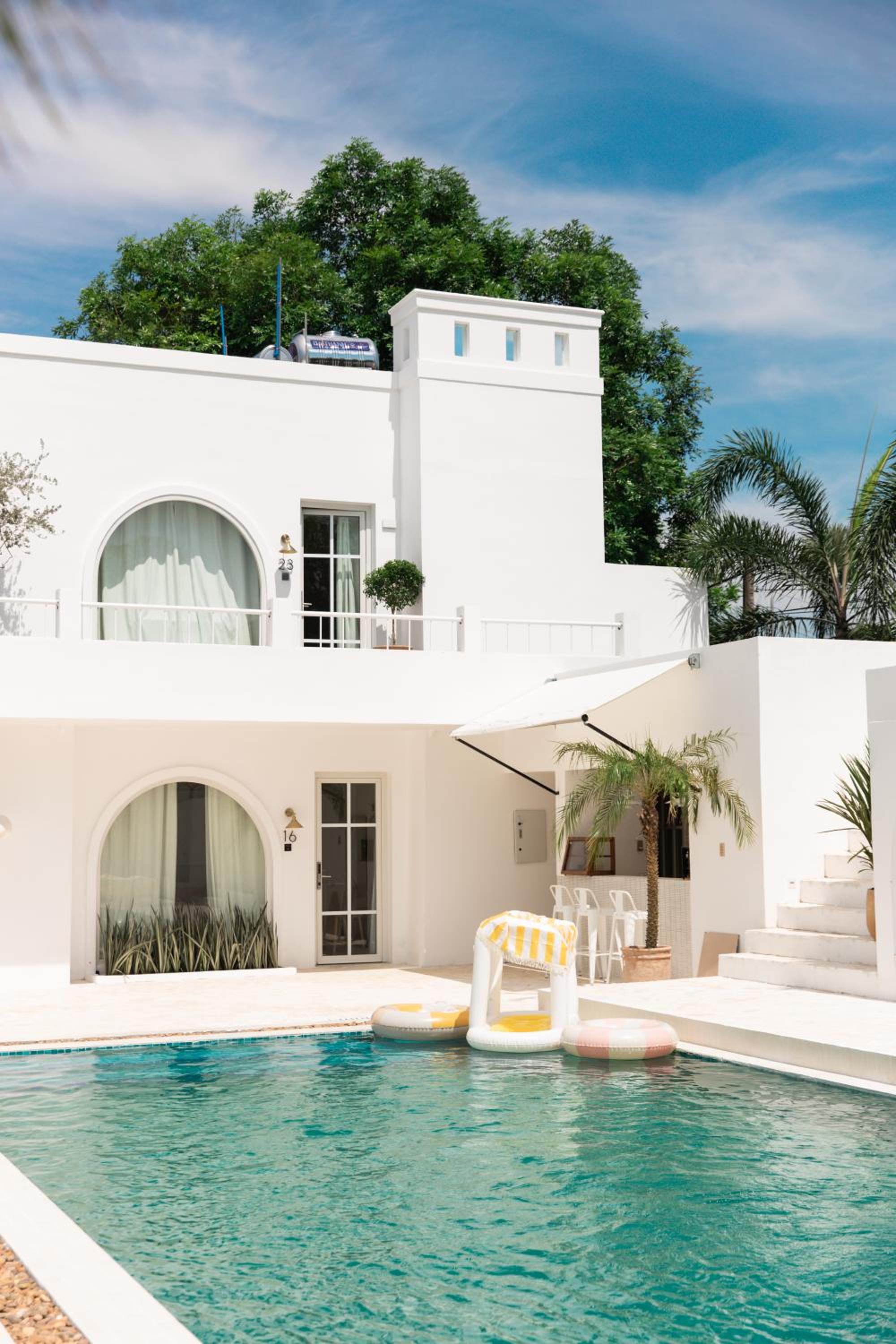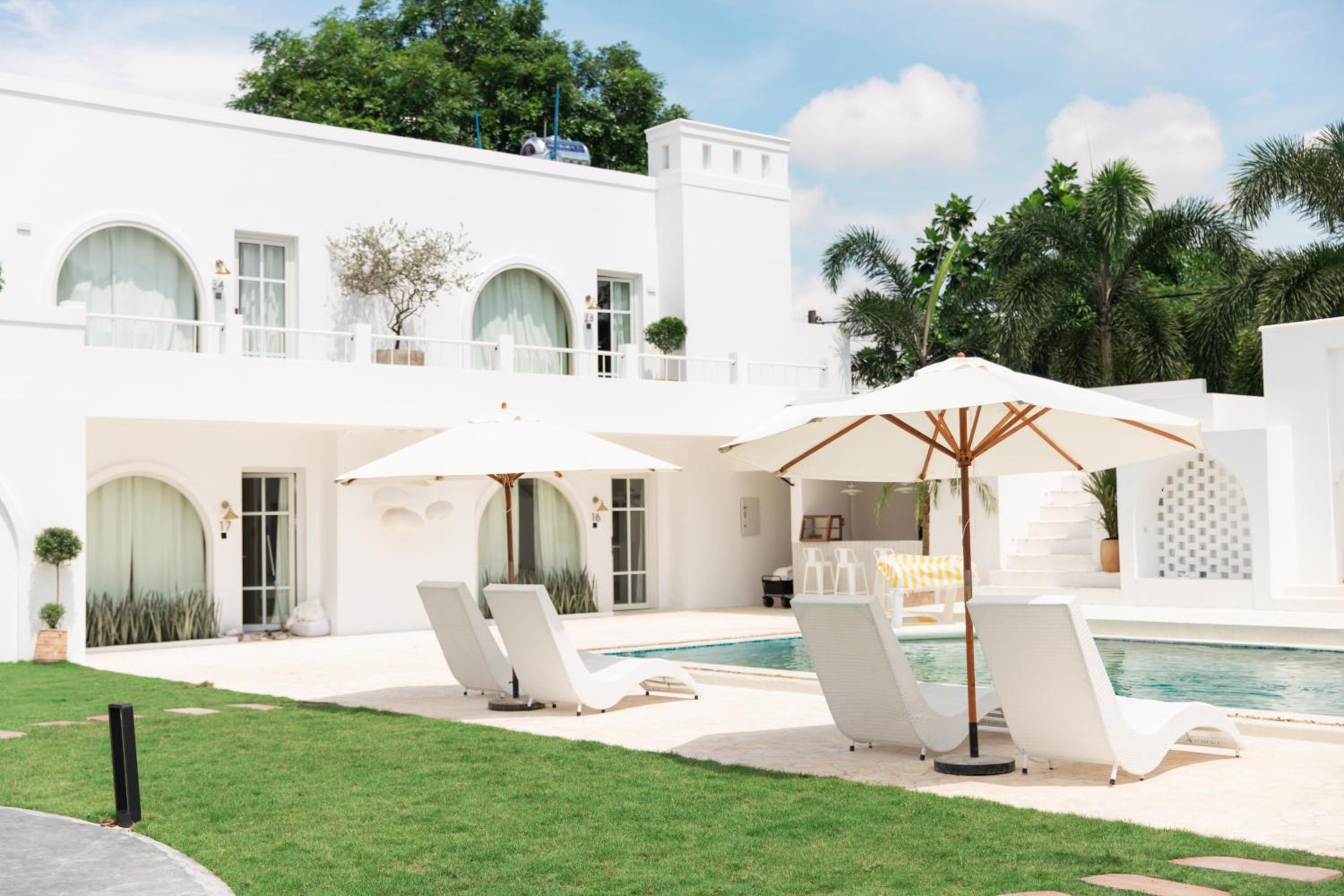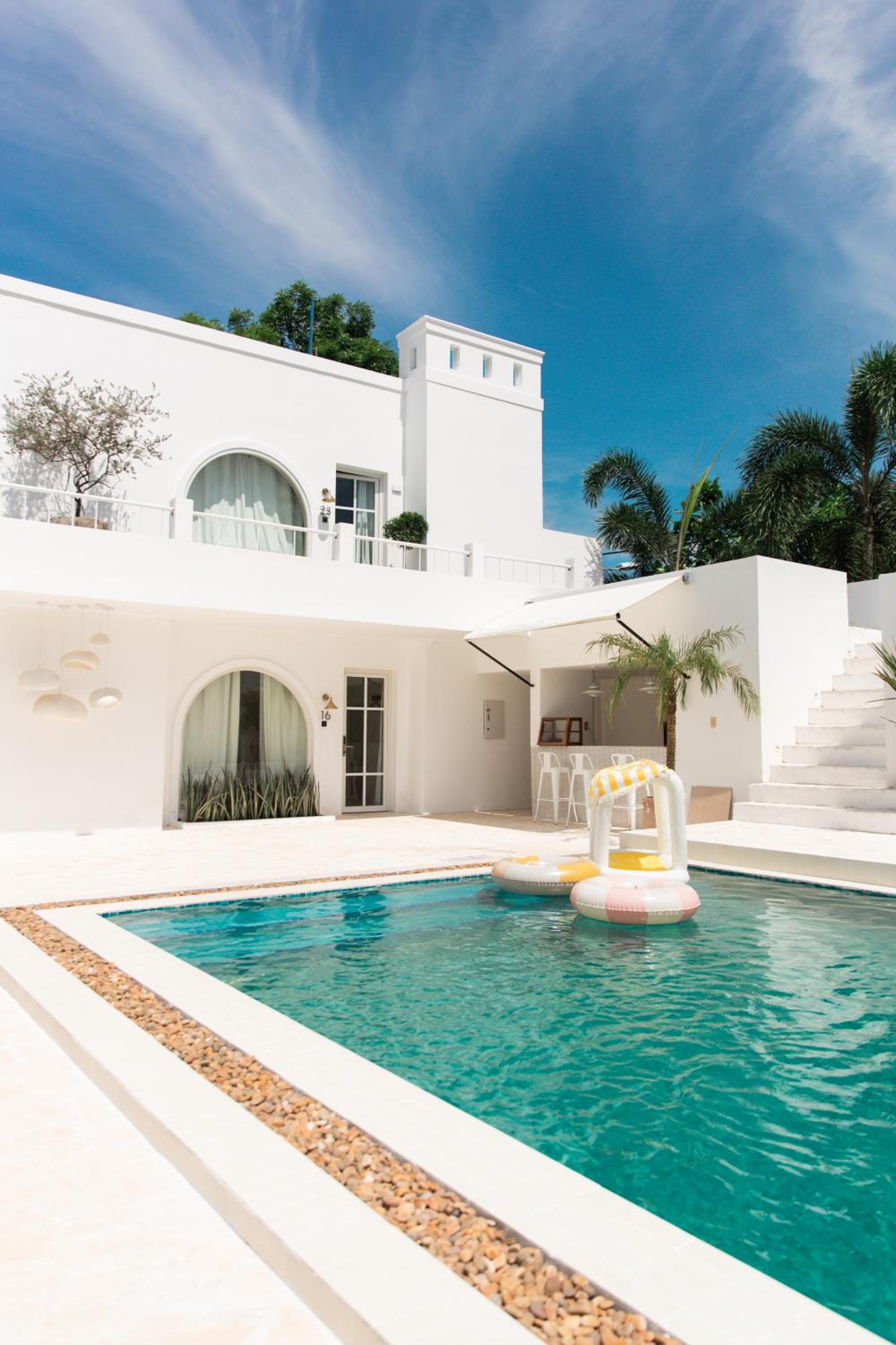 Greek-islands vibe homestay, very cool, located in a quiet neighborhood, nice swimming pool, excellent value-for-money, nice staff.
