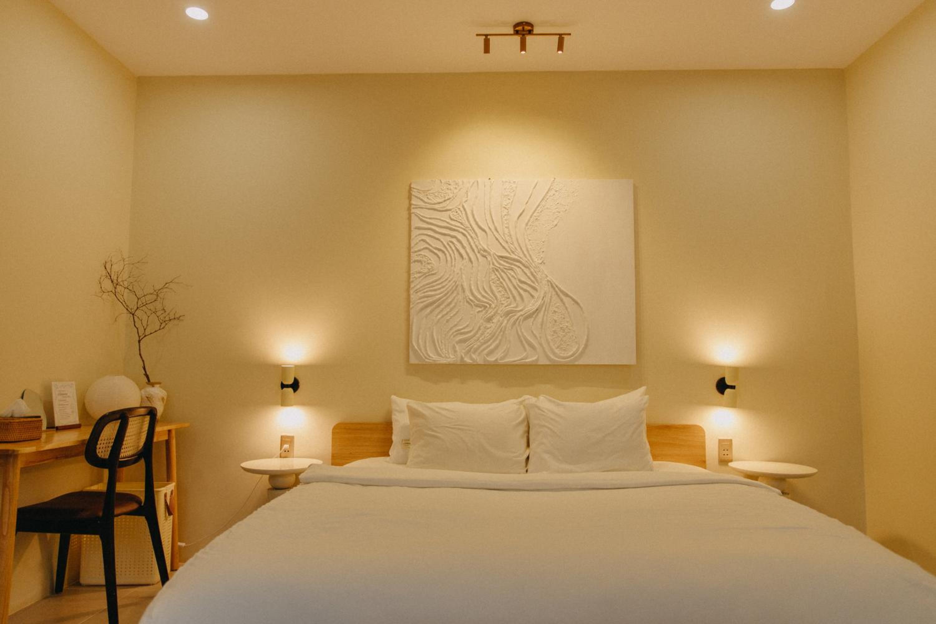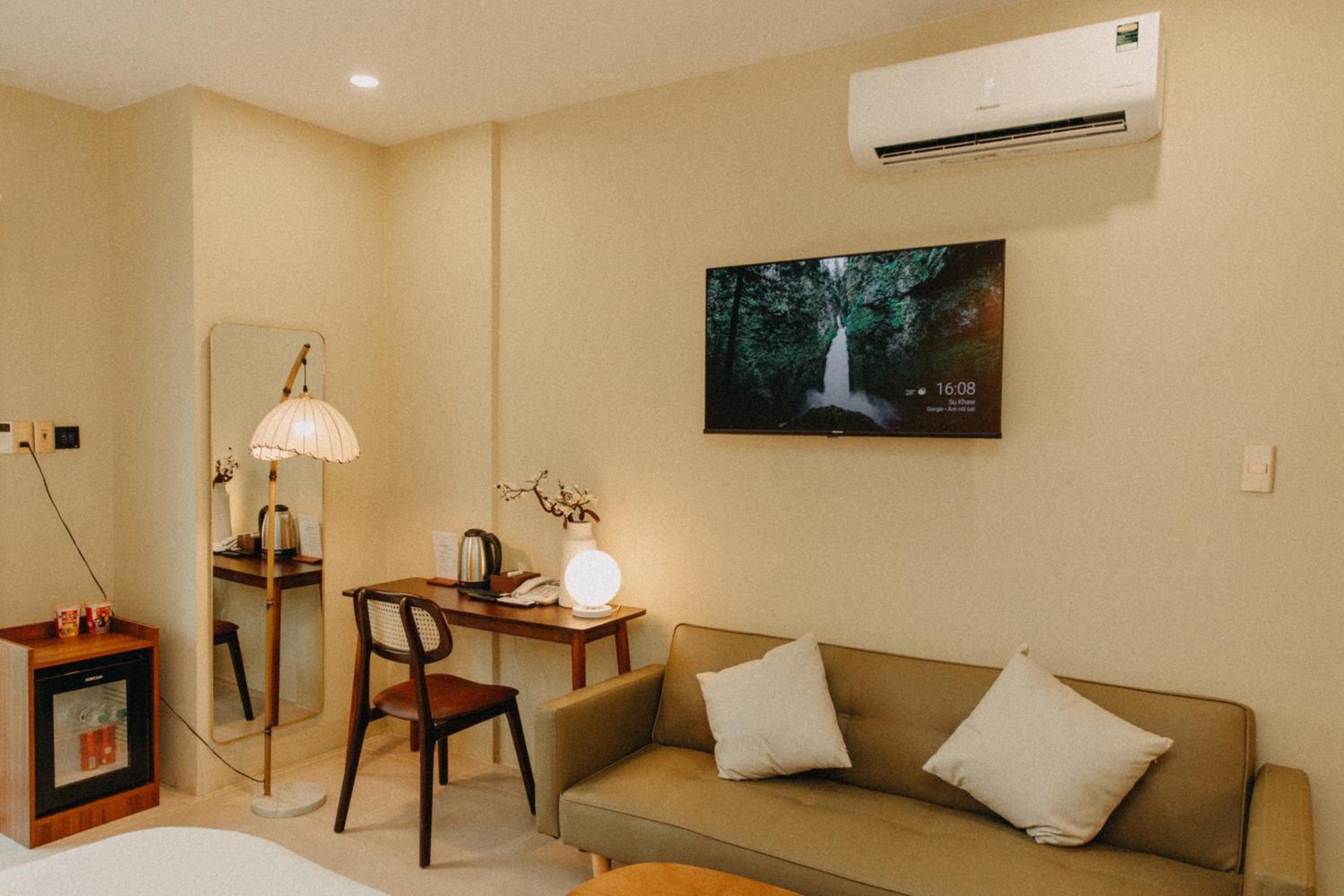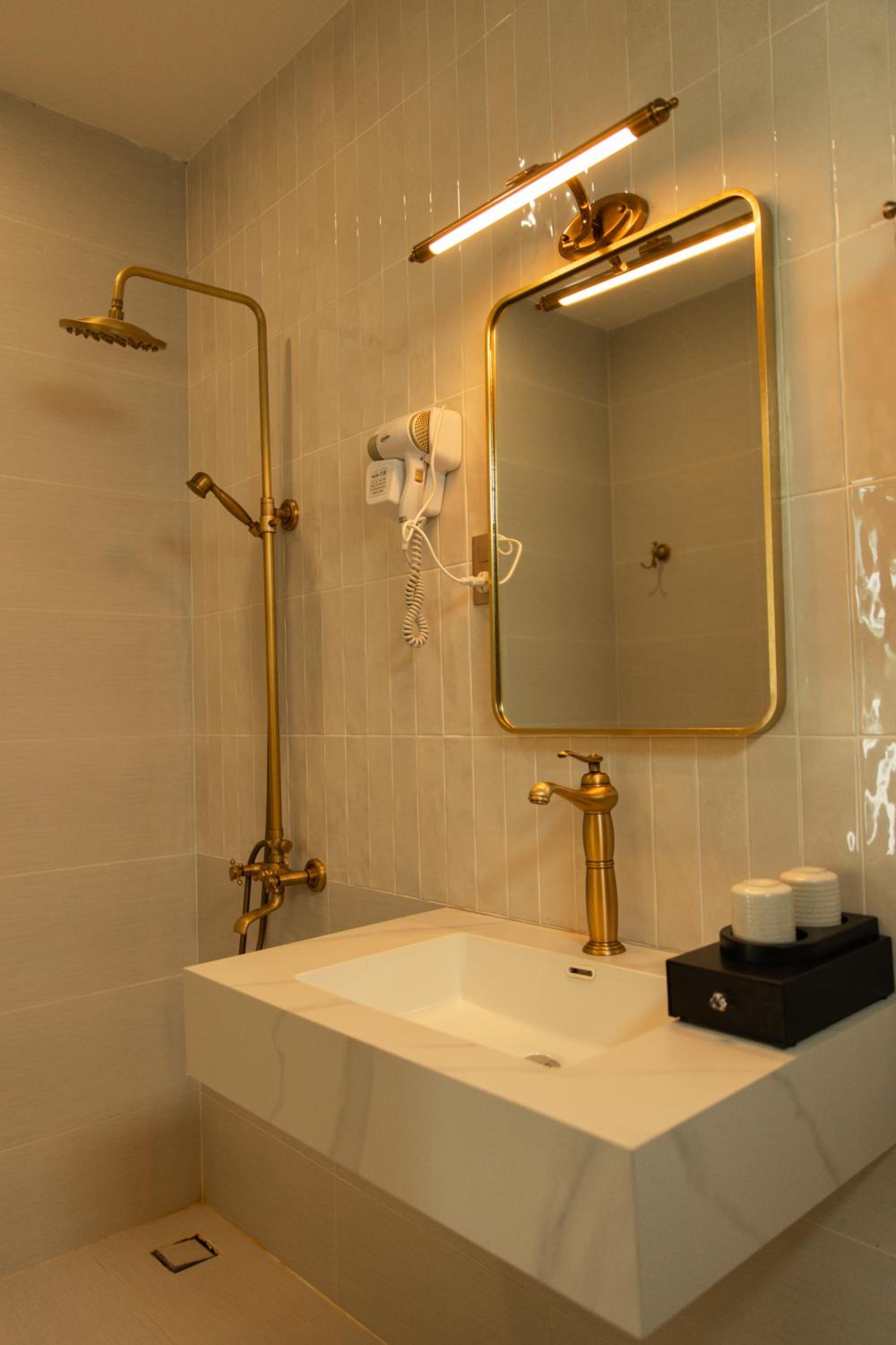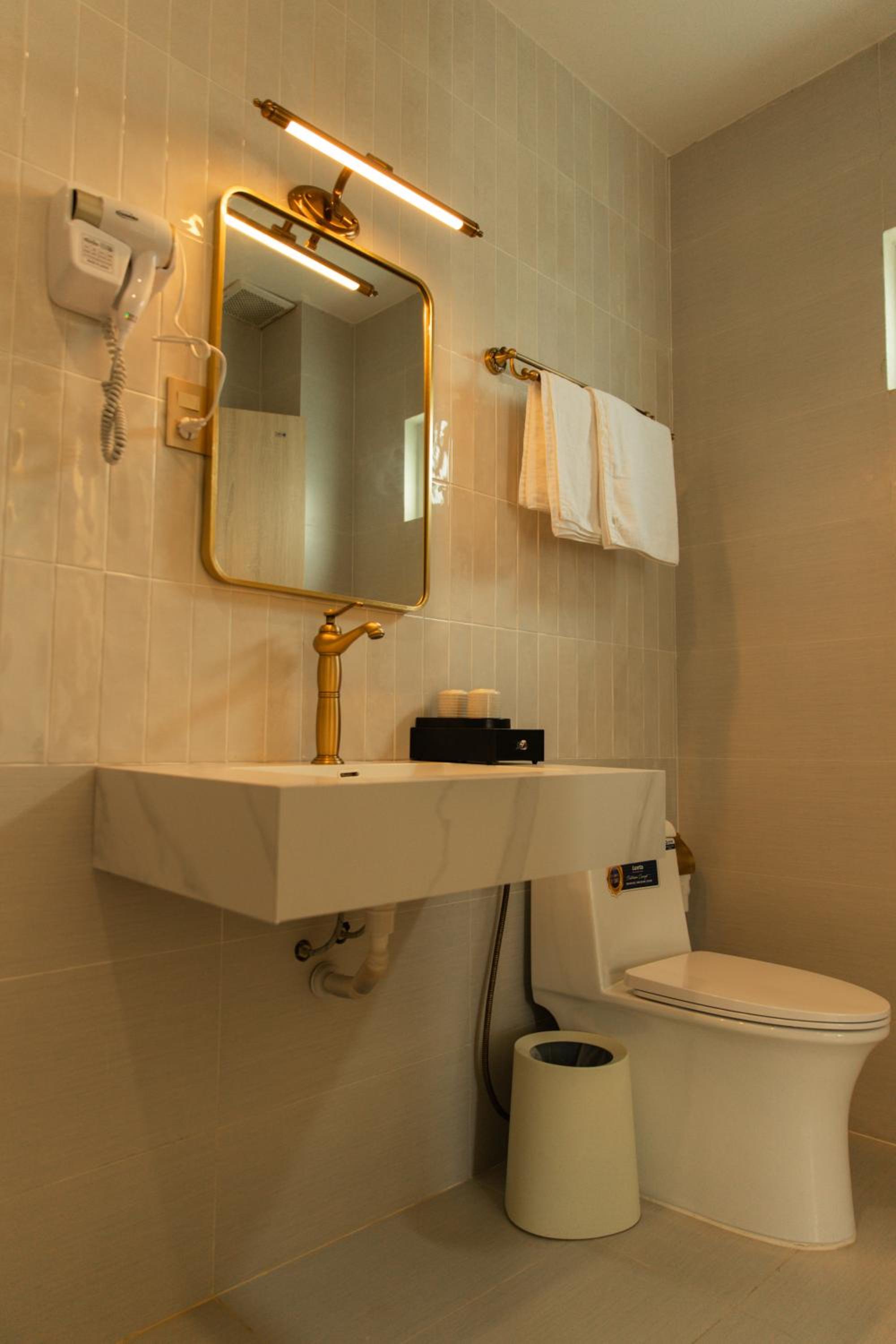 New establishment with a modern minimalist look and decoration. The illumination around the hotel and our room was great. The staff, as all over Vietnam, was extremely friendly and helpful.
