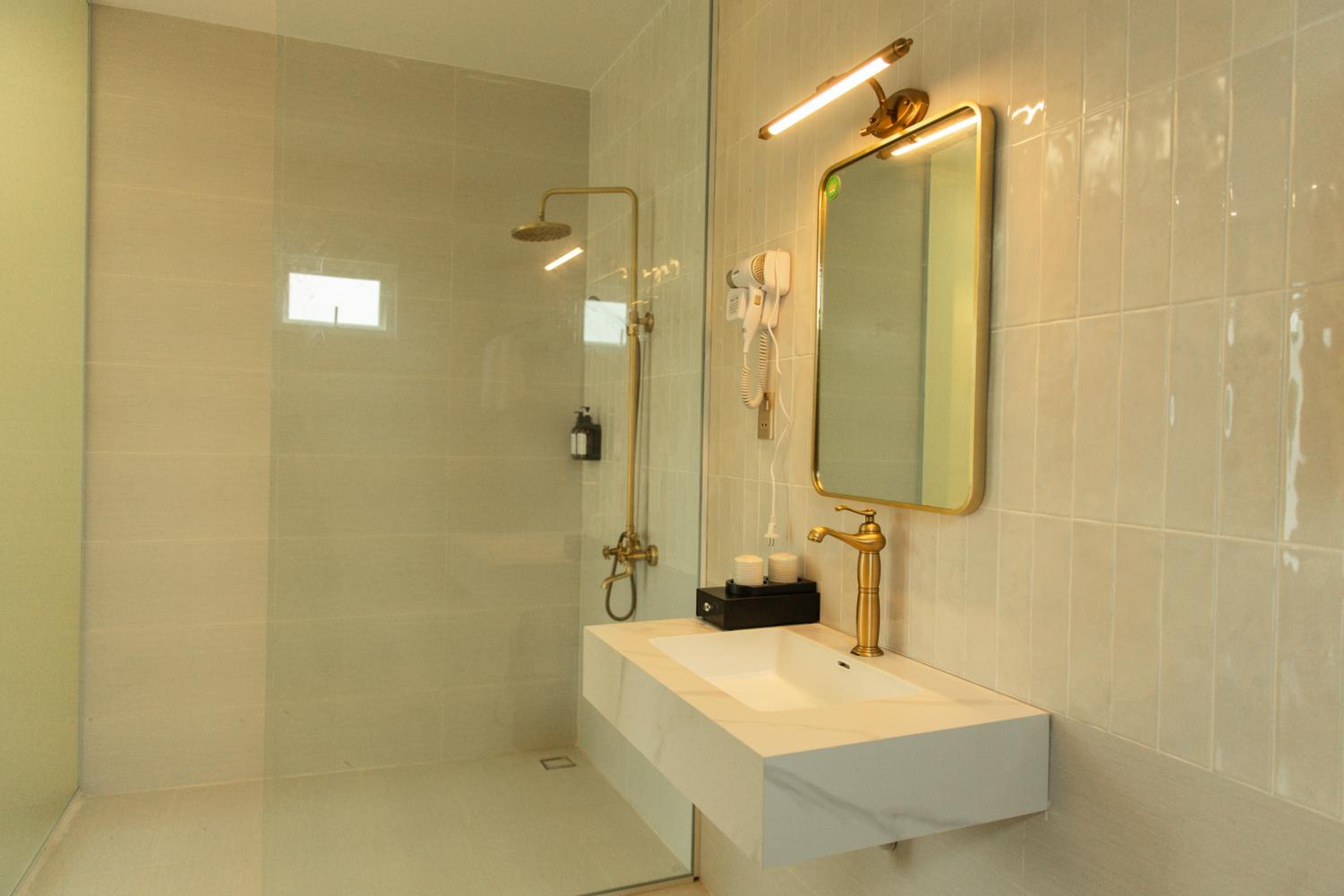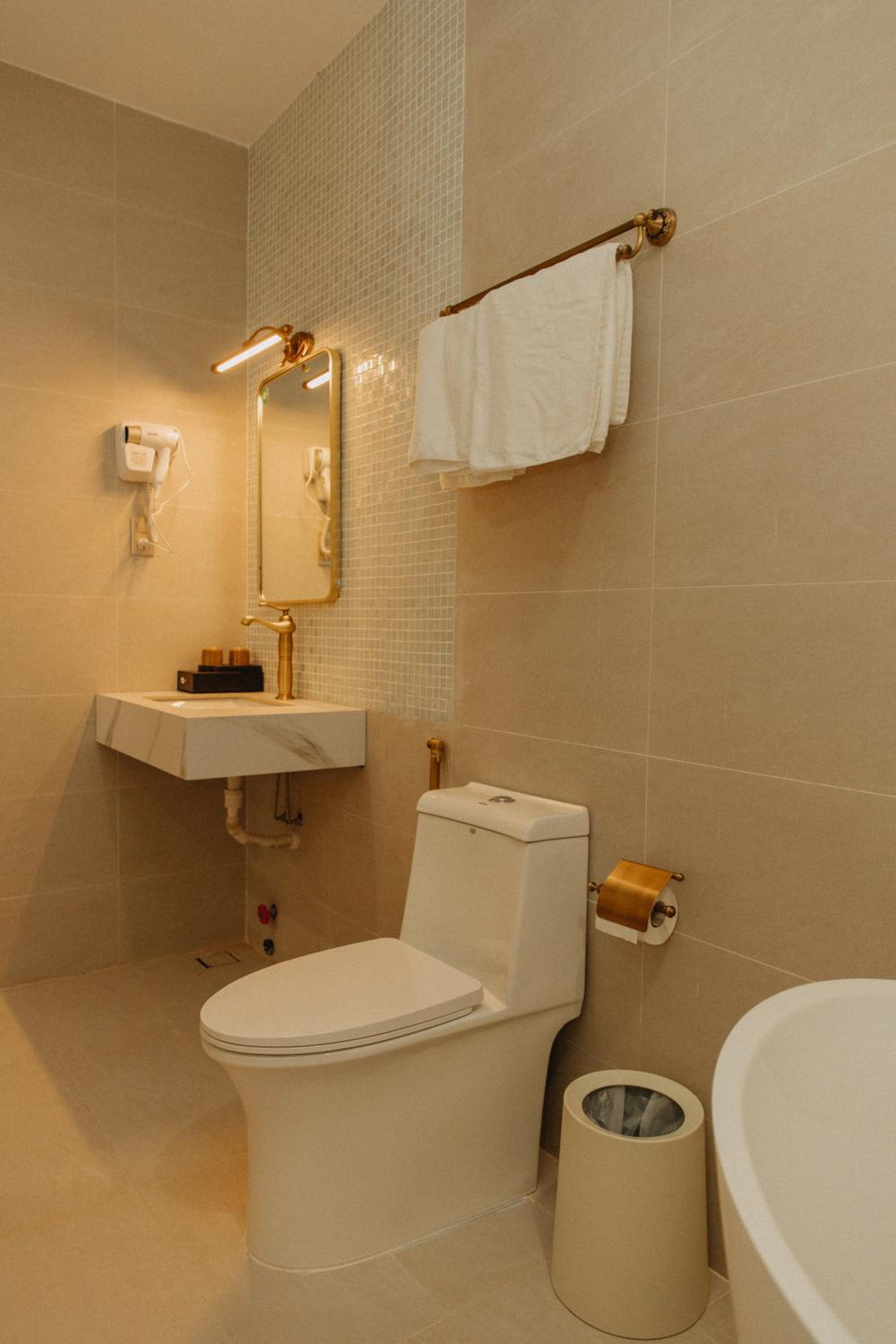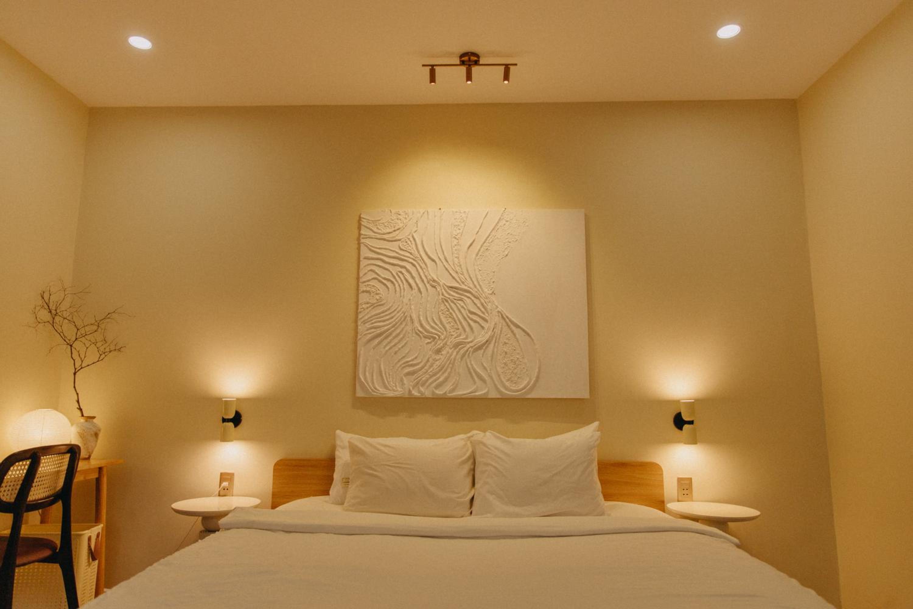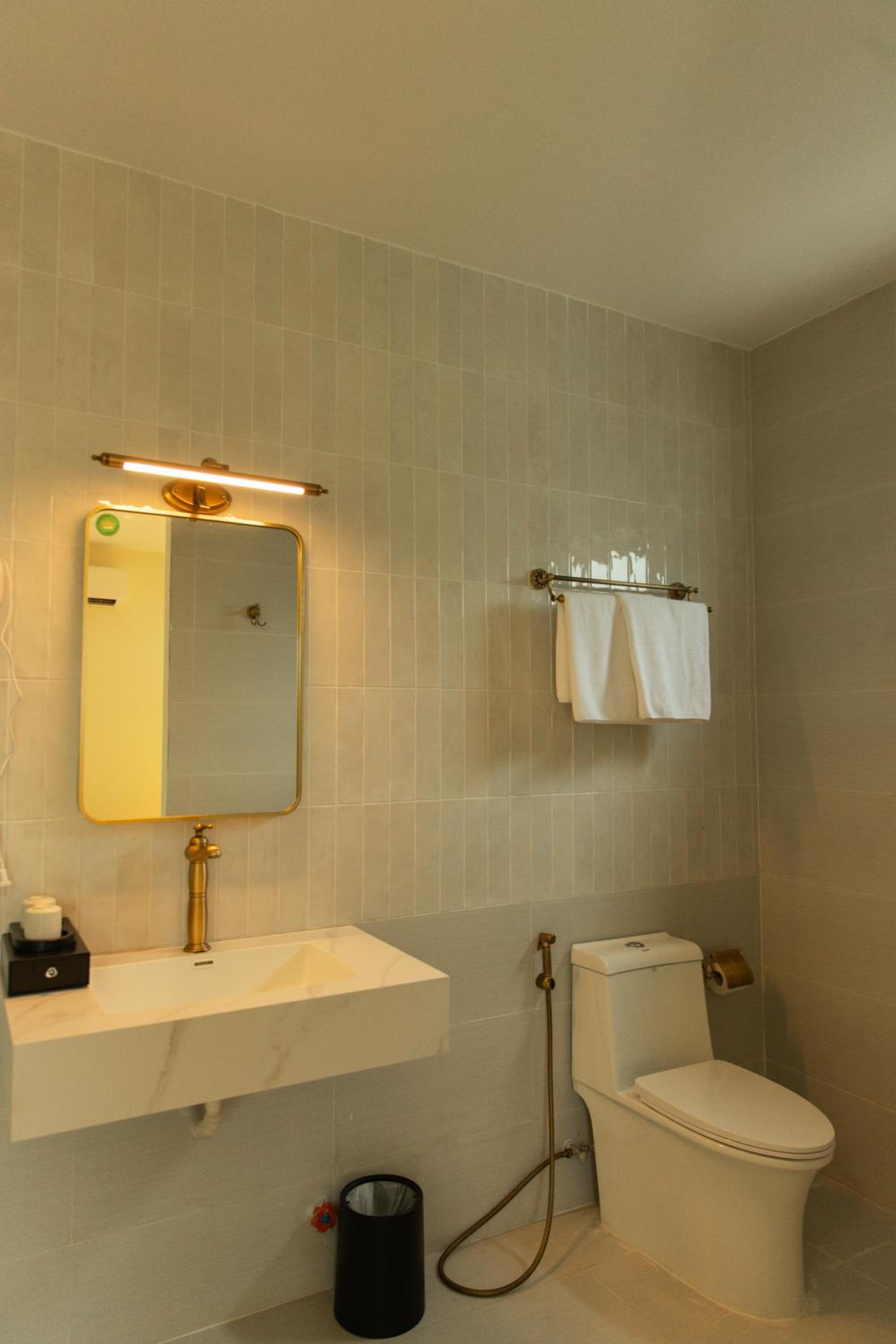 New establishment with a modern minimalist look and decoration. The illumination around the hotel and our room was great. The staff, as all over Vietnam, was extremely friendly and helpful.