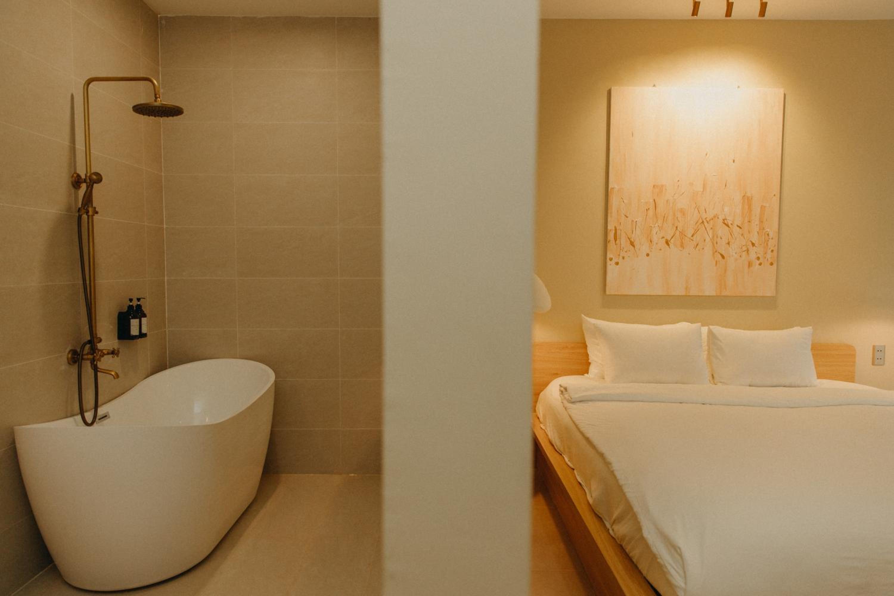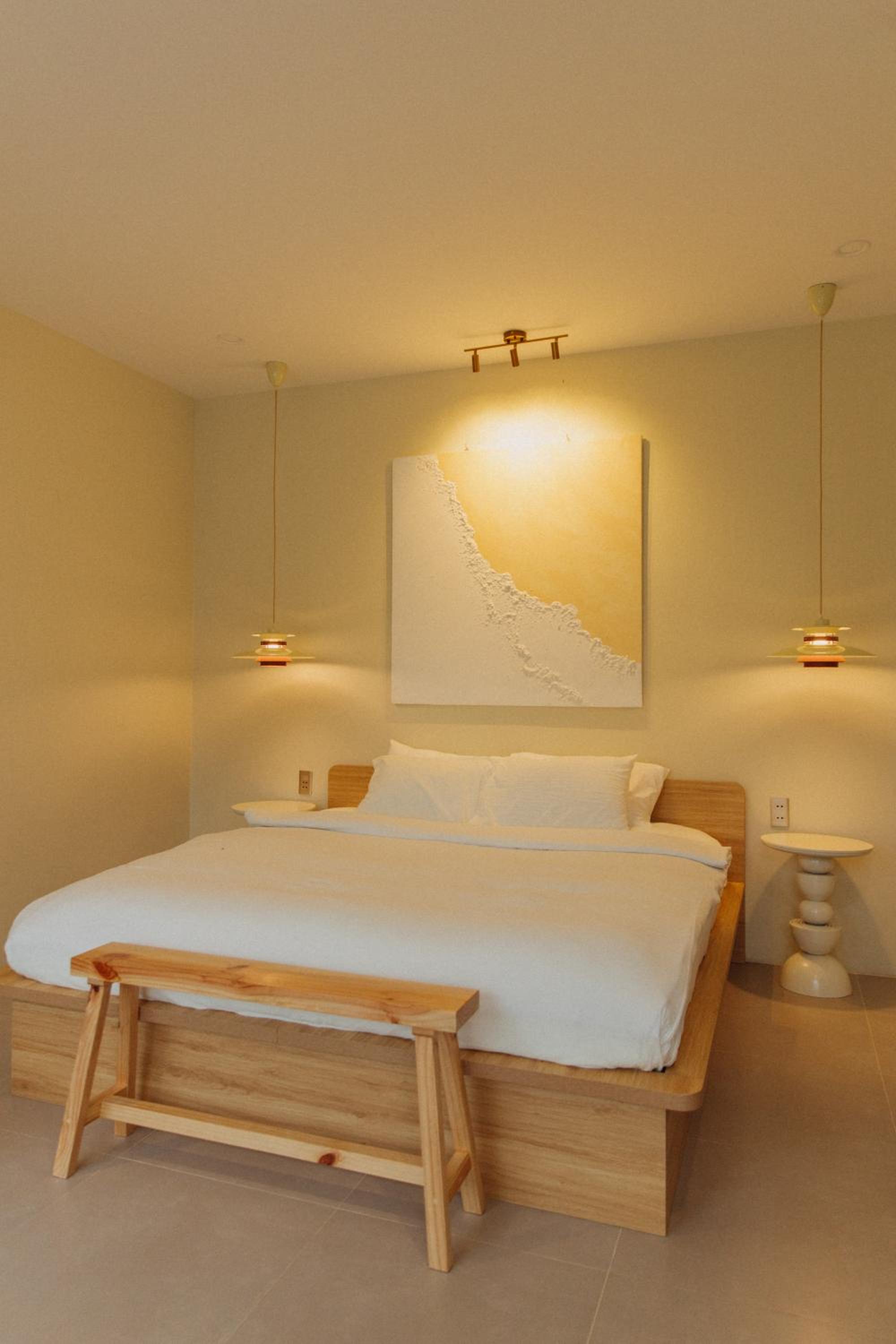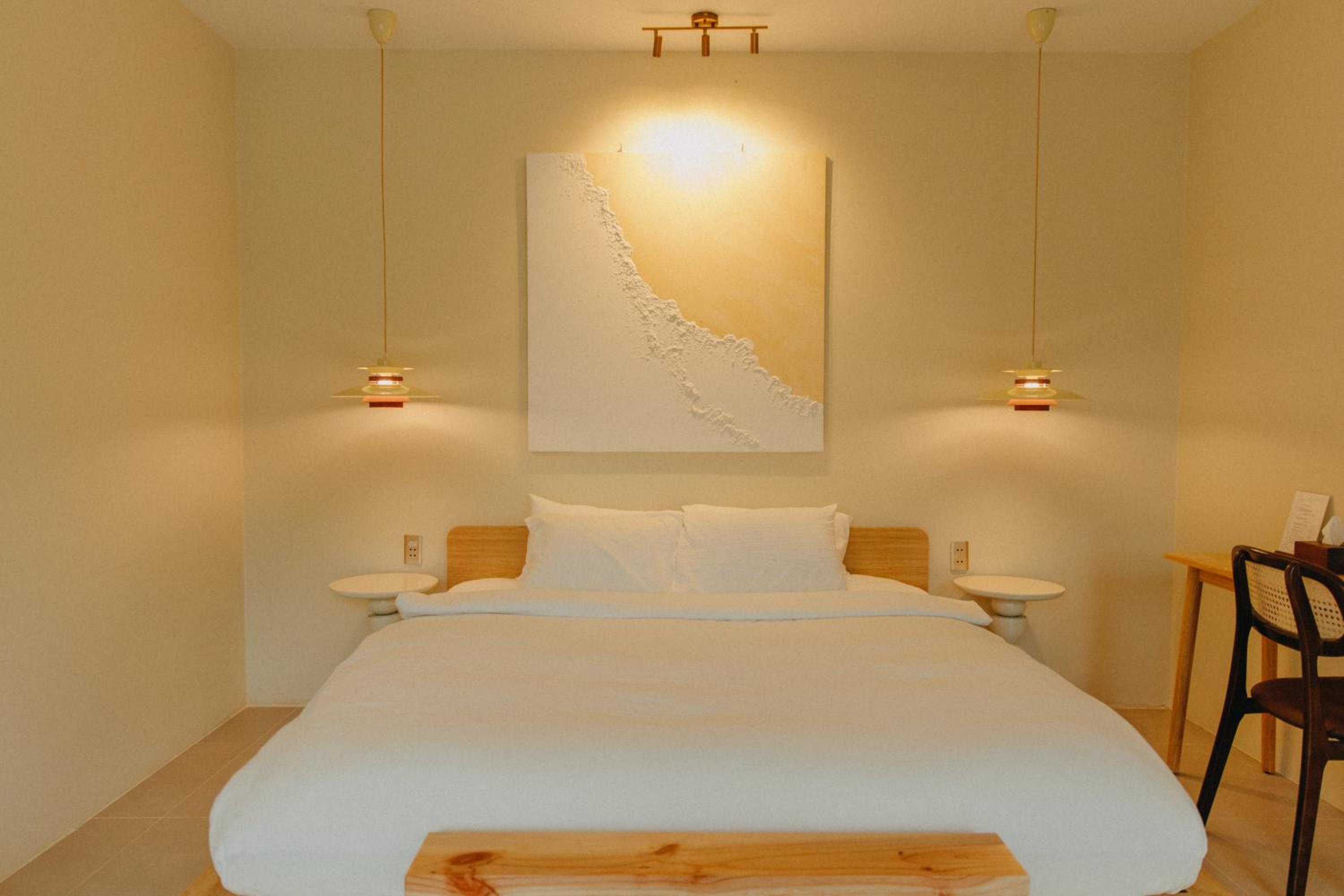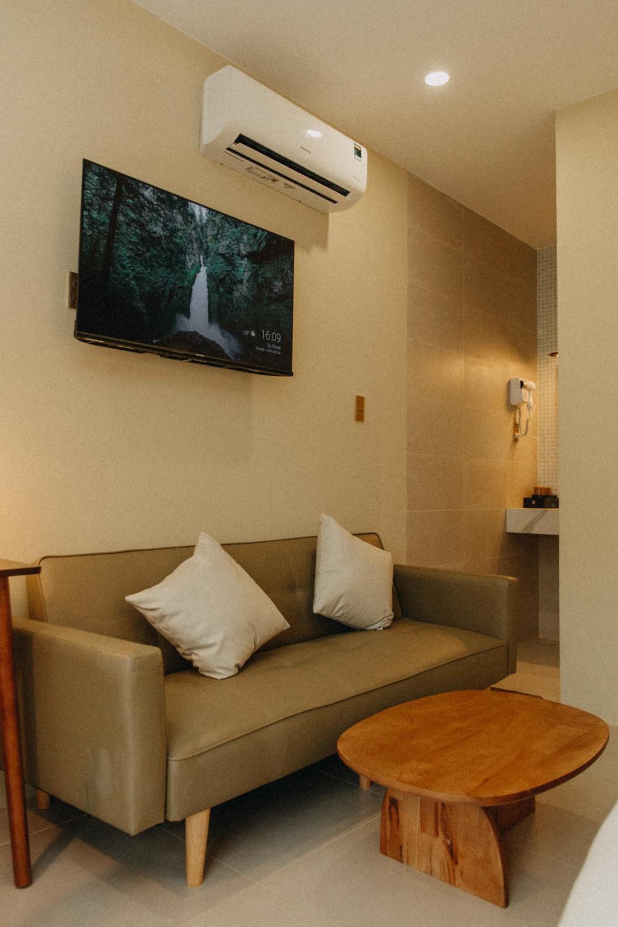 New establishment with a modern minimalist look and decoration. The illumination around the hotel and our room was great. The staff, as all over Vietnam, was extremely friendly and helpful.