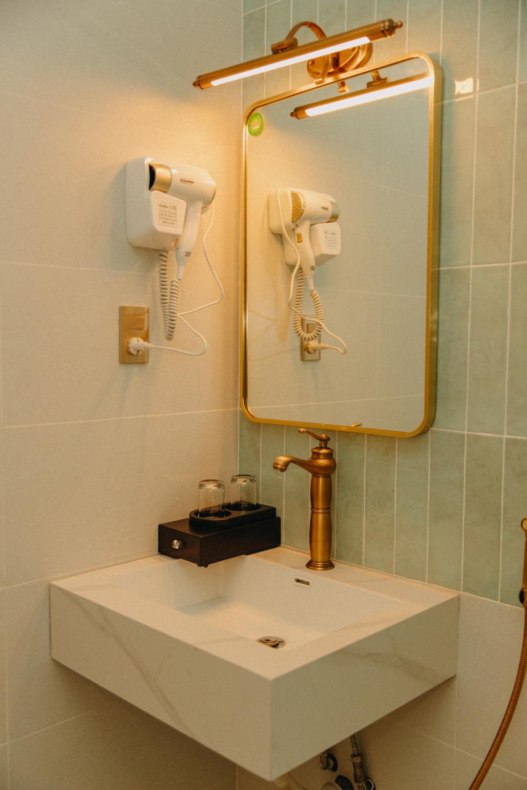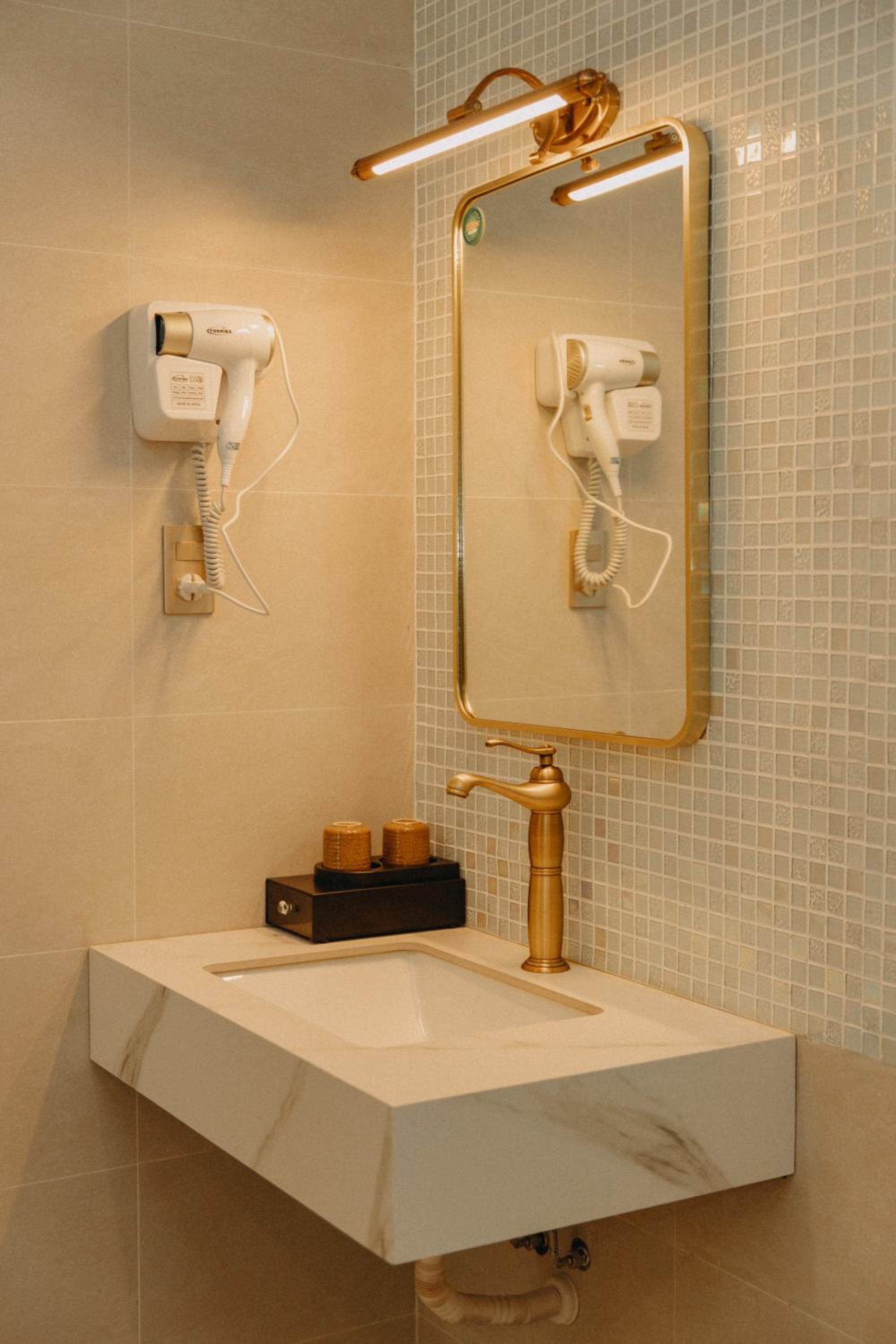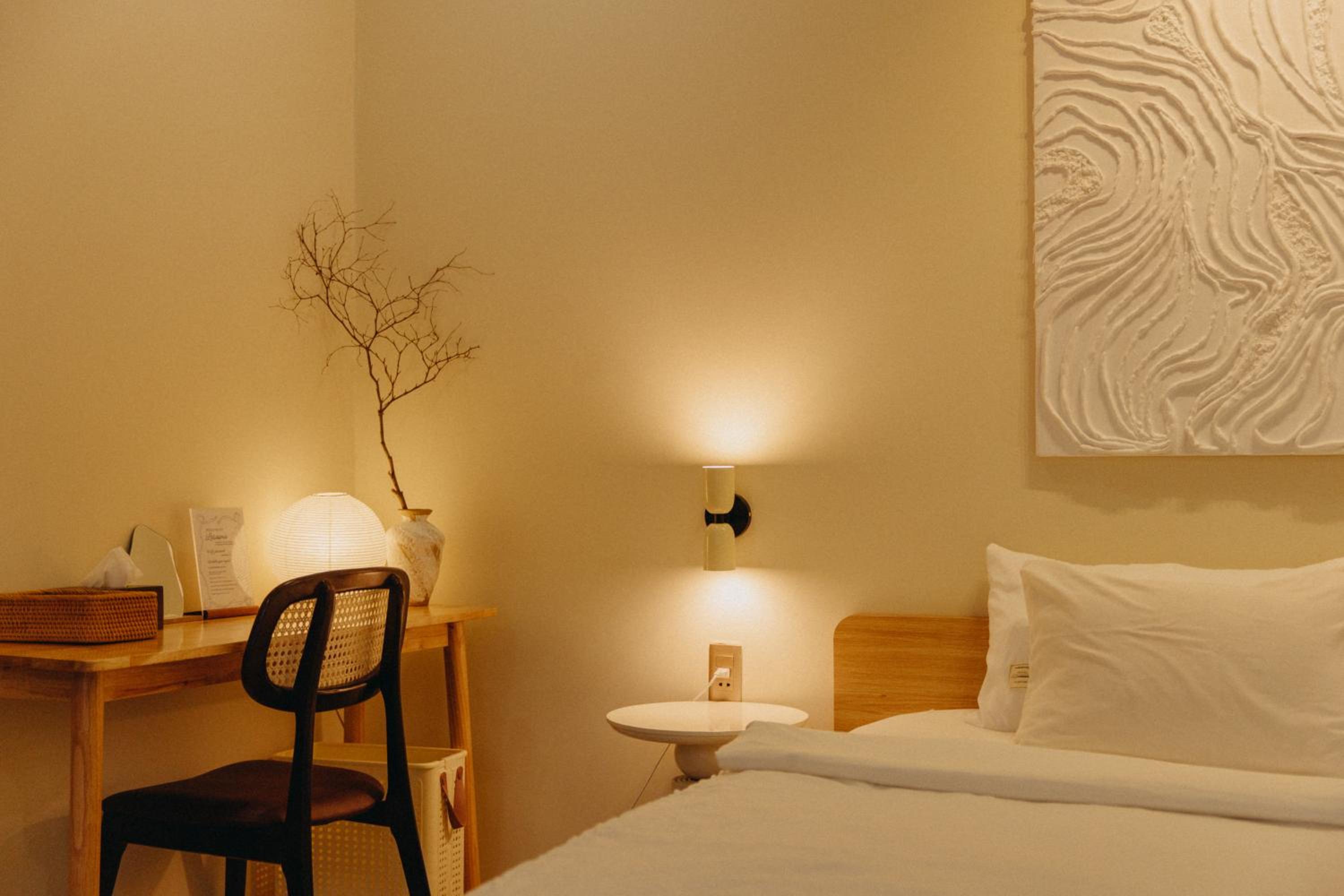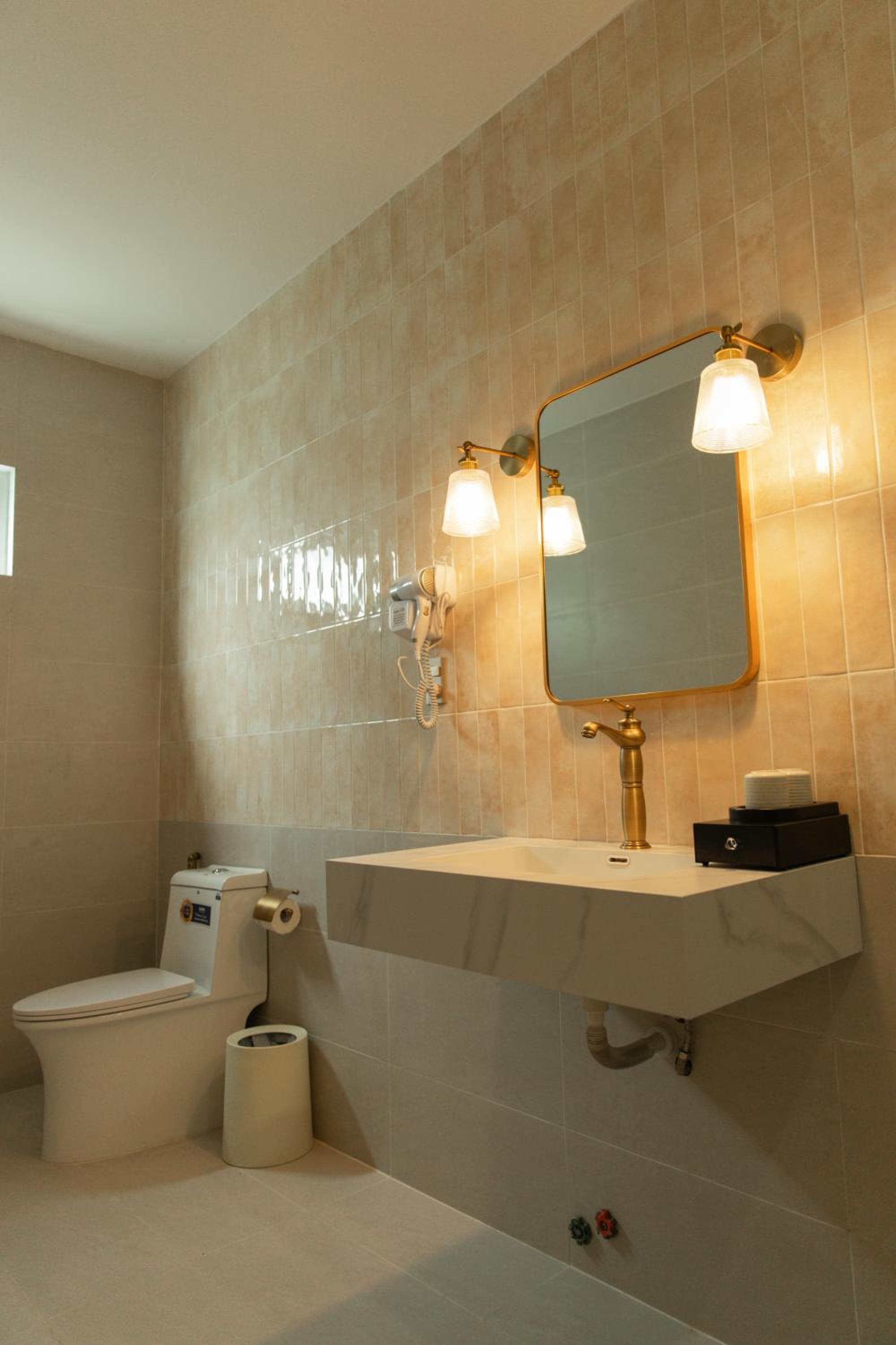 New establishment with a modern minimalist look and decoration. The illumination around the hotel and our room was great. The staff, as all over Vietnam, was extremely friendly and helpful.
