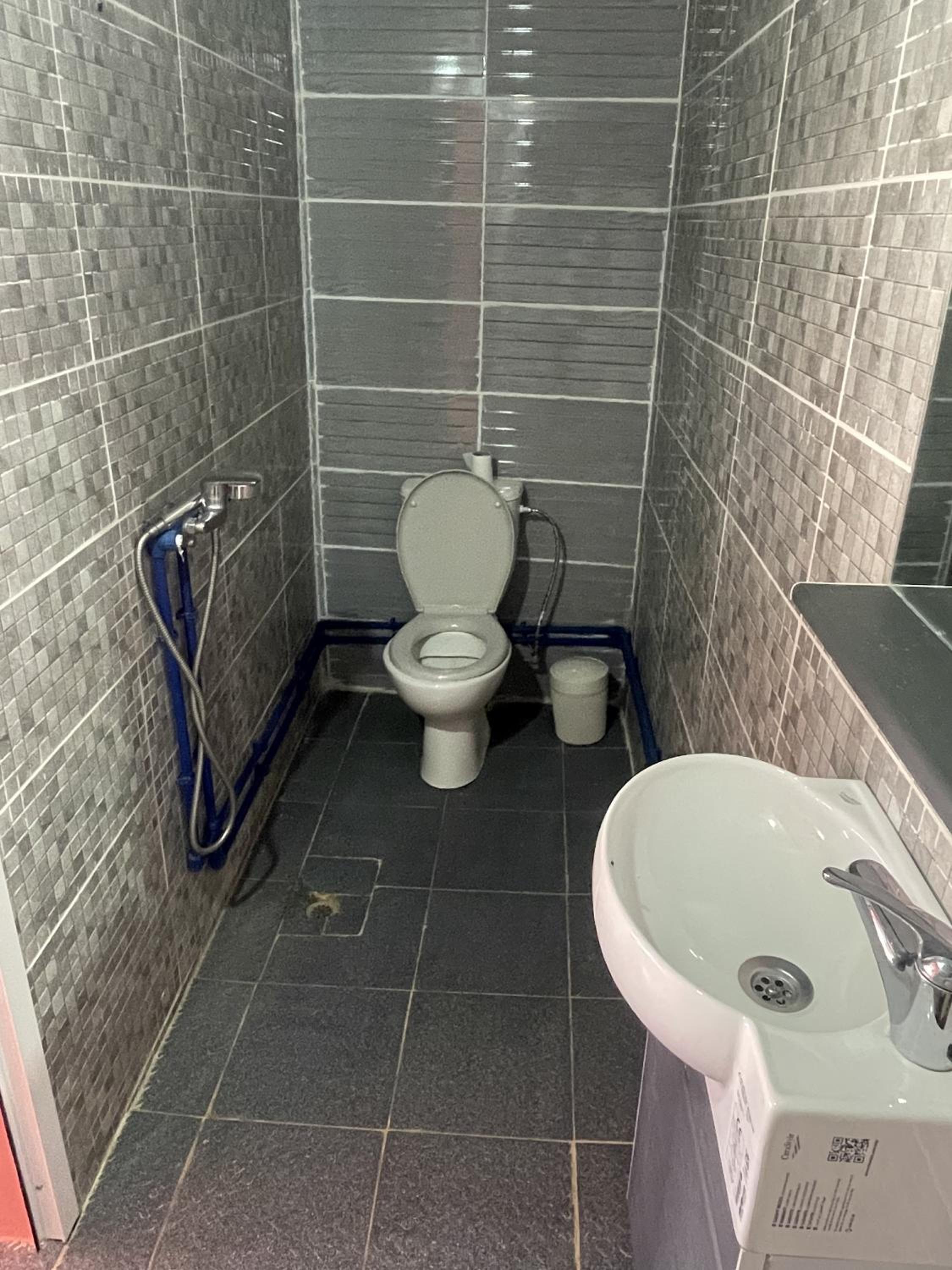 Des petites fuites dans salle de douche, et la disposition des toilettes