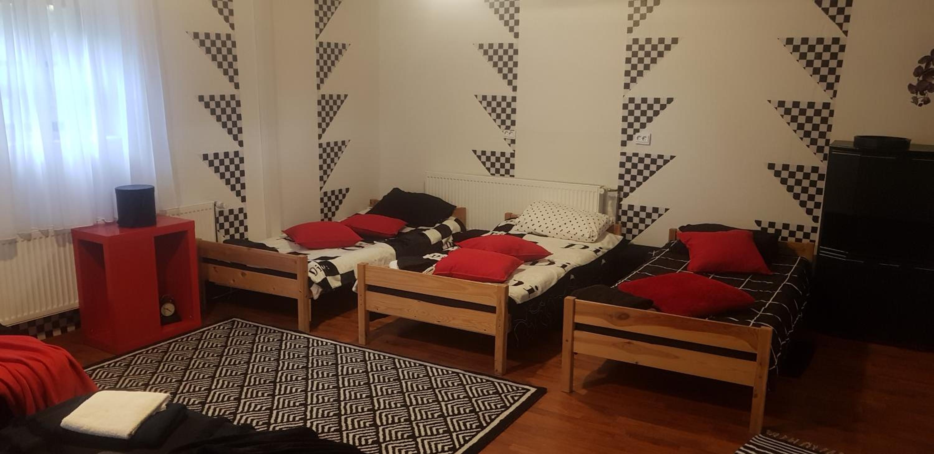 Что ожидали, то и получили для транзитной ночевки. Комната с собственной ванной в которой при желании могут разместиться четверо (двухъярусная кровать и две односпальных кровати). Вполне удобная ванная. Машина стояла прямо рядом с дверью, что было довольно удобно.