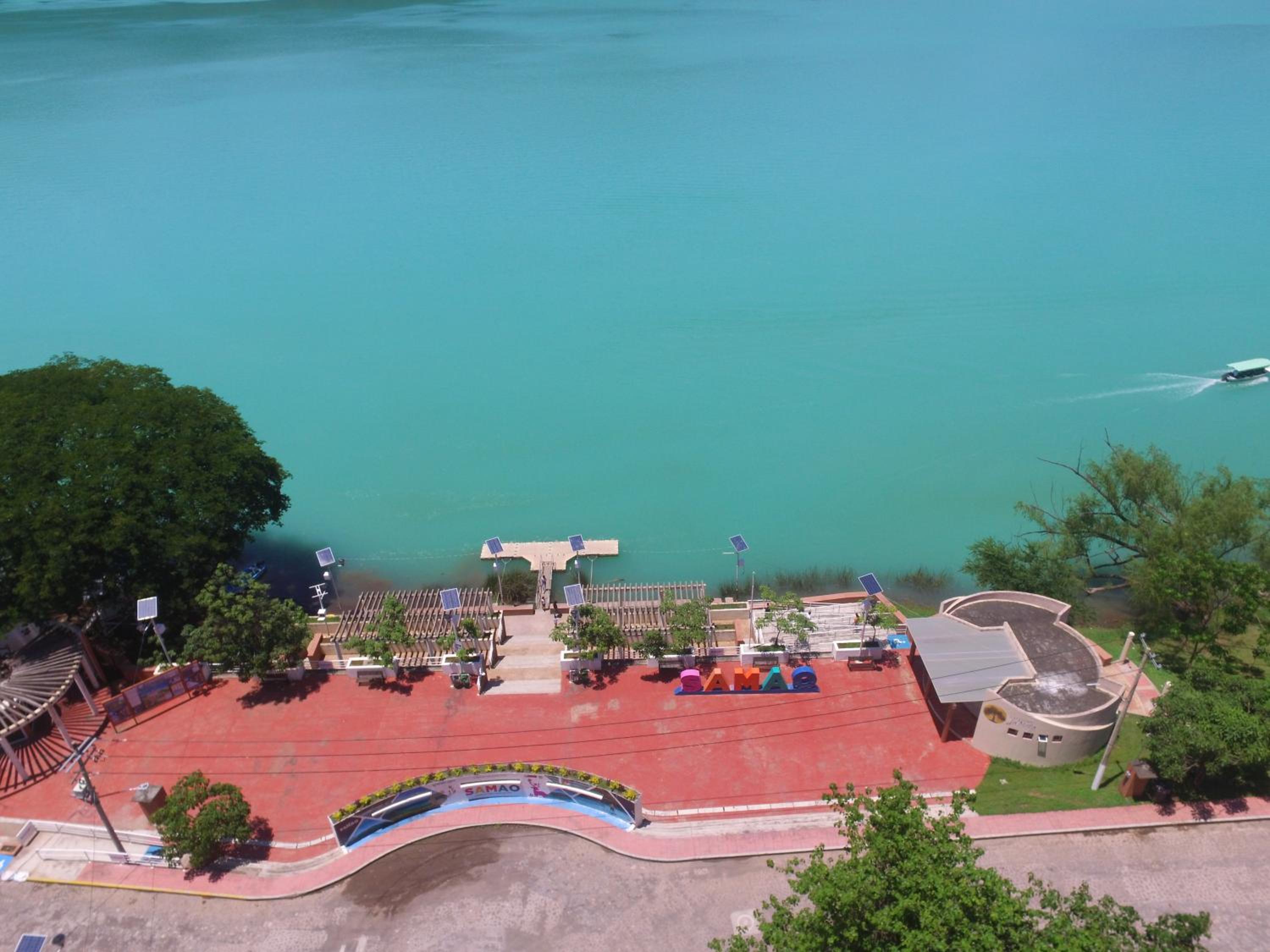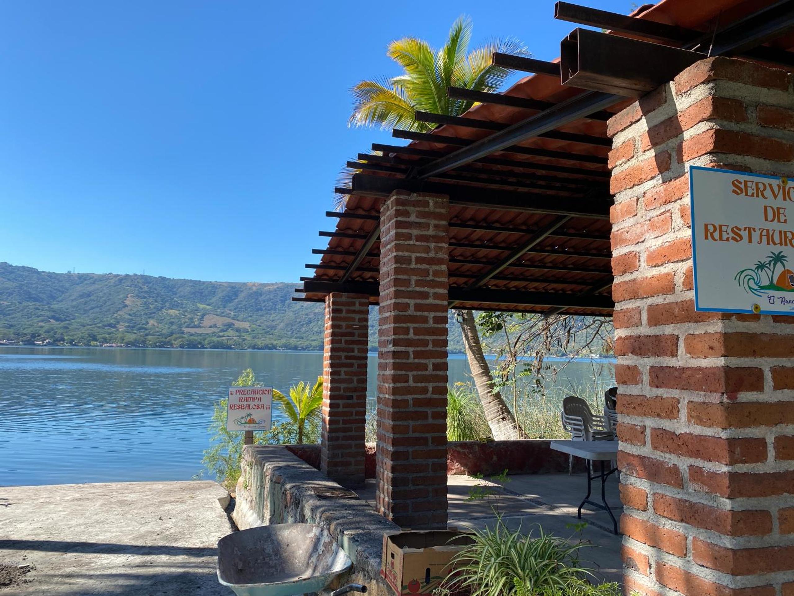 La entrada a la laguna es desde un malecón, no hay escaleras o manera de entrar caminando.
