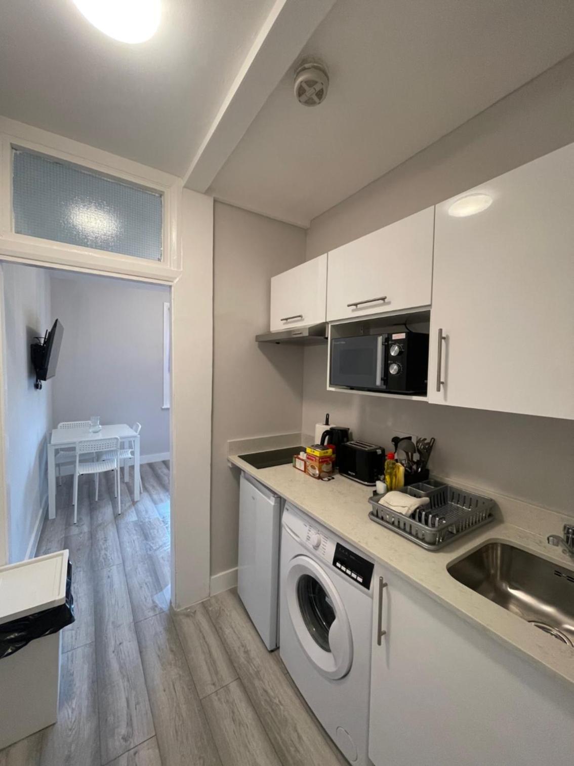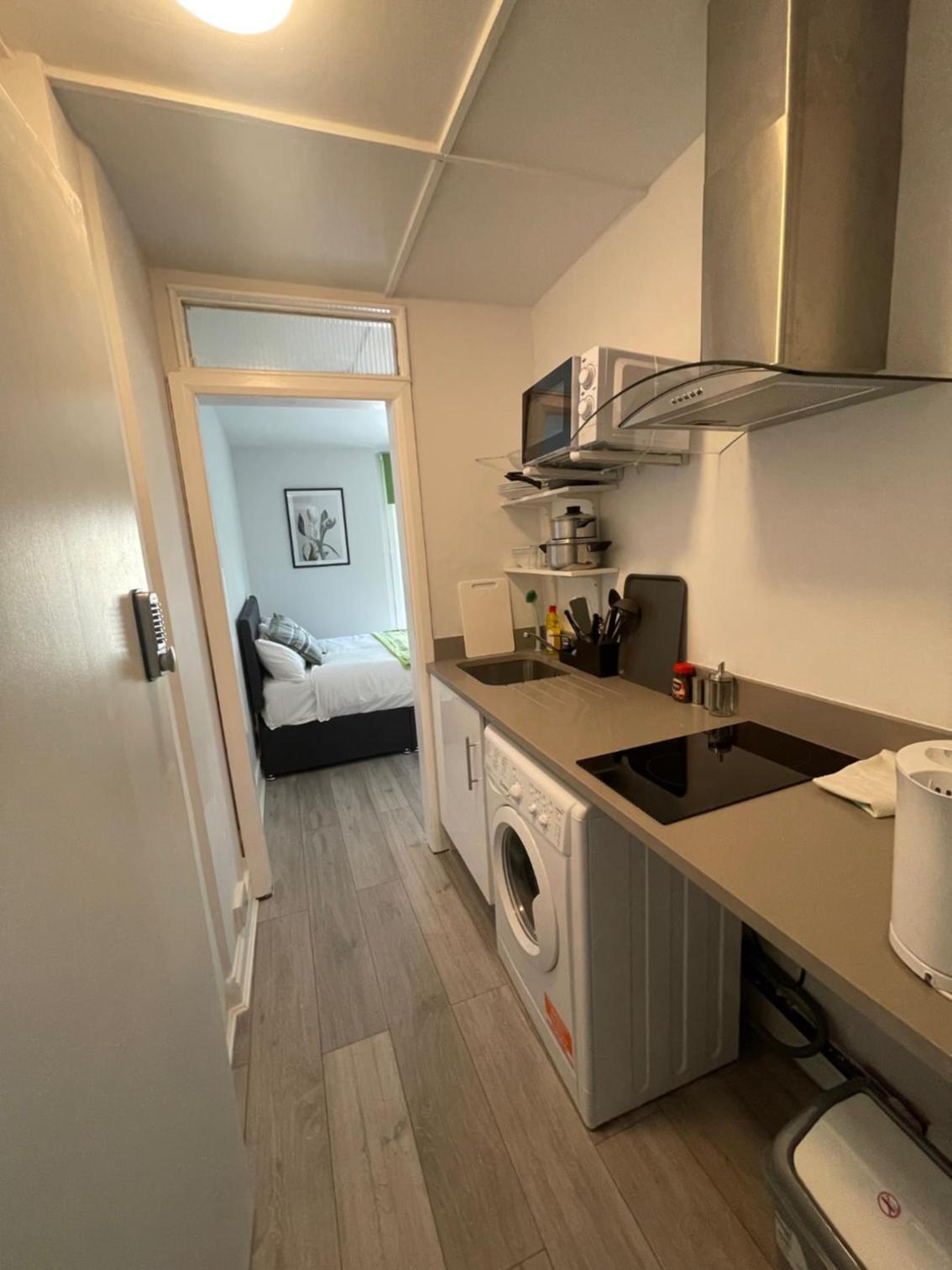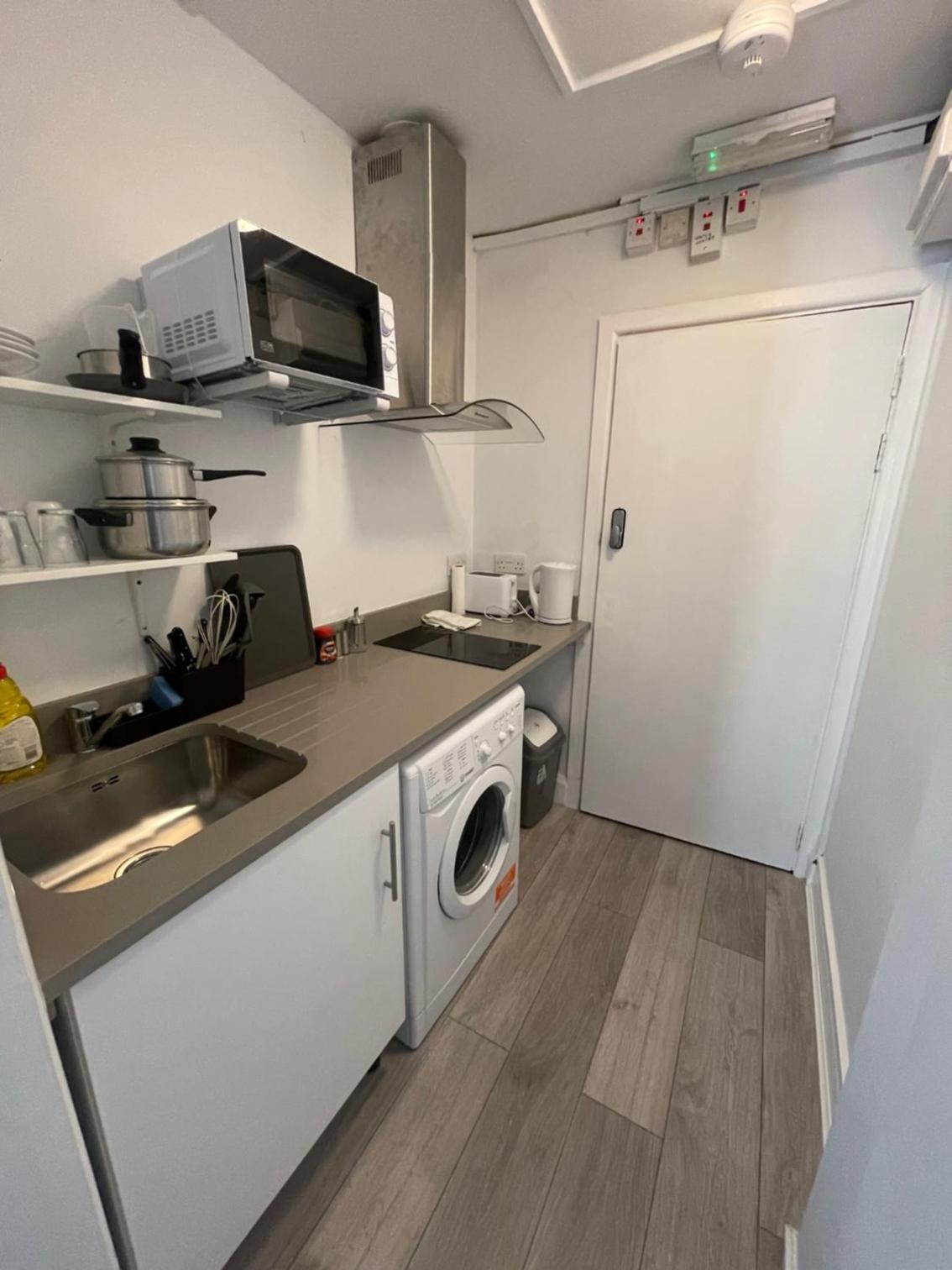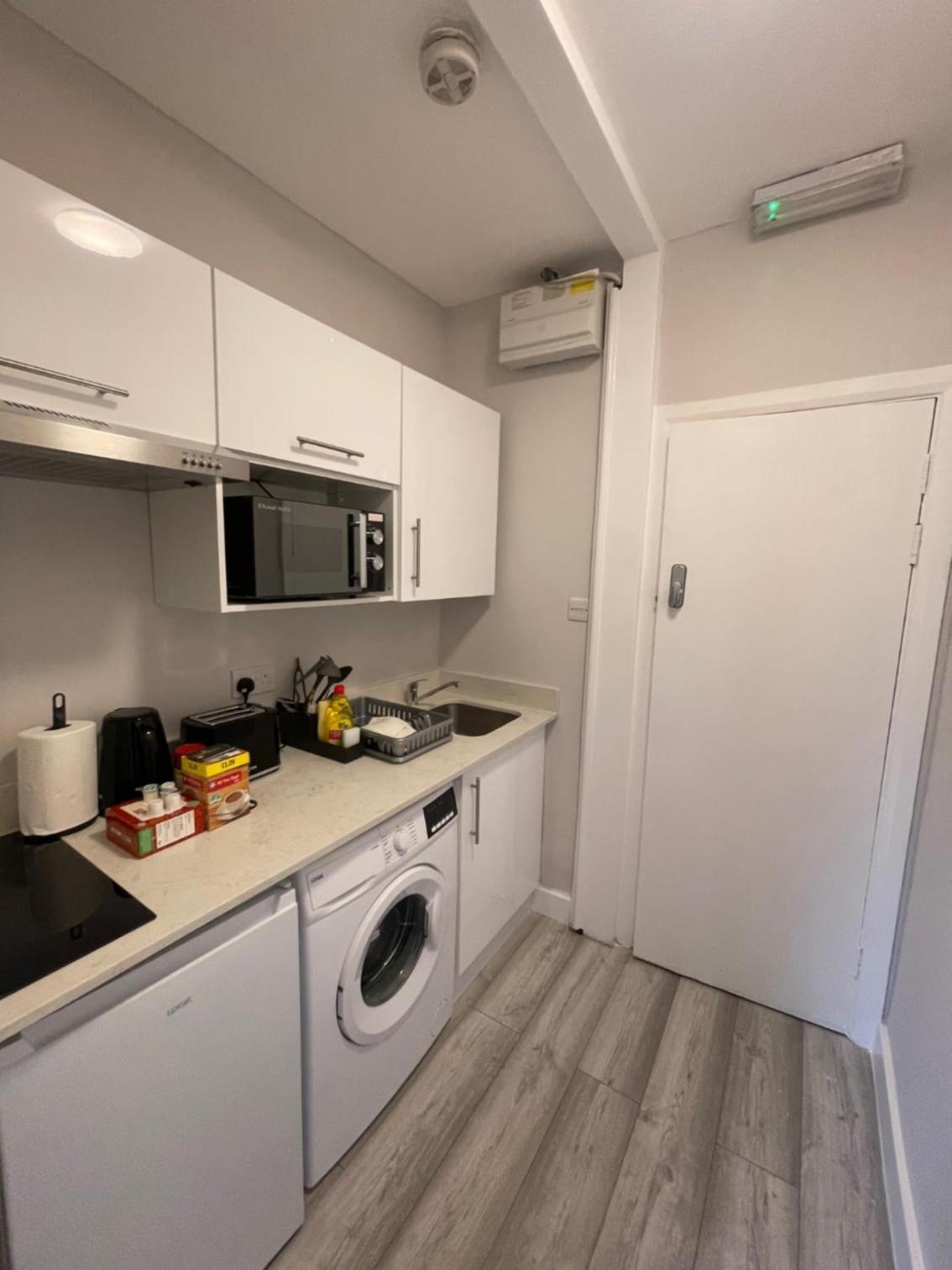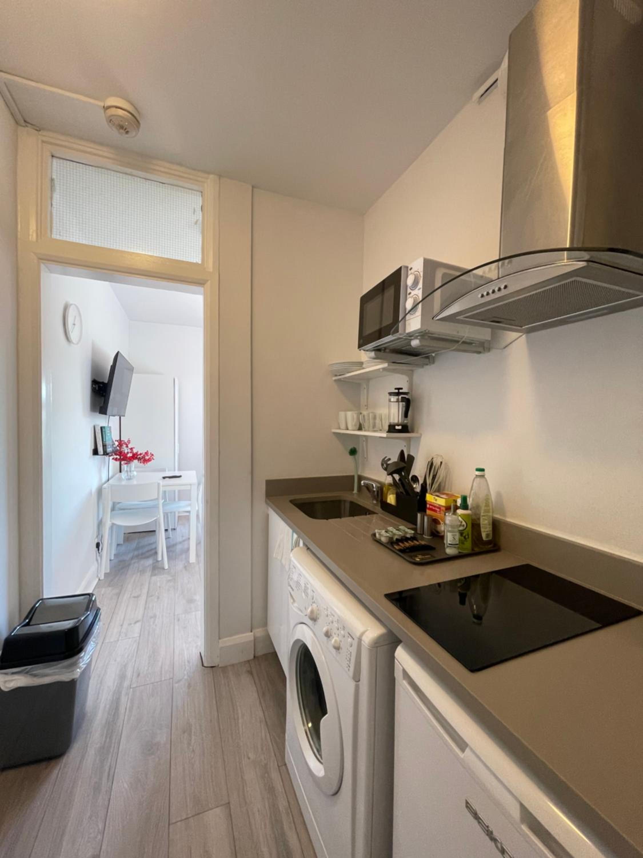 Die Küchenzeile. Kein Straßenlärm. Für englische Vethältnisse modern ausgestattet. Es war sauber.