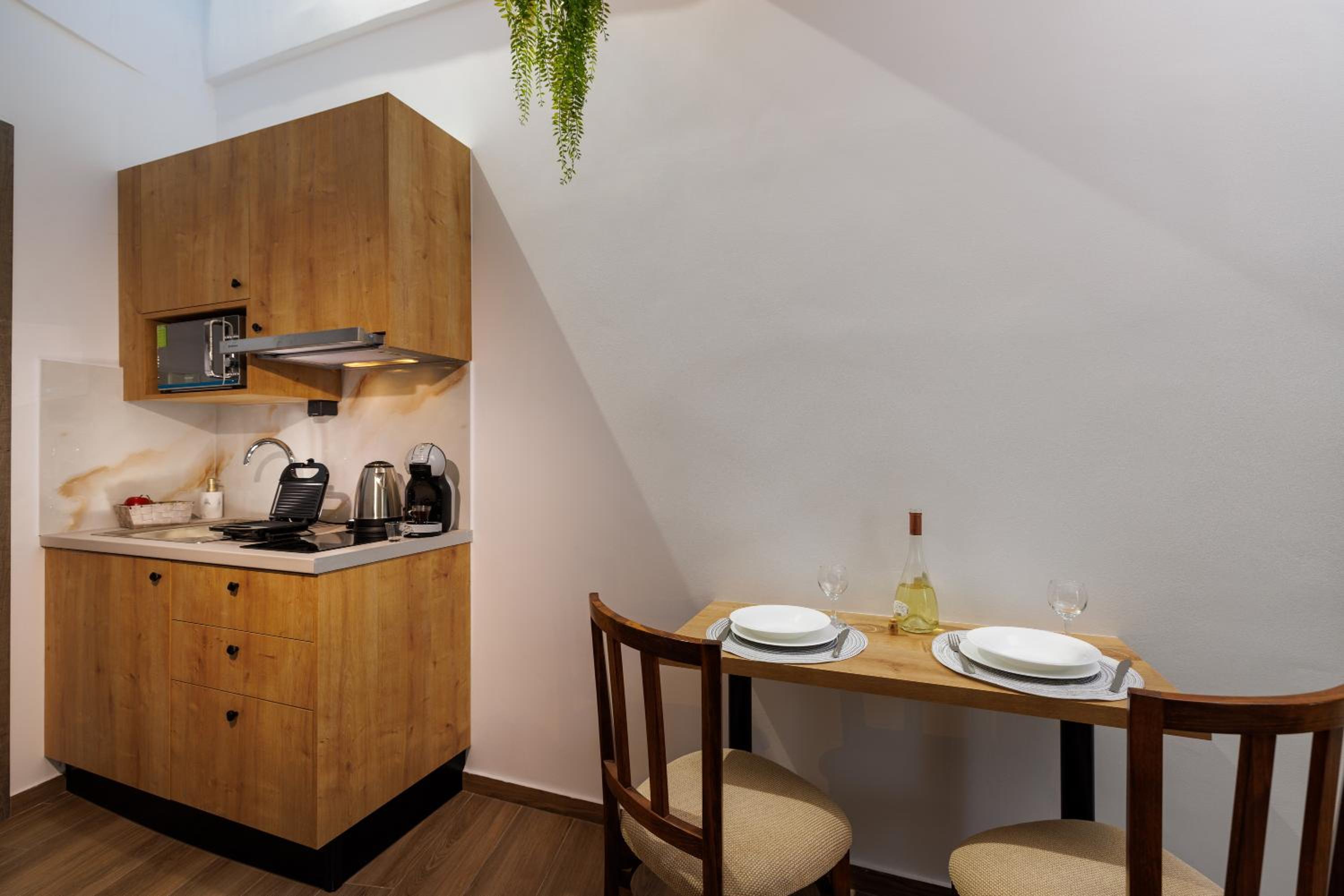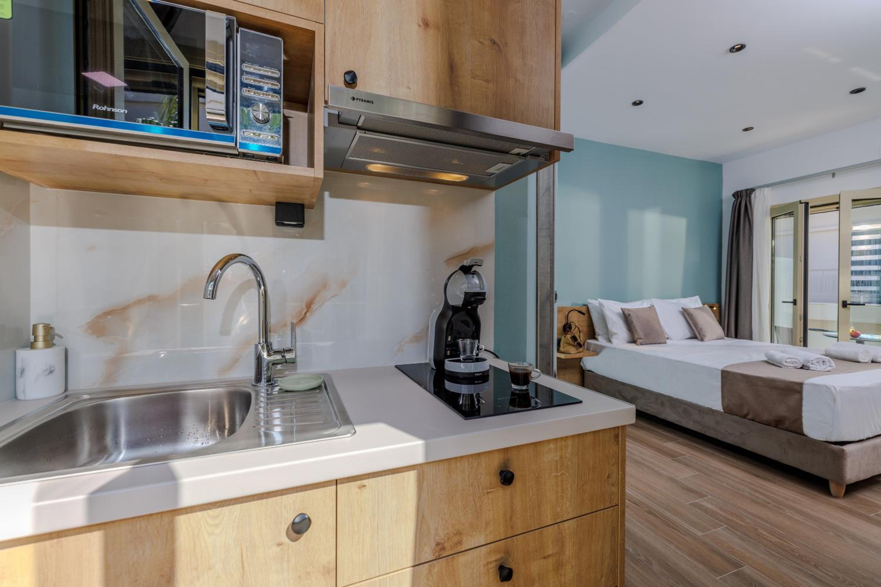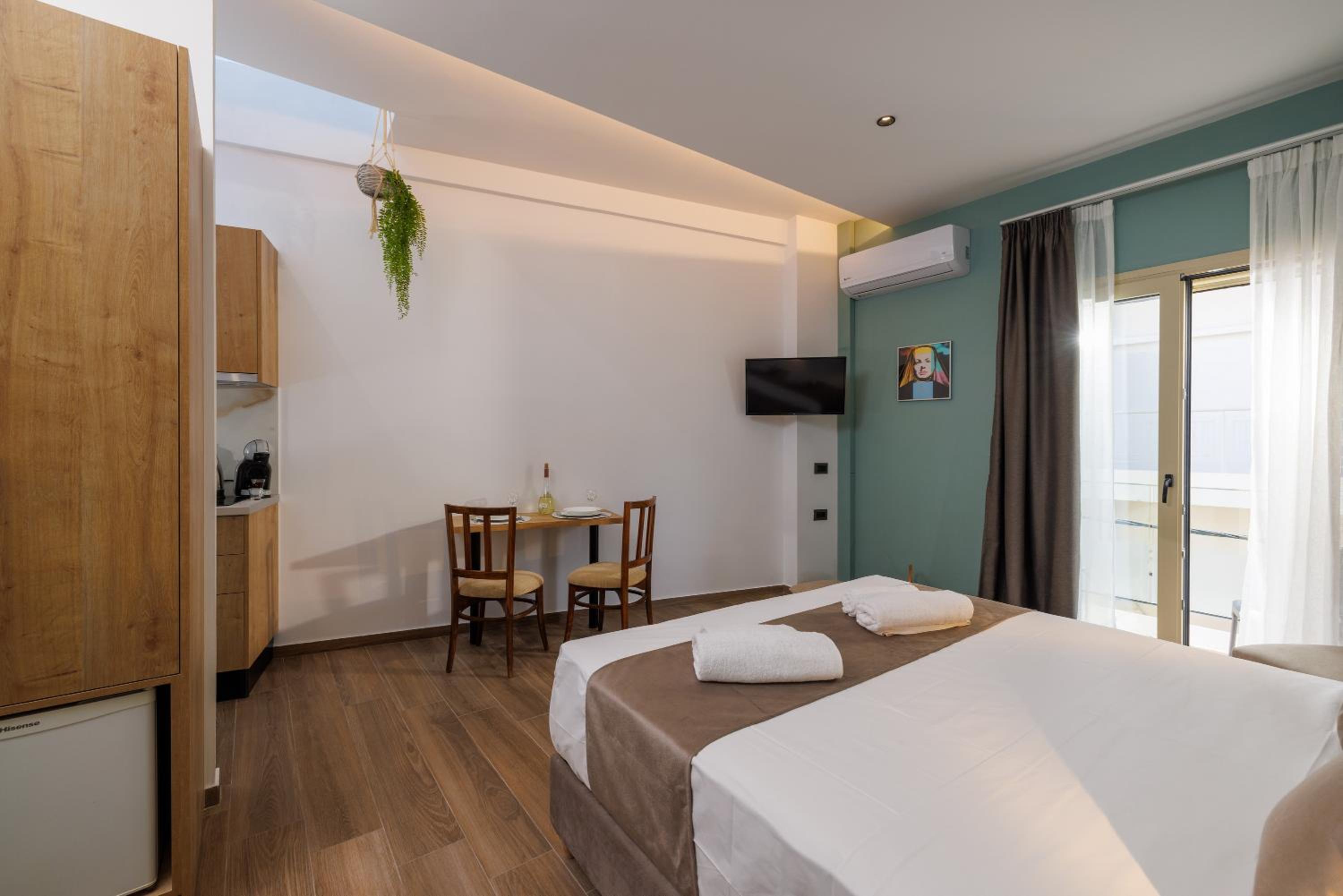 Each unit at the aparthotel is equipped with modern amenities including air conditioning, a fully stocked kitchen, and a flat-screen TV with streaming services.