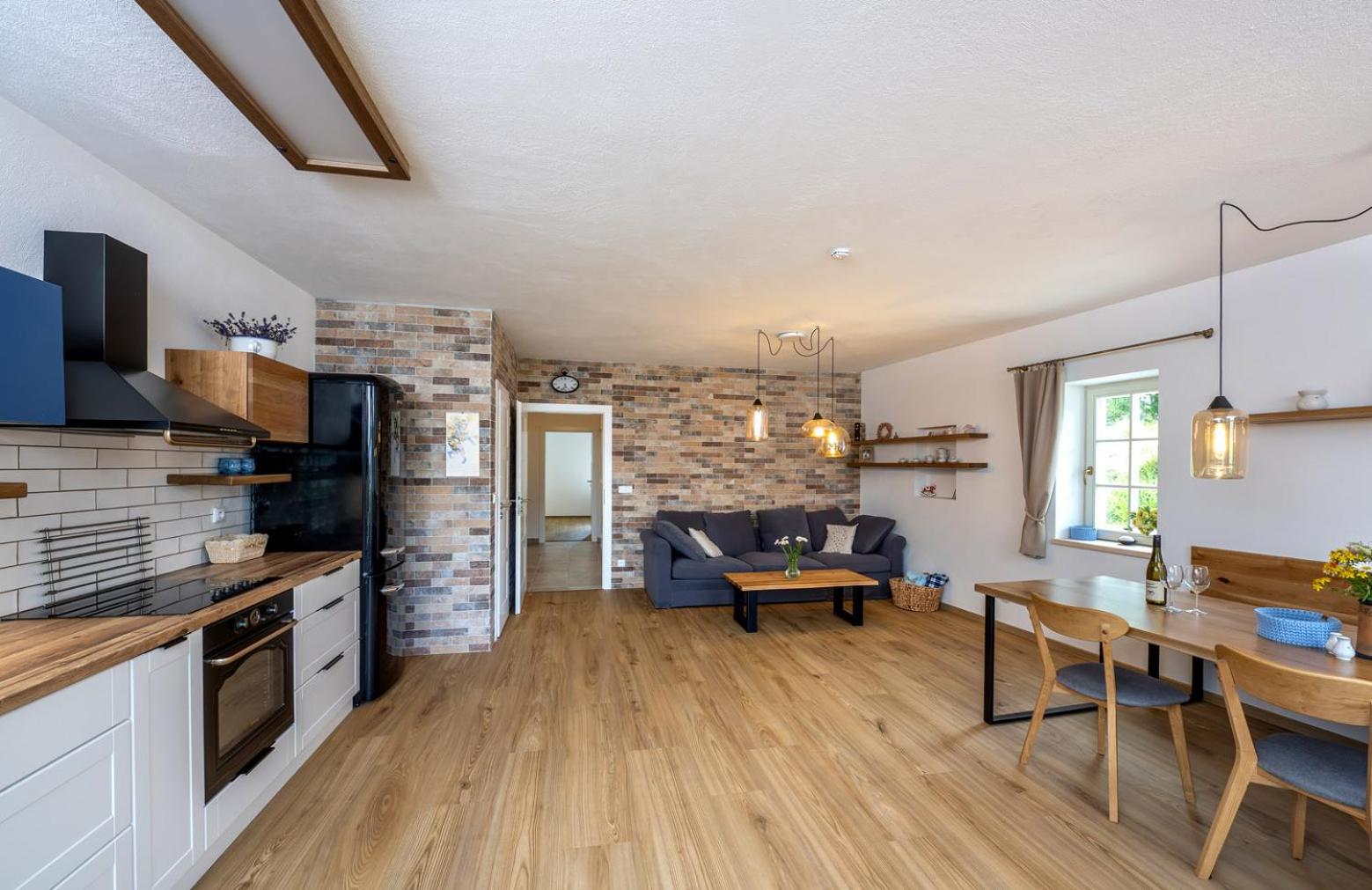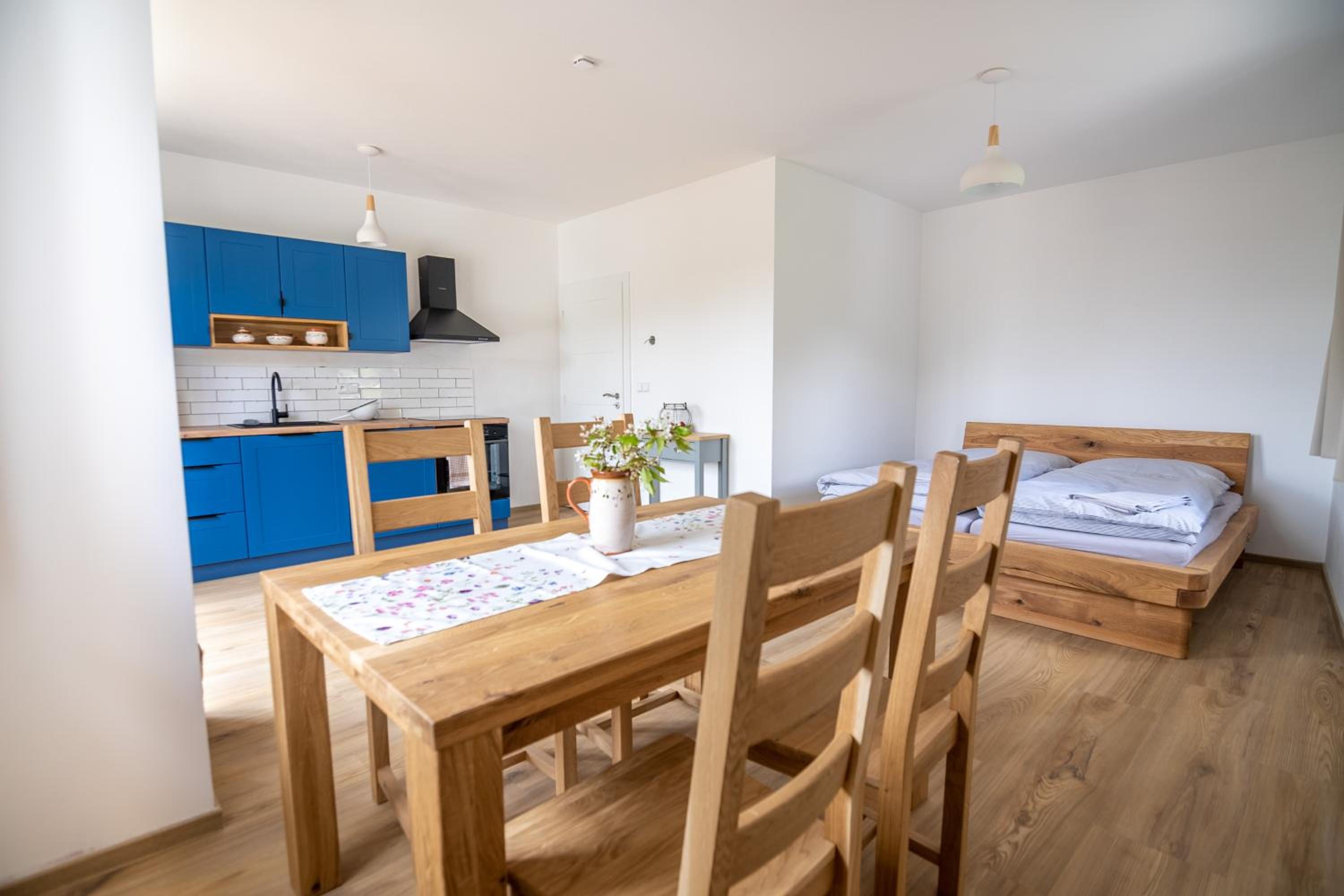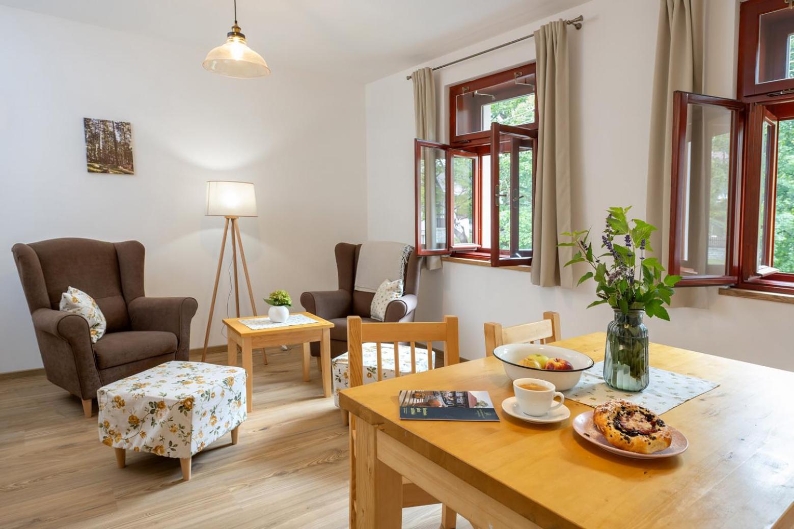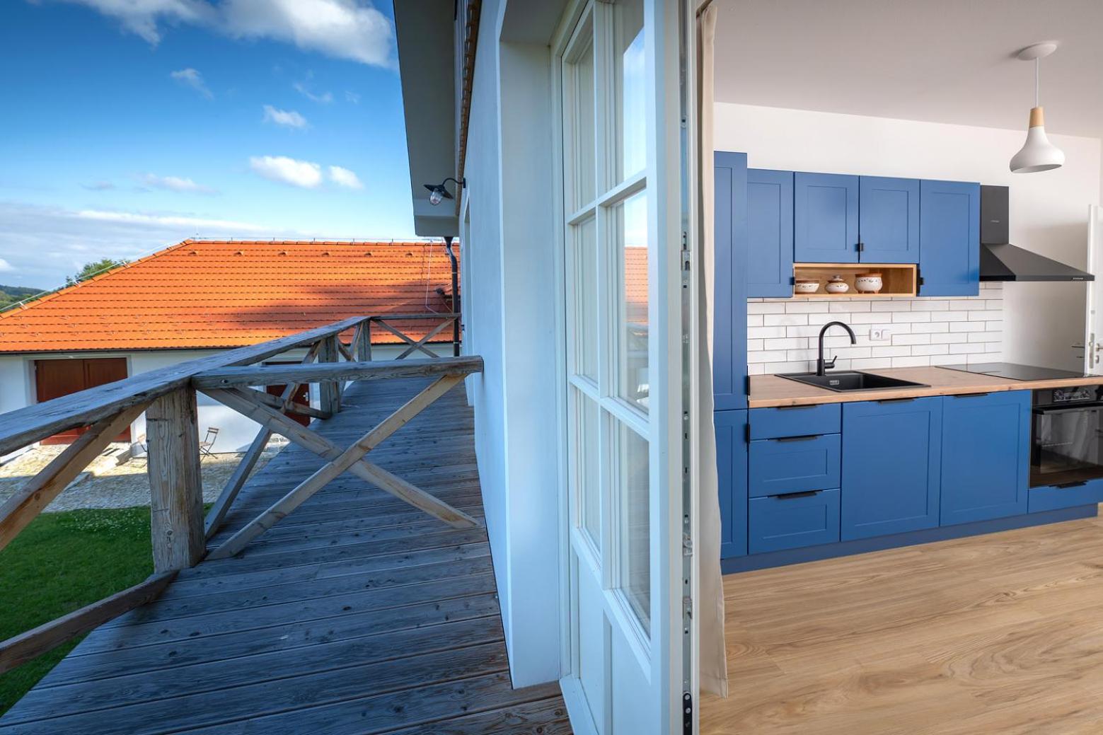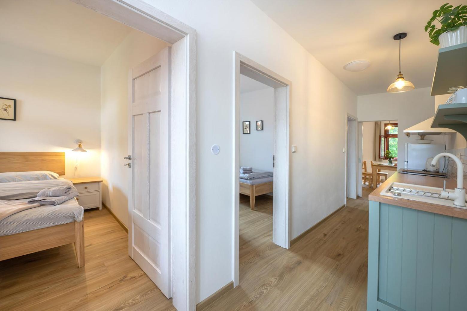 Úžasný, luxusní apartmán. Byli jsme tam s rodinou a pejskem. Krásné prostředí, příjemní majitelé. A ještě úžasnější koláčky od babičky. Nic nám nechybělo. Samoobslužný bar s točeným pivem. Na výběr i víno, limonáda, zmrzlina a jiné pochutiny. Určitě se vrátíme.