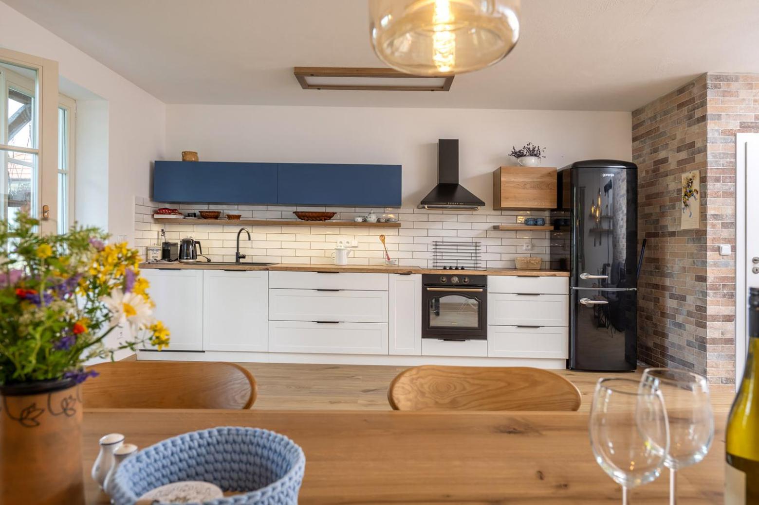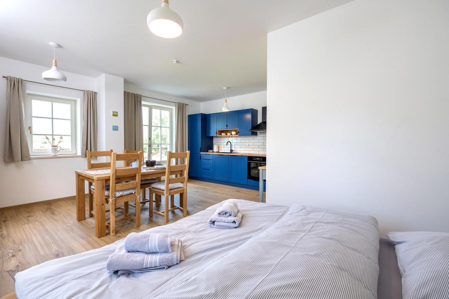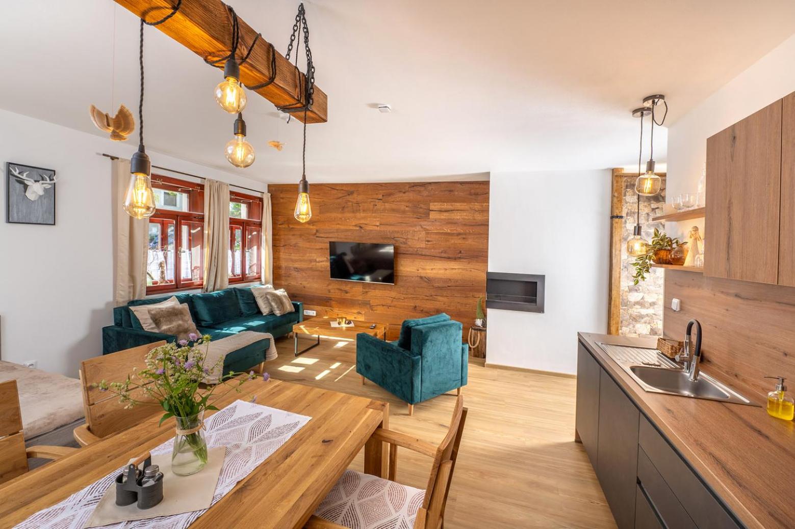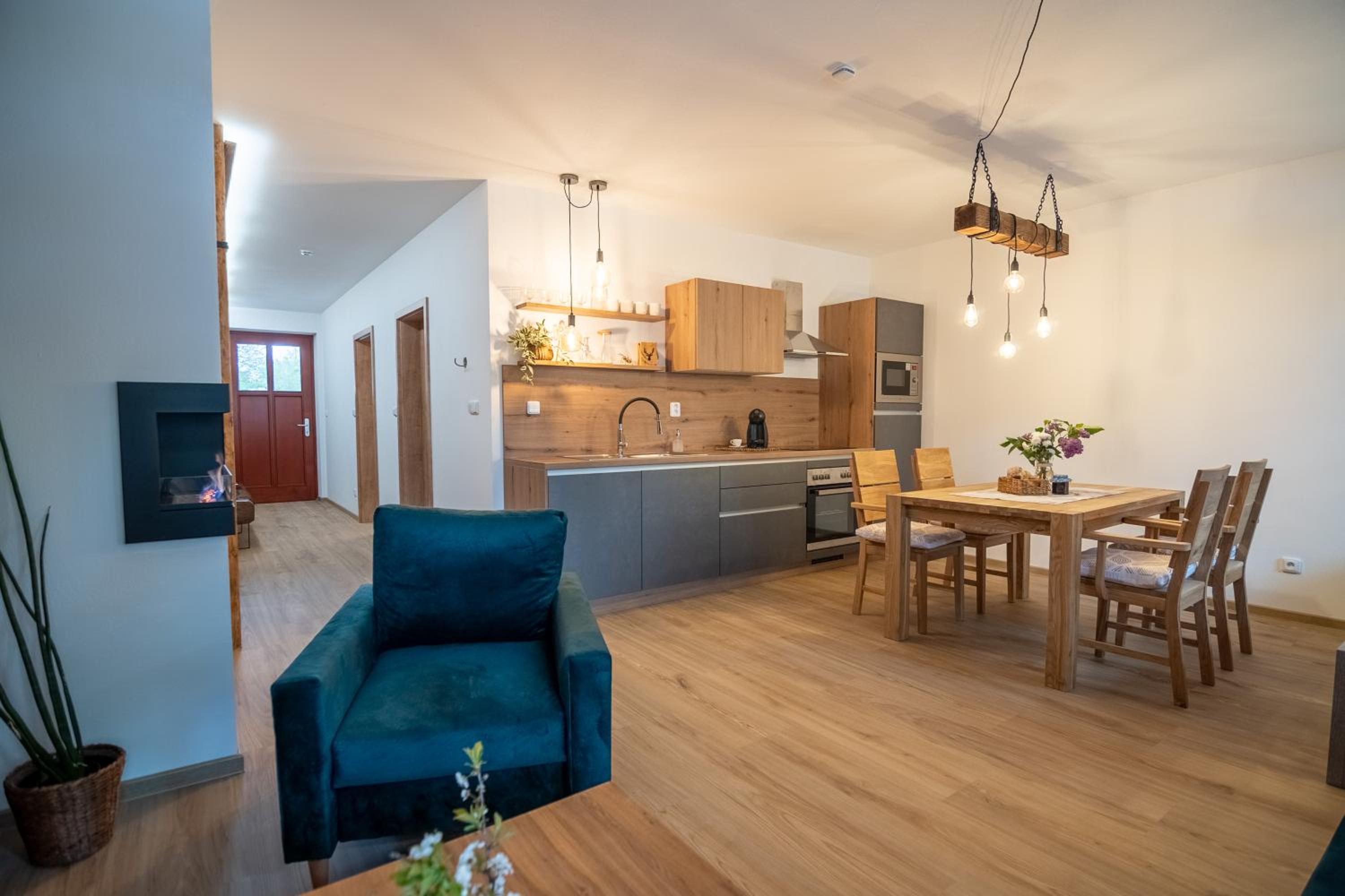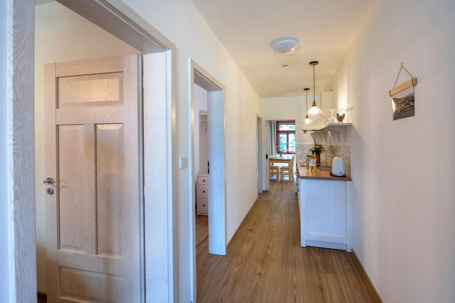 Úžasný, luxusní apartmán. Byli jsme tam s rodinou a pejskem. Krásné prostředí, příjemní majitelé. A ještě úžasnější koláčky od babičky. Nic nám nechybělo. Samoobslužný bar s točeným pivem. Na výběr i víno, limonáda, zmrzlina a jiné pochutiny. Určitě se vrátíme.