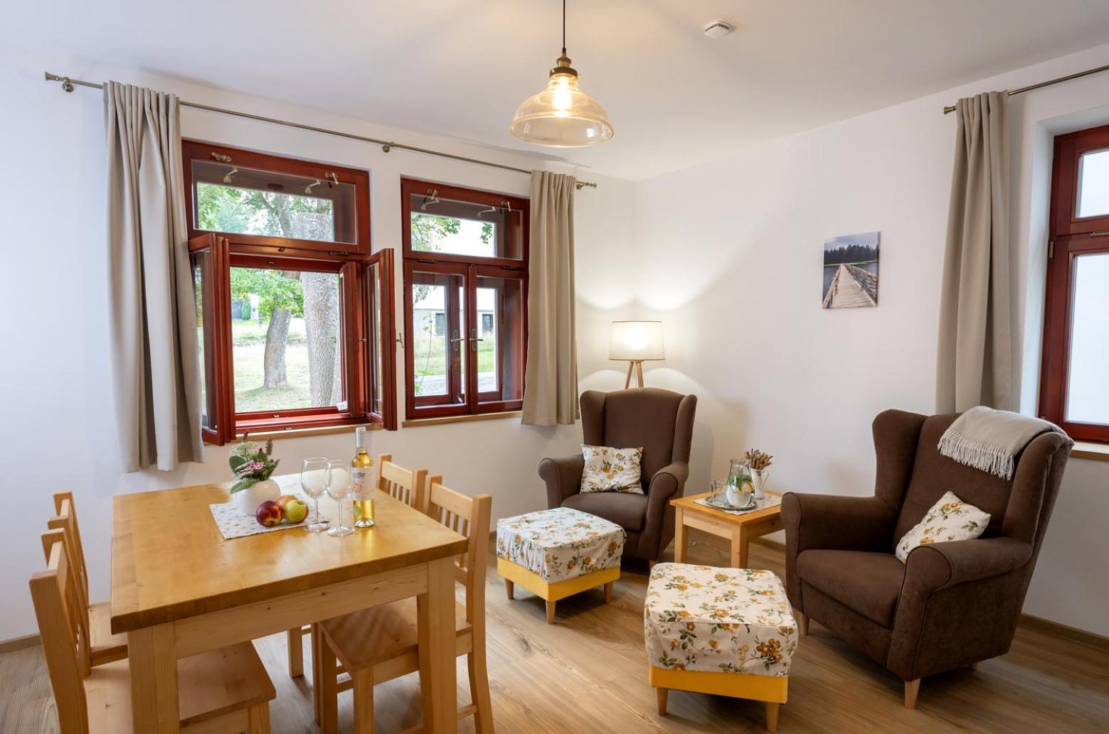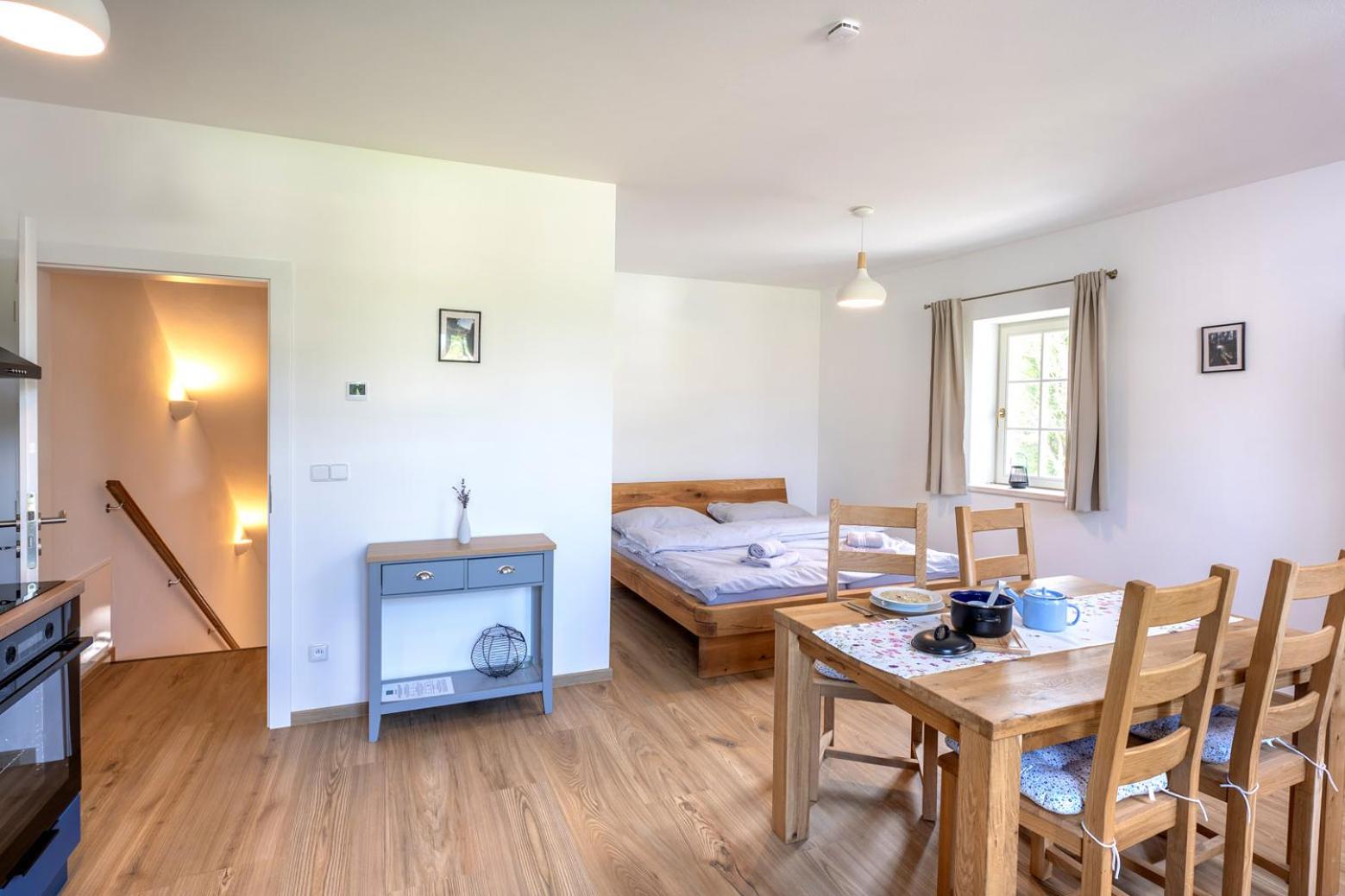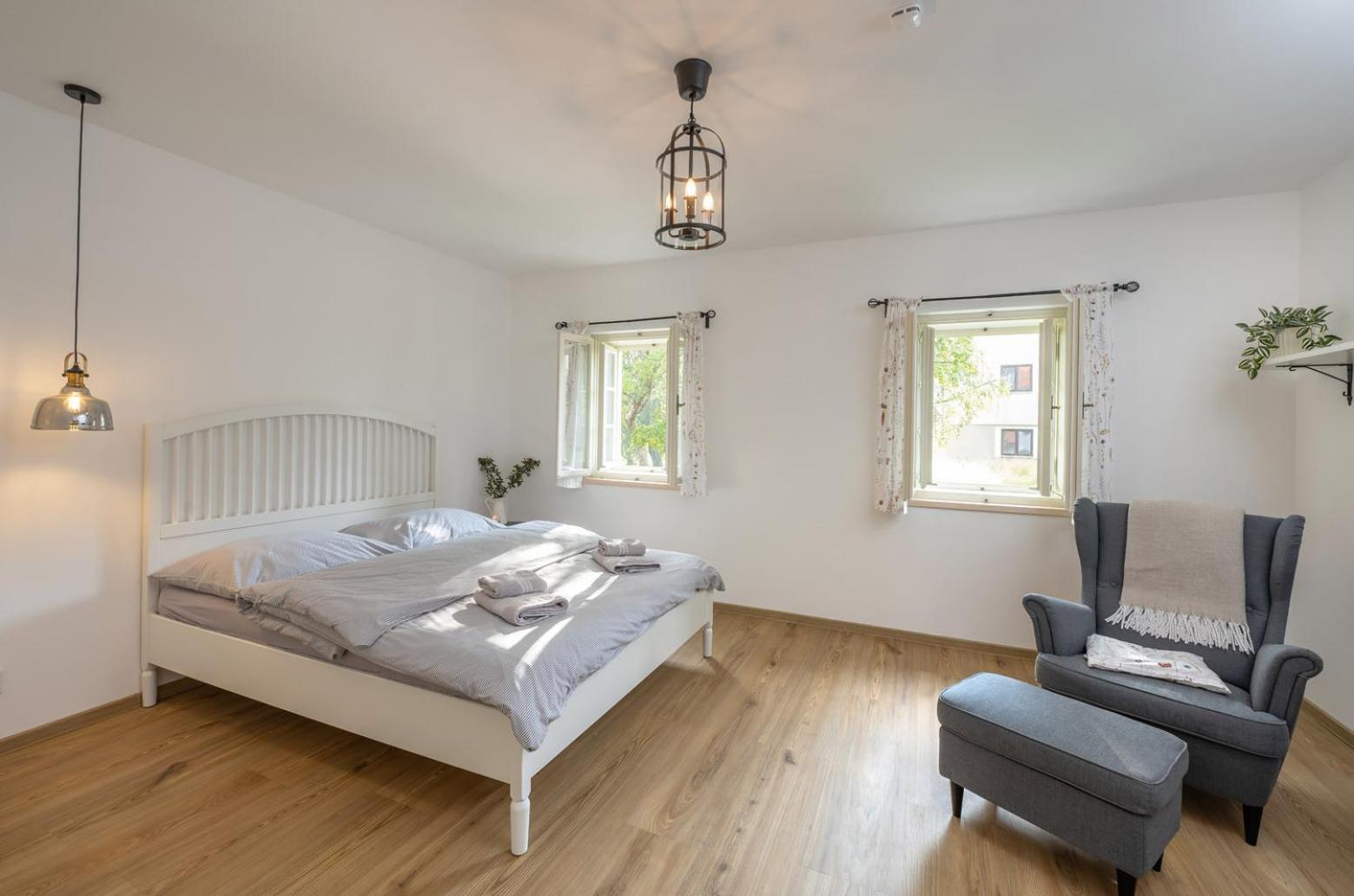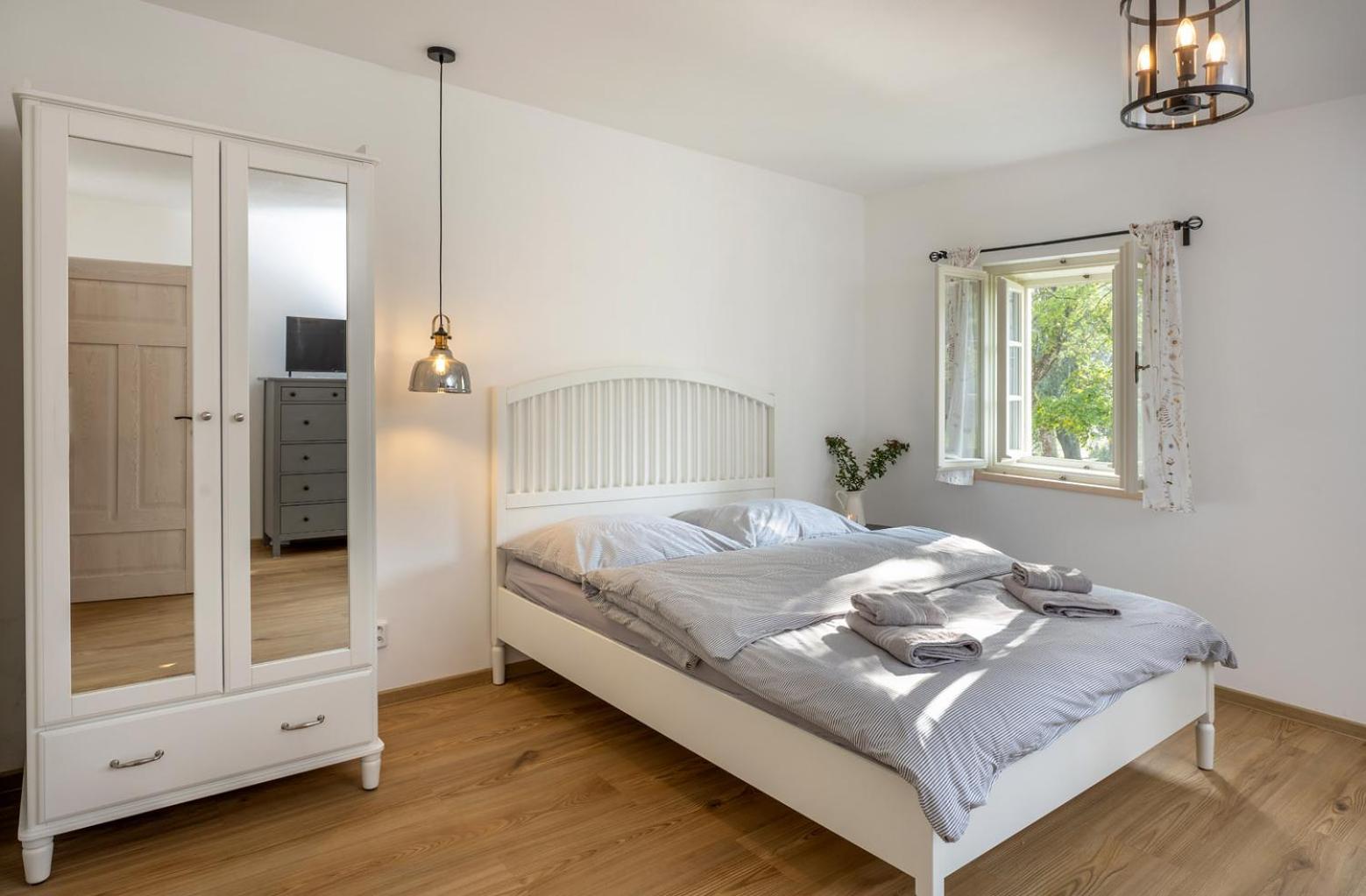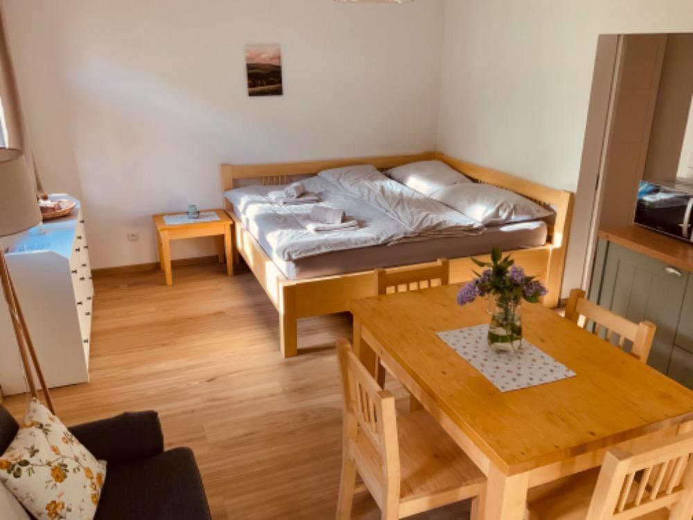 Úžasný, luxusní apartmán. Byli jsme tam s rodinou a pejskem. Krásné prostředí, příjemní majitelé. A ještě úžasnější koláčky od babičky. Nic nám nechybělo. Samoobslužný bar s točeným pivem. Na výběr i víno, limonáda, zmrzlina a jiné pochutiny. Určitě se vrátíme.