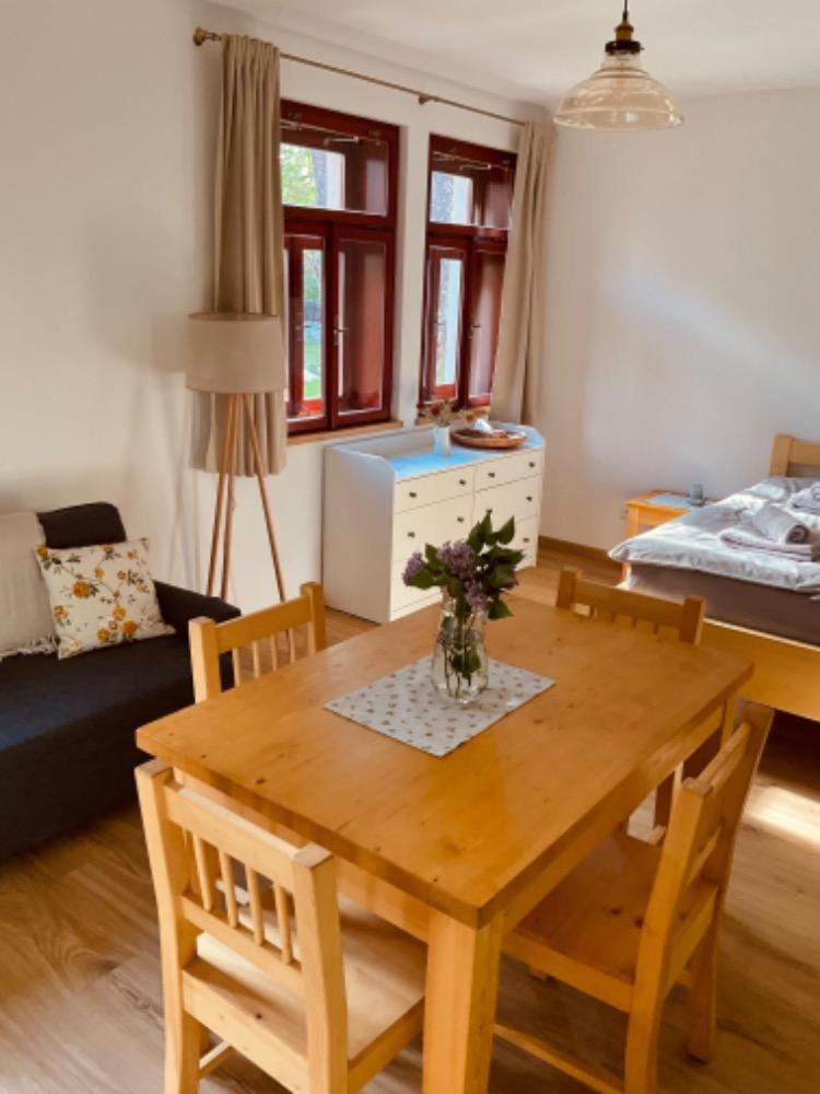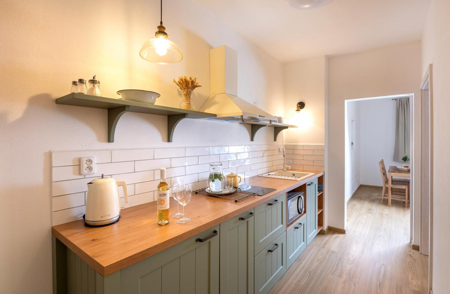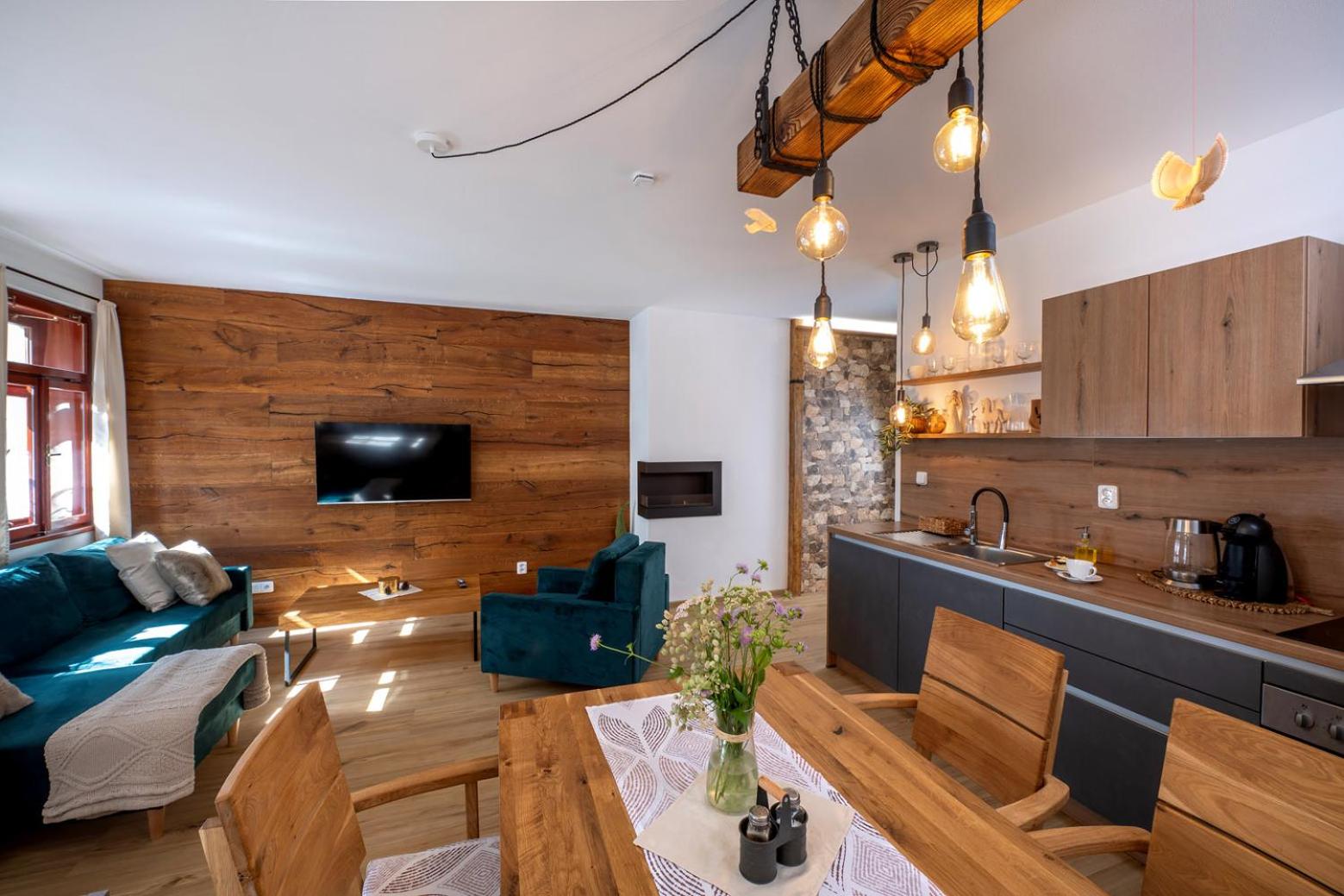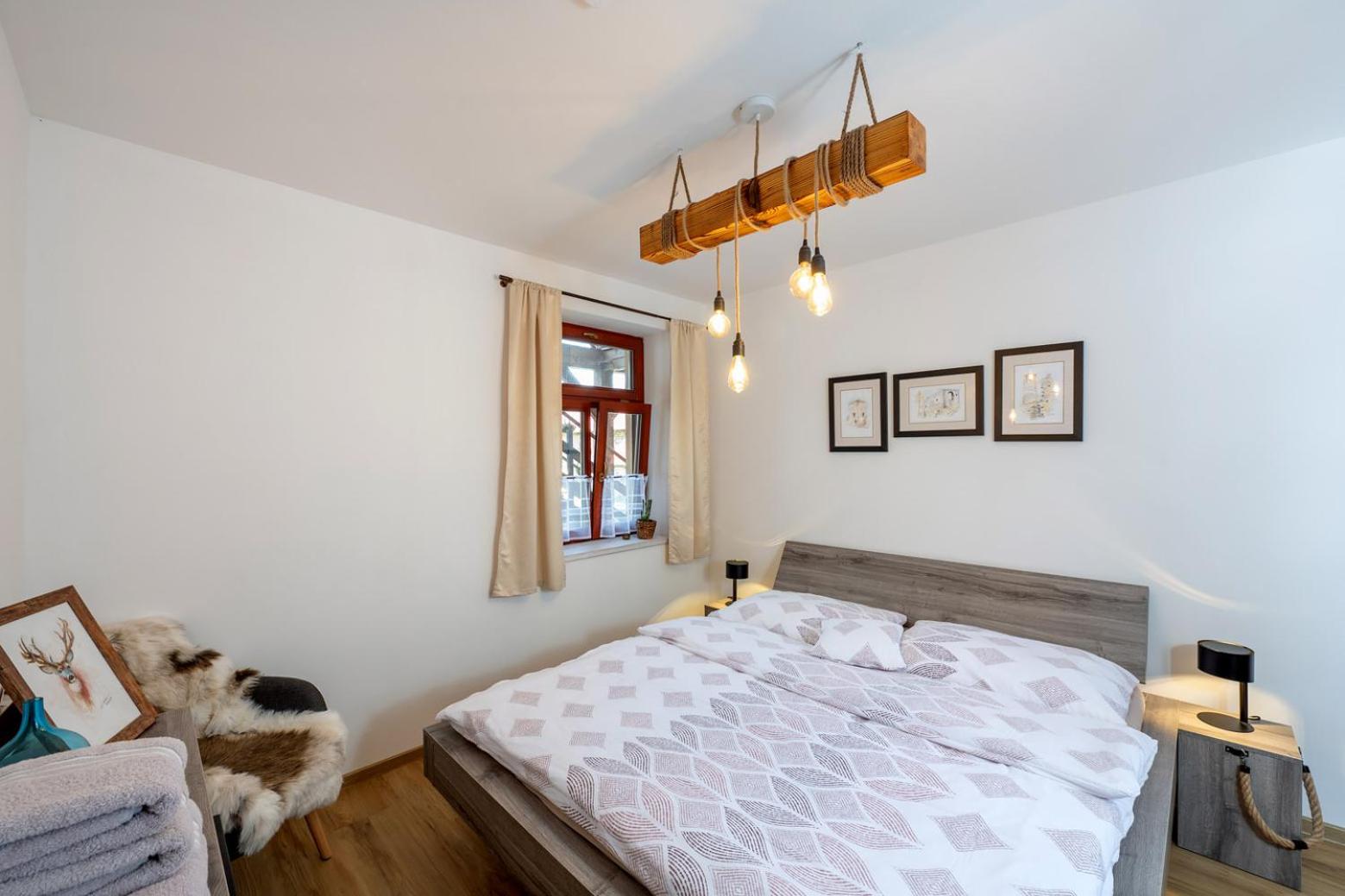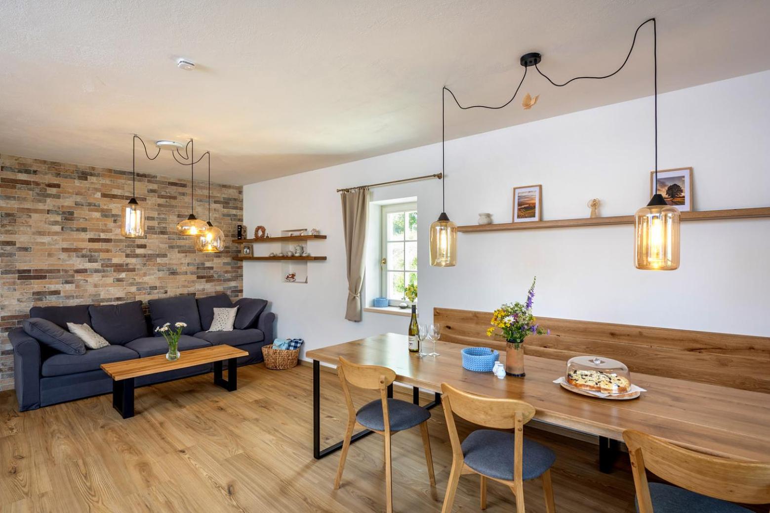 Úžasný, luxusní apartmán. Byli jsme tam s rodinou a pejskem. Krásné prostředí, příjemní majitelé. A ještě úžasnější koláčky od babičky. Nic nám nechybělo. Samoobslužný bar s točeným pivem. Na výběr i víno, limonáda, zmrzlina a jiné pochutiny. Určitě se vrátíme.