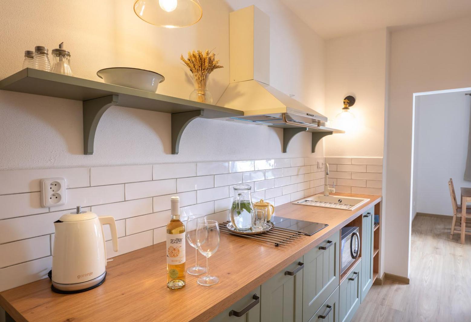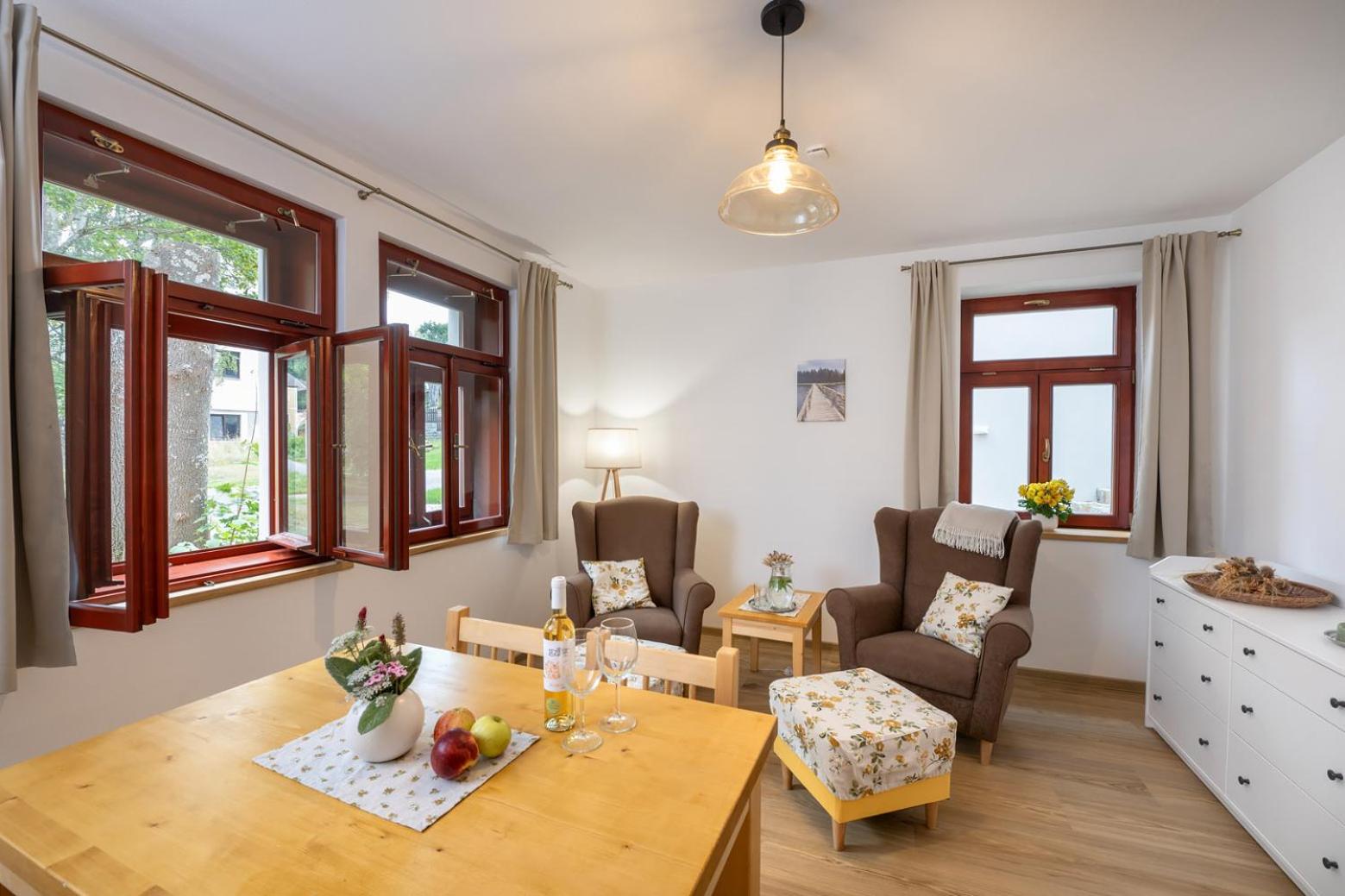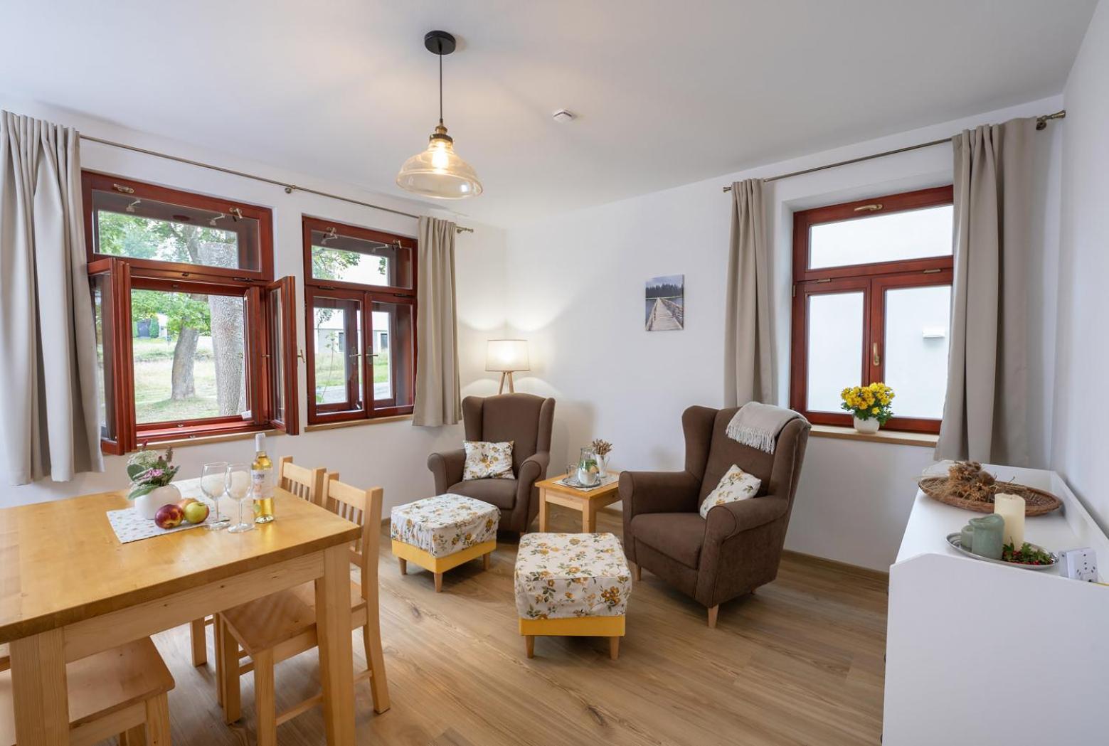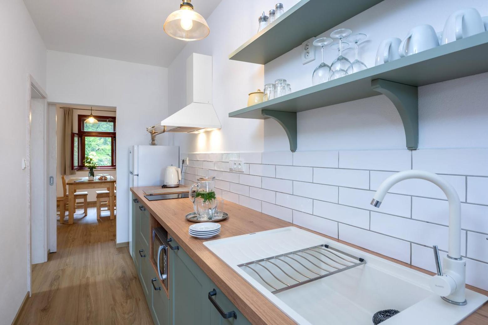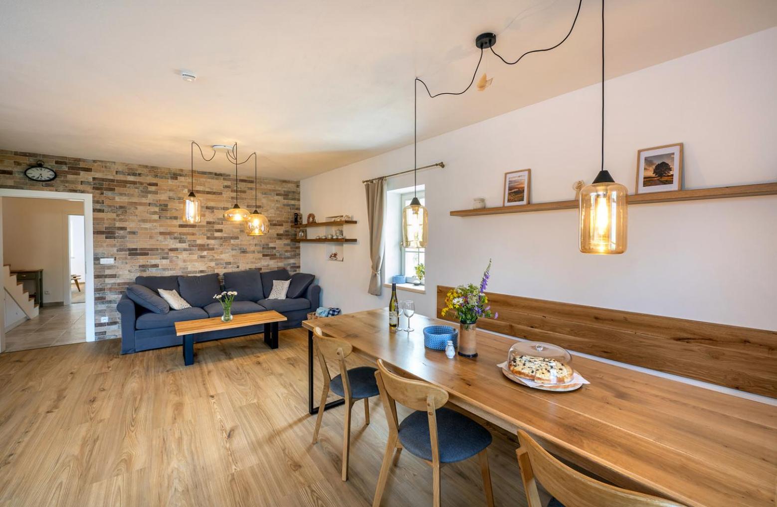 Úžasný, luxusní apartmán. Byli jsme tam s rodinou a pejskem. Krásné prostředí, příjemní majitelé. A ještě úžasnější koláčky od babičky. Nic nám nechybělo. Samoobslužný bar s točeným pivem. Na výběr i víno, limonáda, zmrzlina a jiné pochutiny. Určitě se vrátíme.