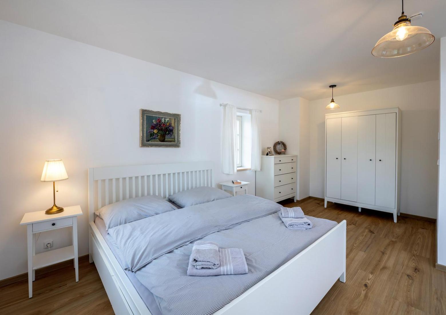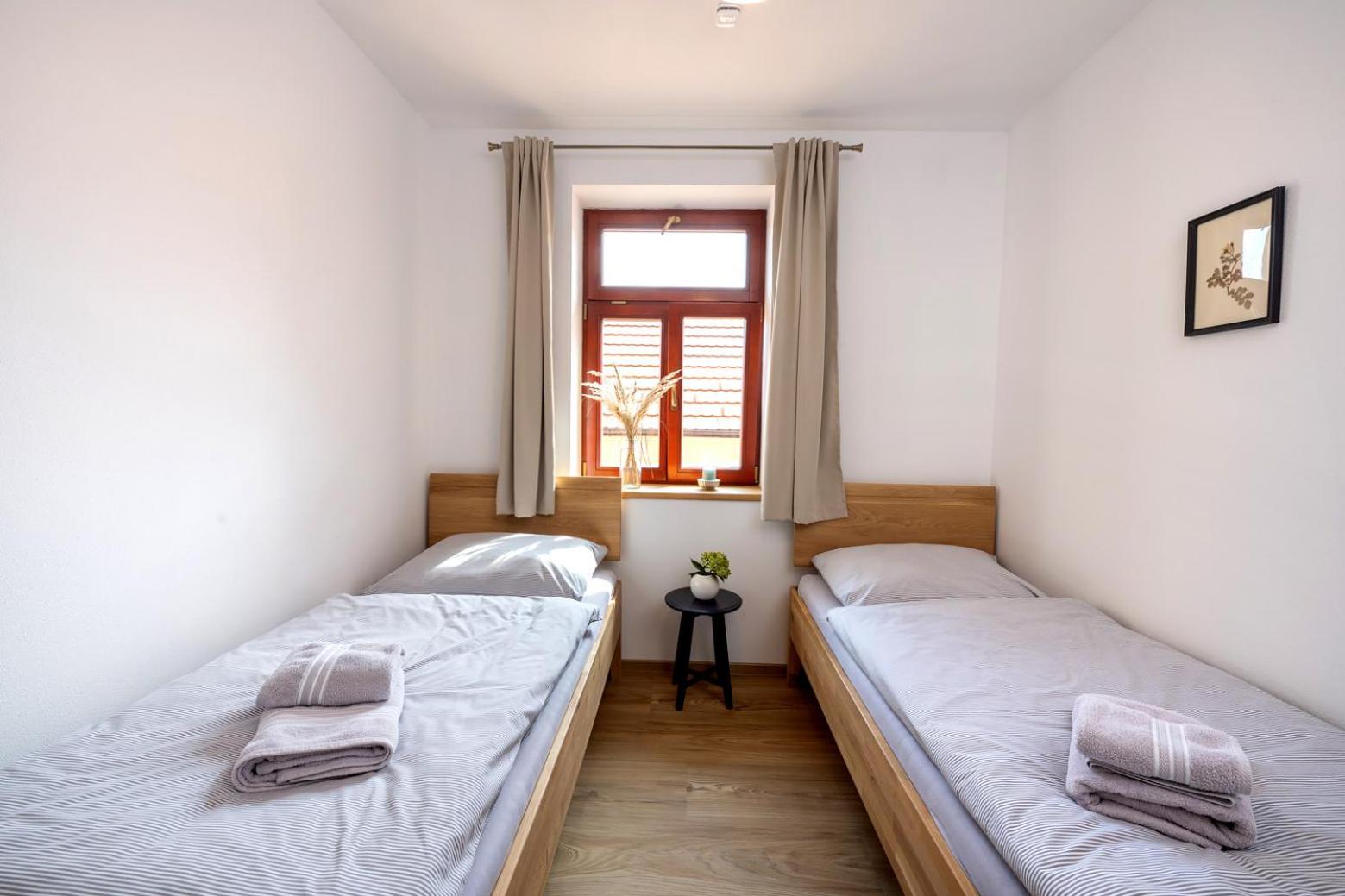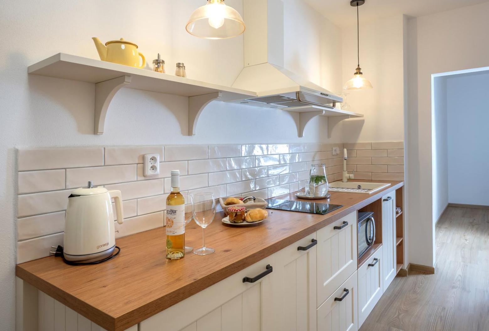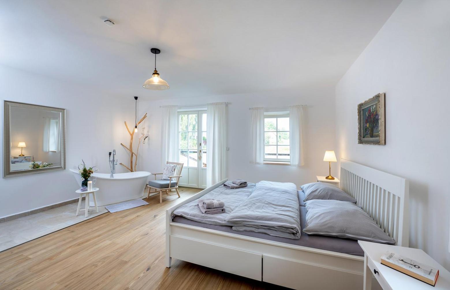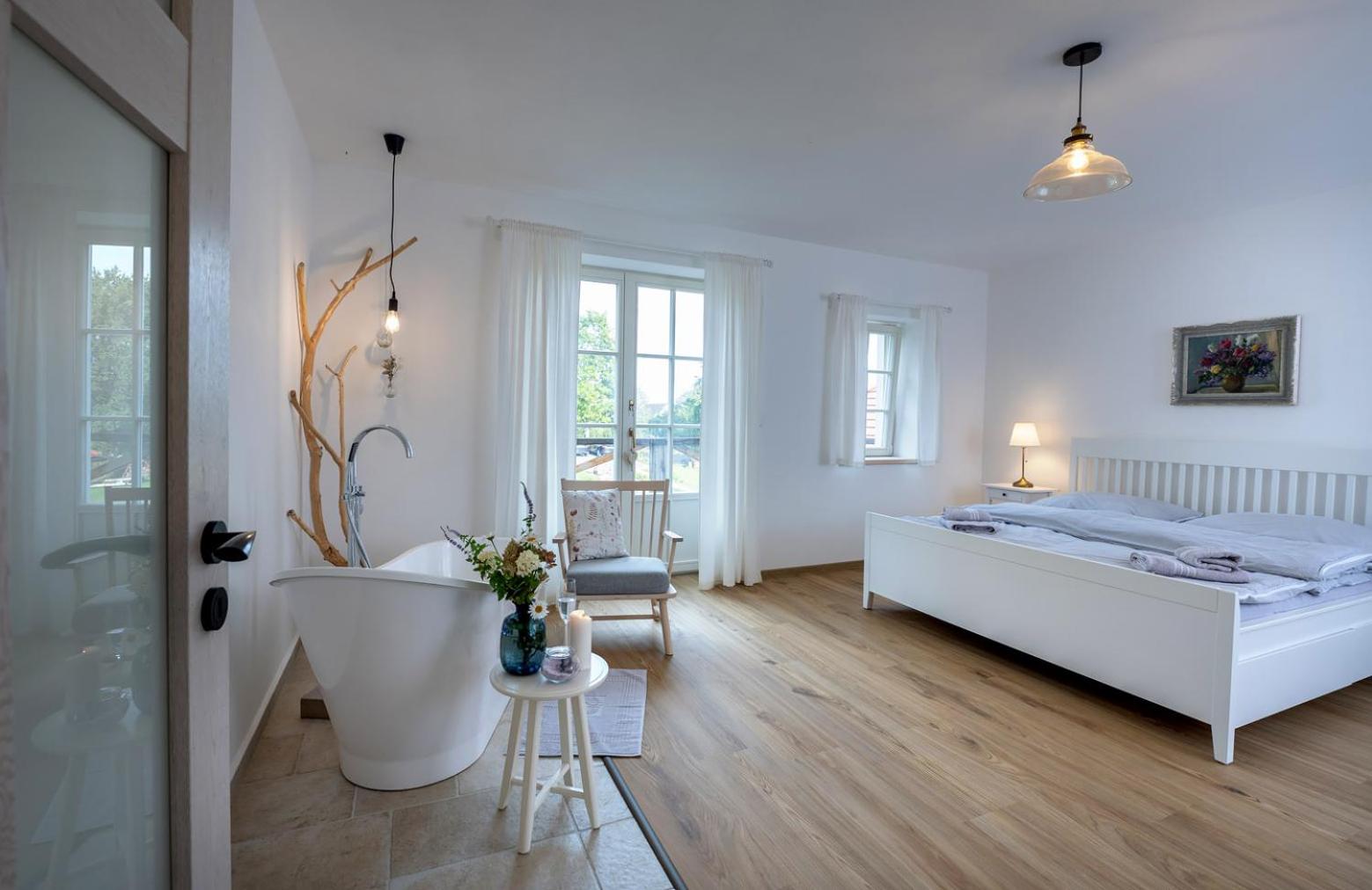 Úžasný, luxusní apartmán. Byli jsme tam s rodinou a pejskem. Krásné prostředí, příjemní majitelé. A ještě úžasnější koláčky od babičky. Nic nám nechybělo. Samoobslužný bar s točeným pivem. Na výběr i víno, limonáda, zmrzlina a jiné pochutiny. Určitě se vrátíme.