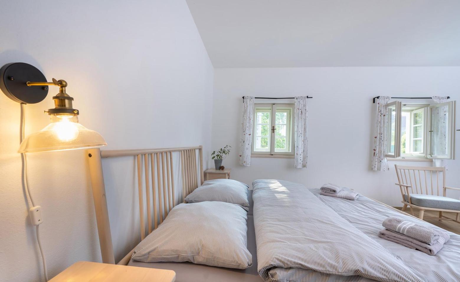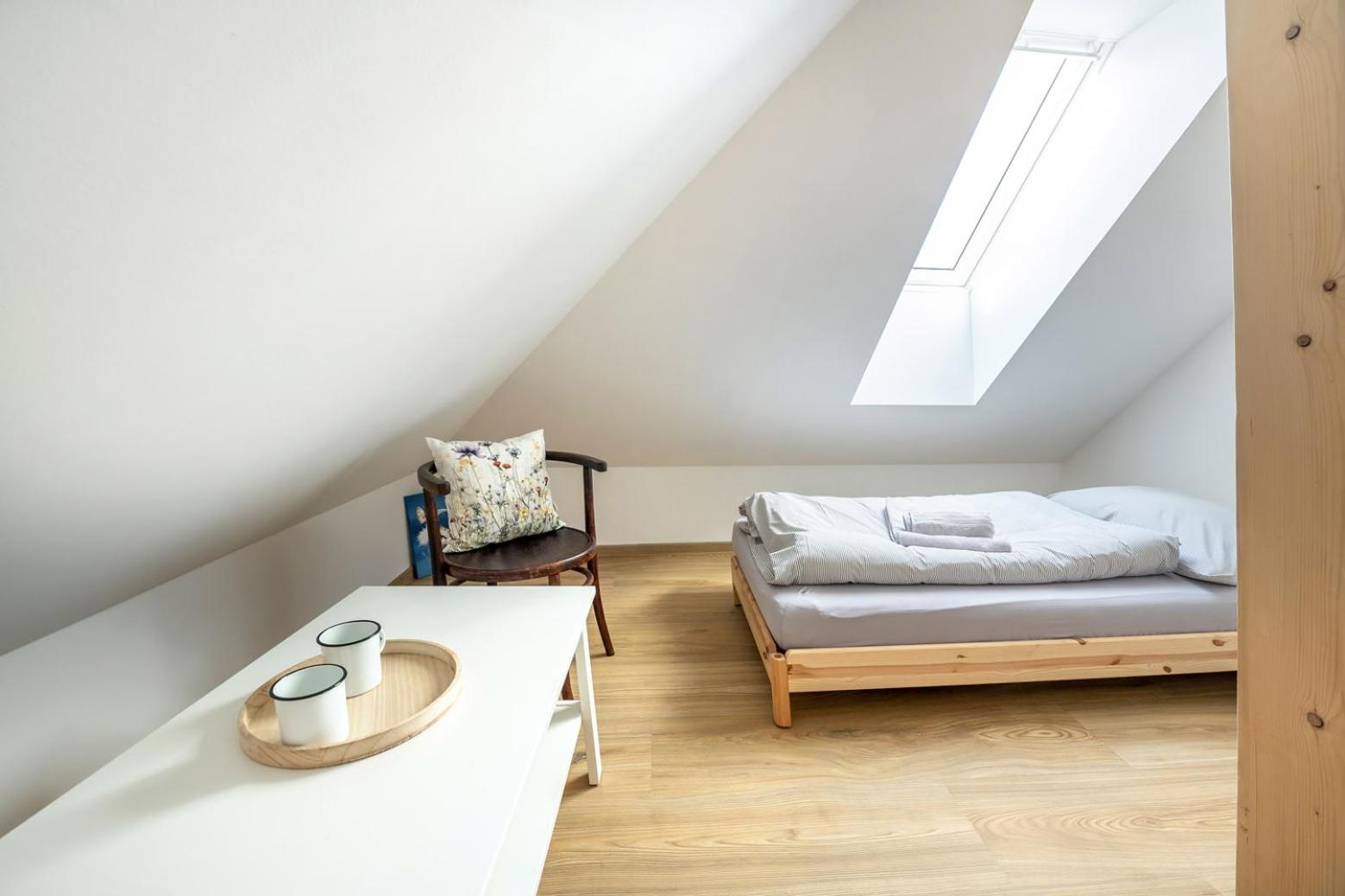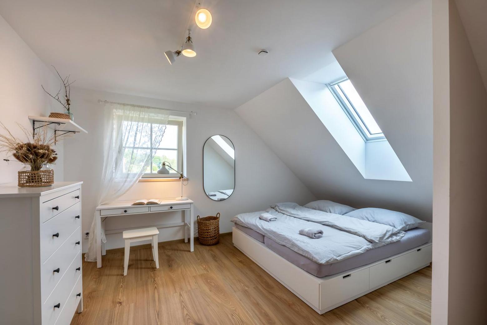 In the upper-floor rooms, there’s no shading on the skylight windows, so you wake up too early with the sunrise.