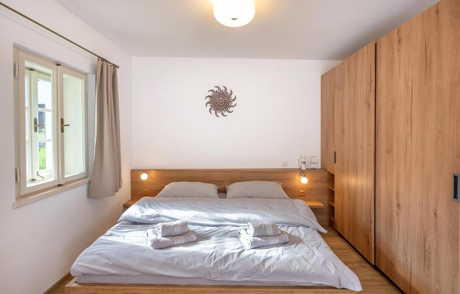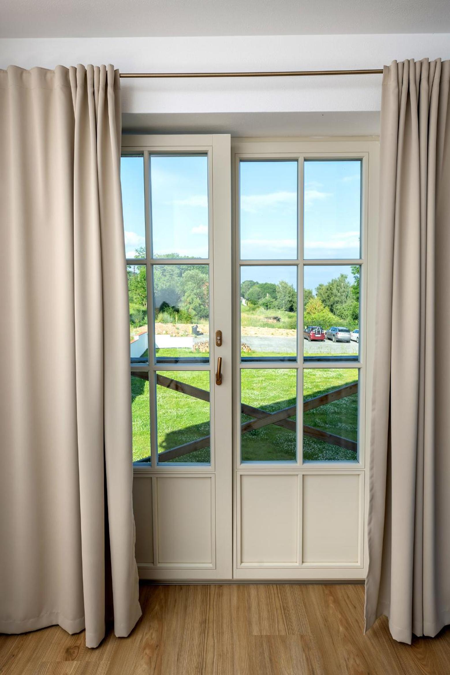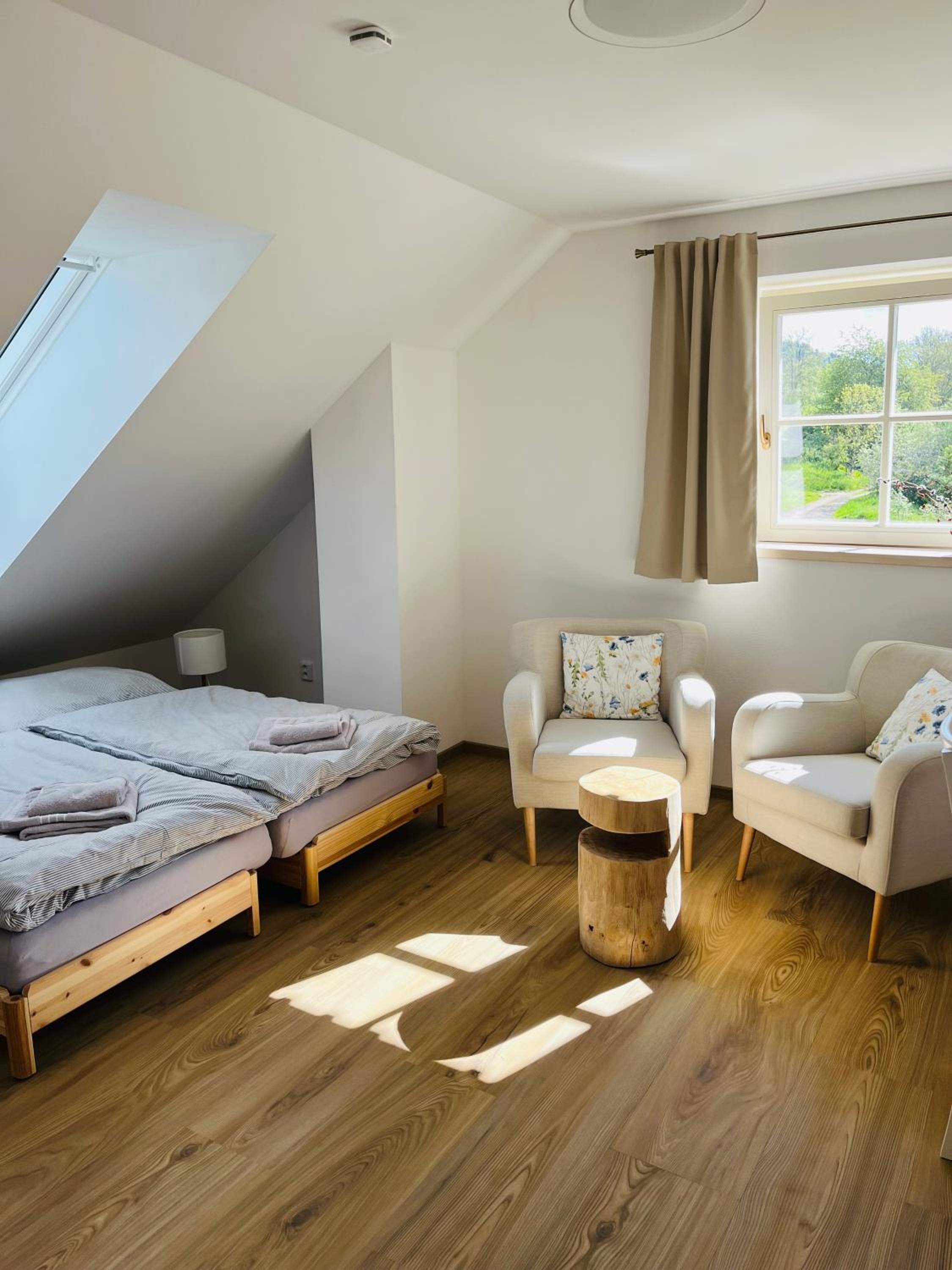 In the upper-floor rooms, there’s no shading on the skylight windows, so you wake up too early with the sunrise.