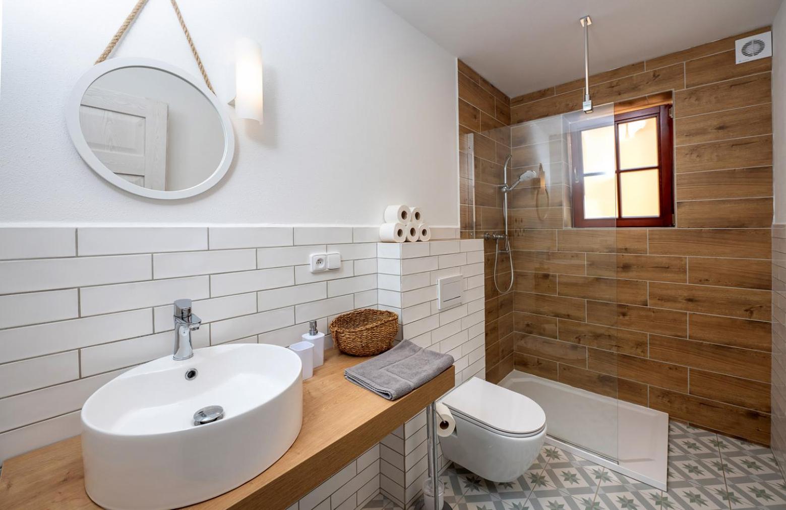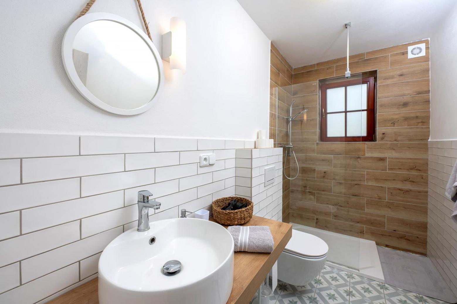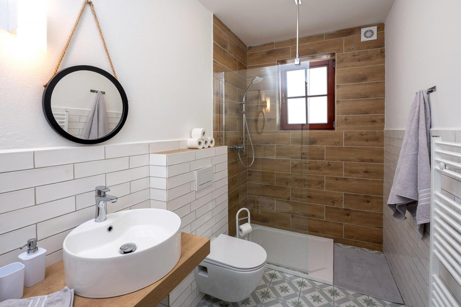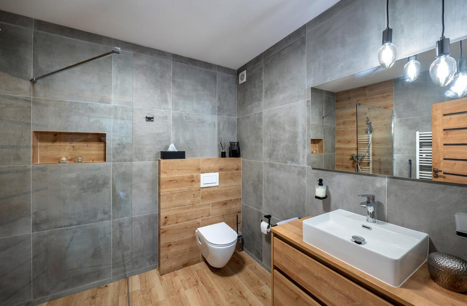 Weak water flow from the small shower heads. No shower soap or laundry powder/capsules provided.
