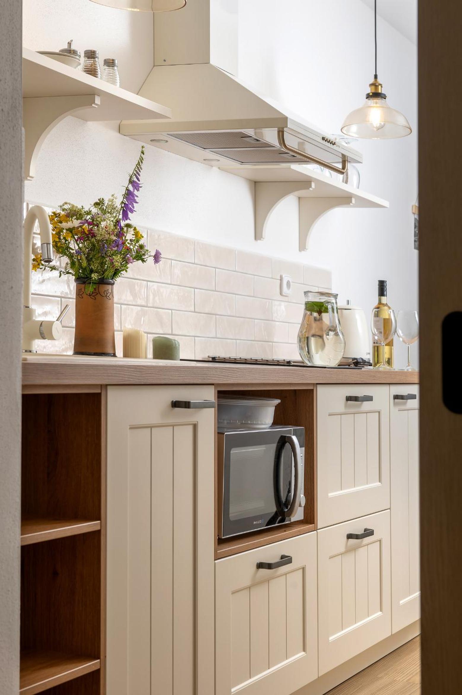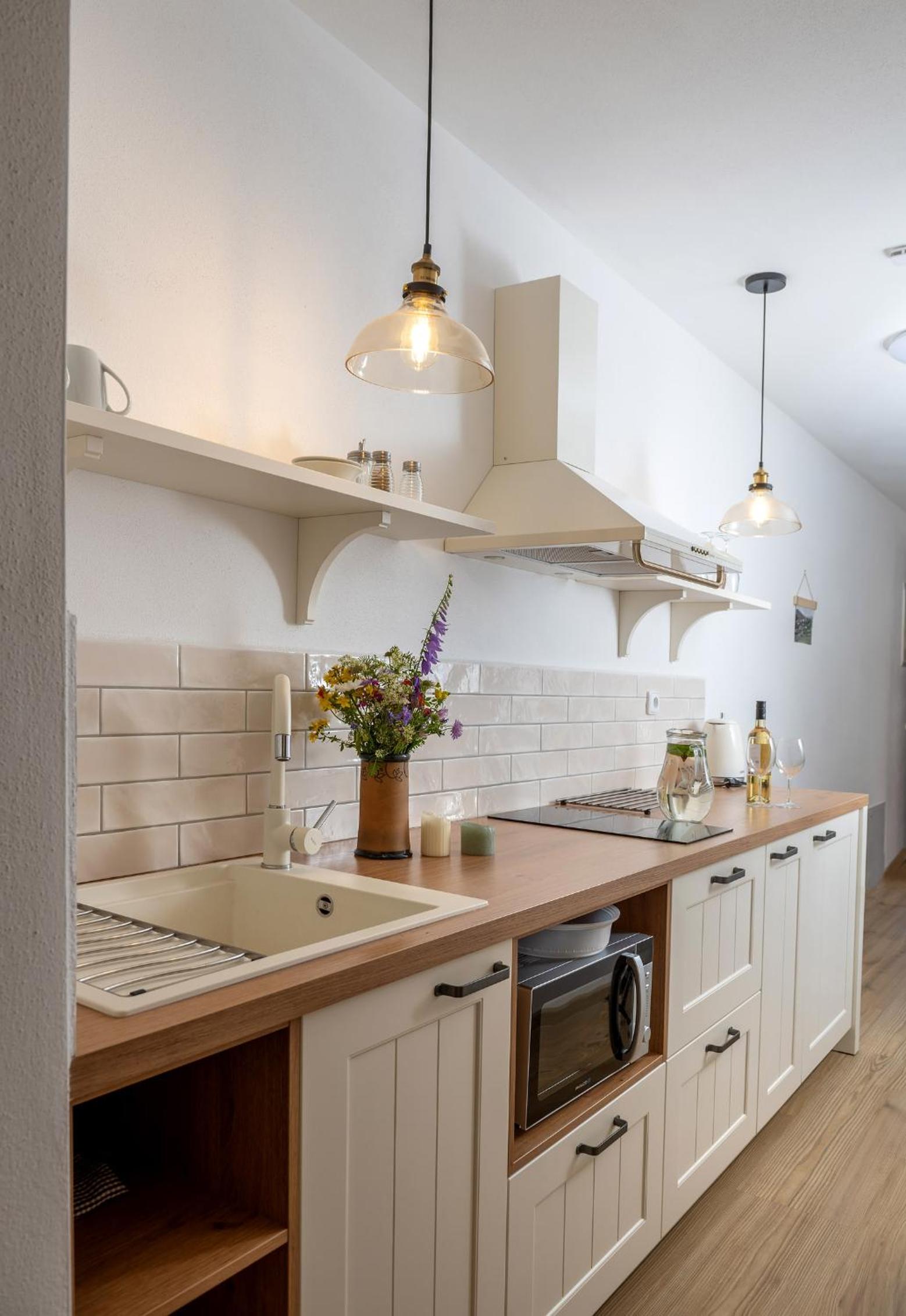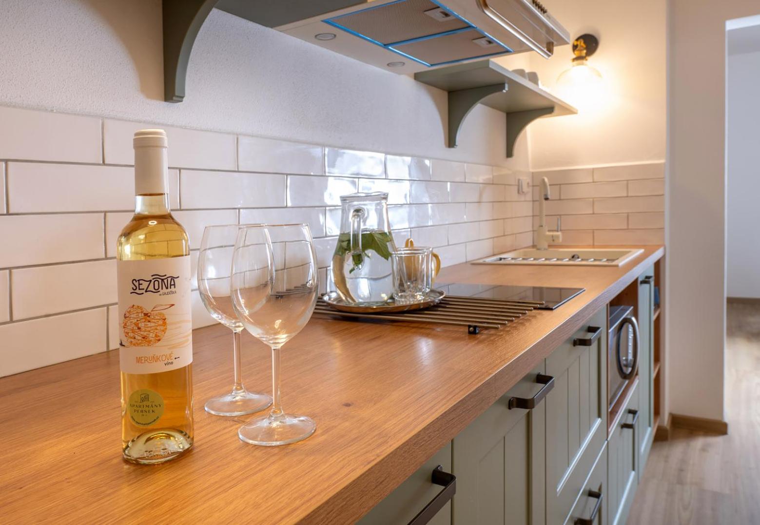 Krásný, útulný a prostorný apartmán s vlastní kuchyňkou. Součástí komplexu je navíc i sdílená kuchyňka/hospoda, kde si lze zakoupit různé pochutiny, koláče, farmářské potraviny, případně si lze načepovat pivo. Dále je zde možnost využití privátní sauny. Pobyt v Perneku se nám moc líbil a věřím, že se vrátíme :)