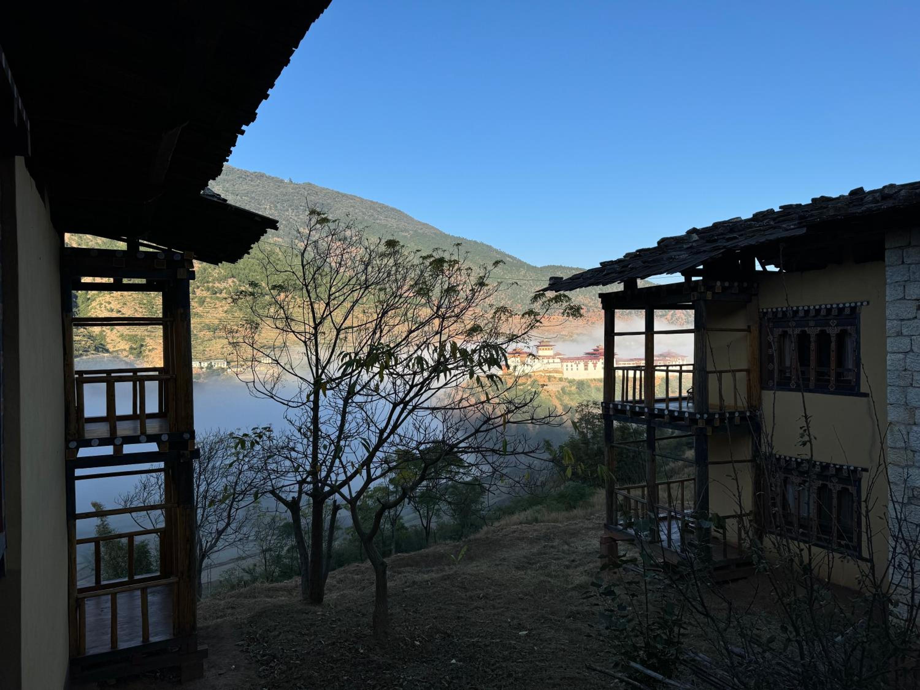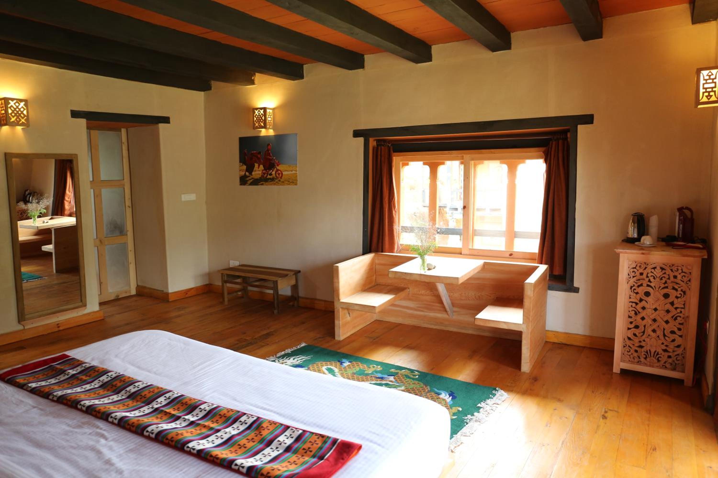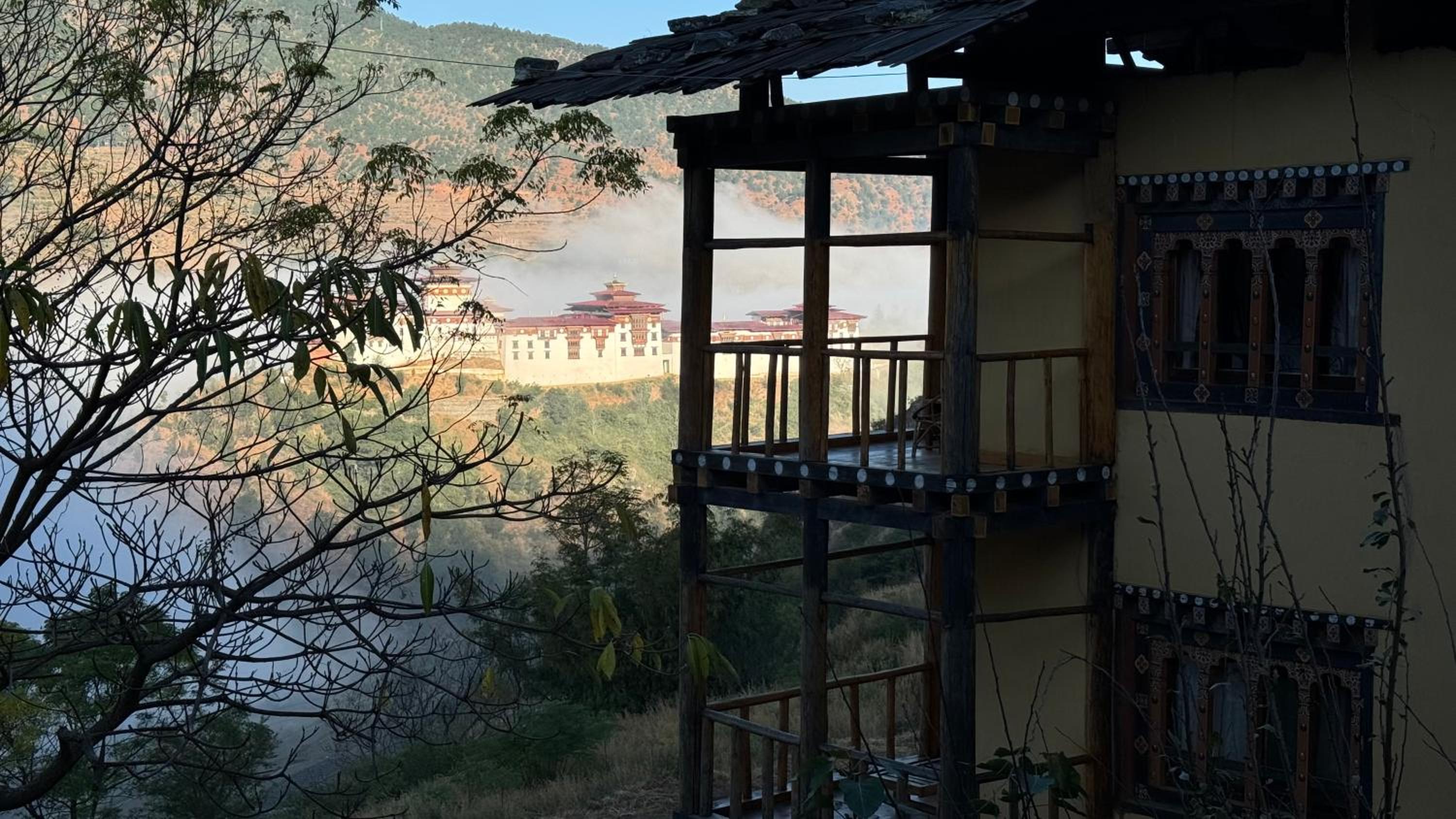 Definitely stay here! The location is stunning overlooking the Dzong, the Bhutanese food was excellent, and the room was large with plenty of Bhutanese touches that make the place feel homely and welcoming, including some antique items in the rooms. The manager and team were friendly and warm, and all the food comes from their own garden. The dining area is especially beautifully done, in a traditionally Bhutanese style with views of the Dzong as you eat. The team agreed to serve us a super early breakfast at 5:30, served on the terrace outside - again with magnificent views of the Dzong. The owner's family offers the use of their private altar room to meditate. I would happily stay here again!