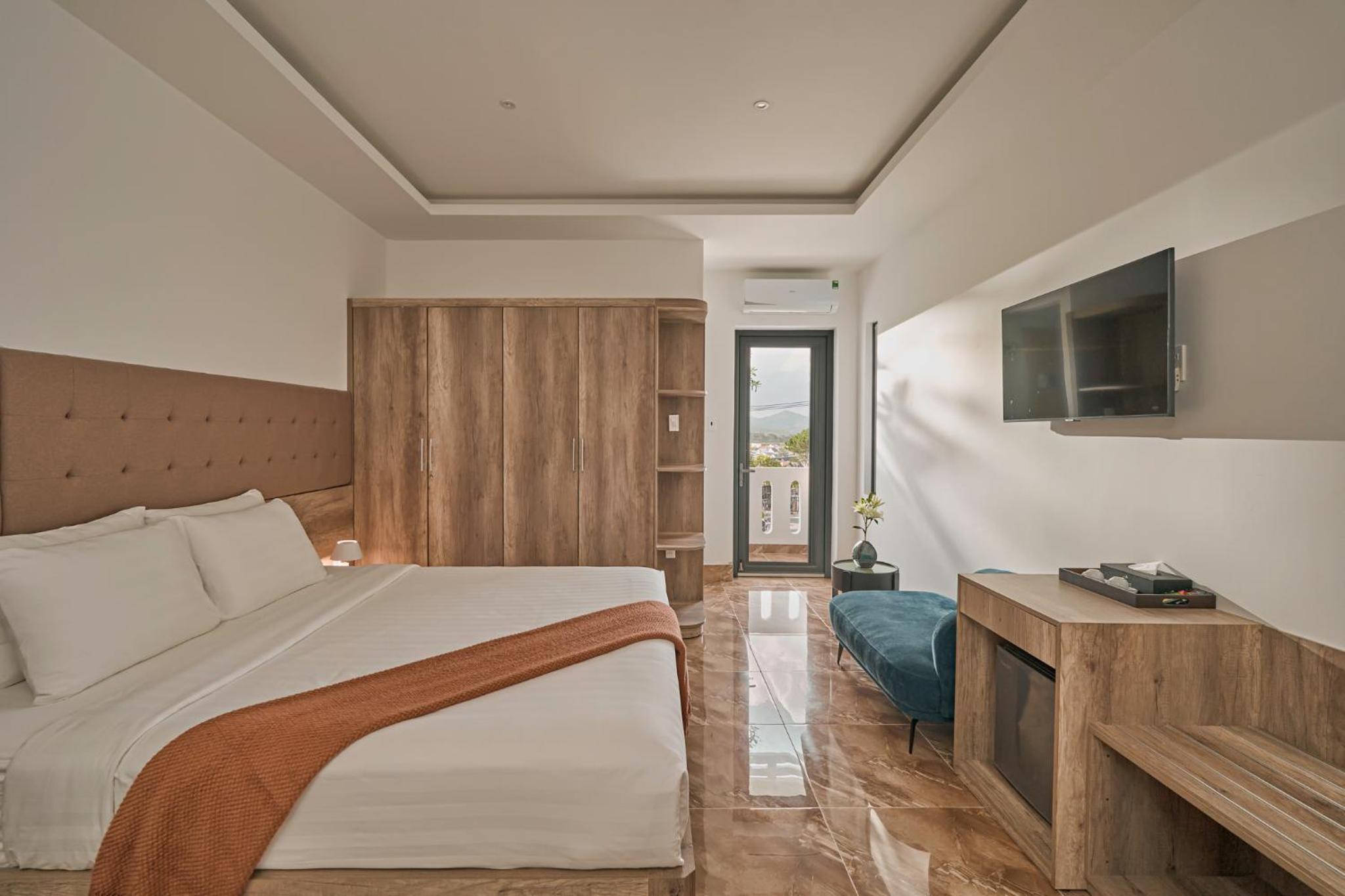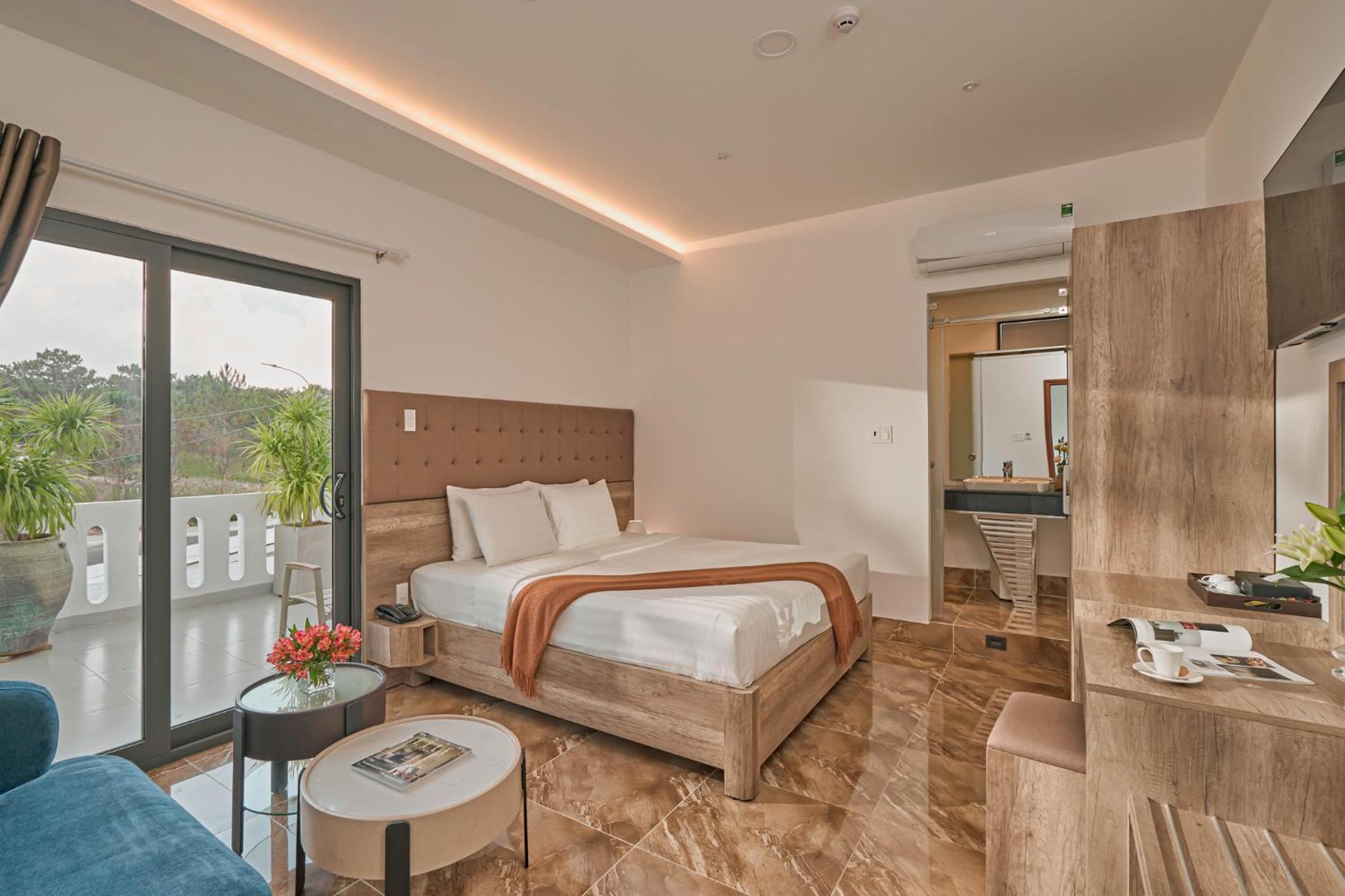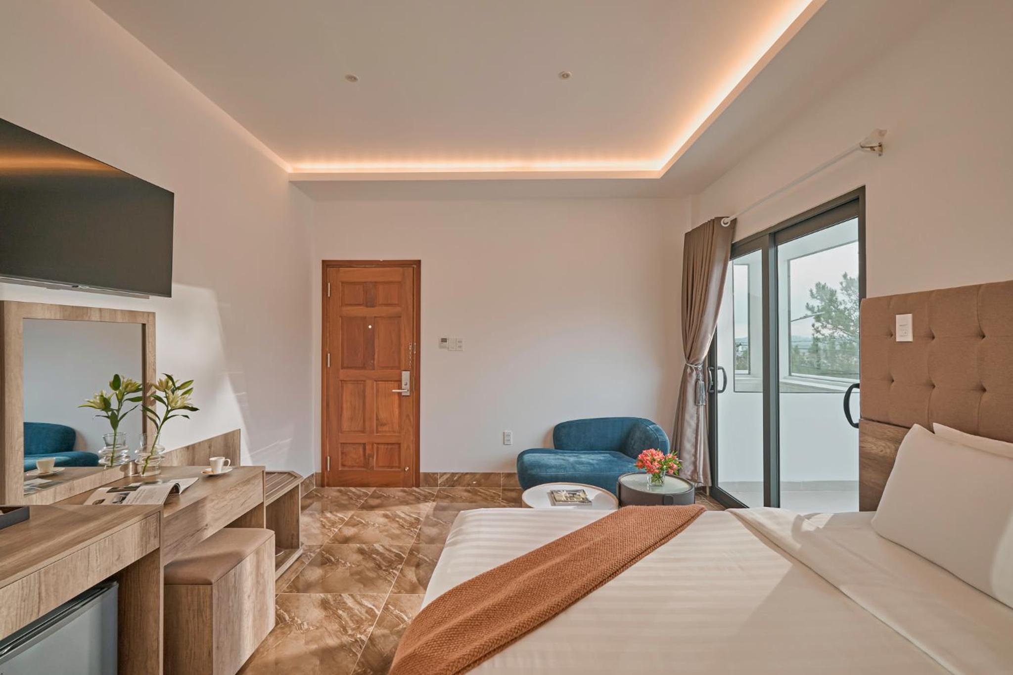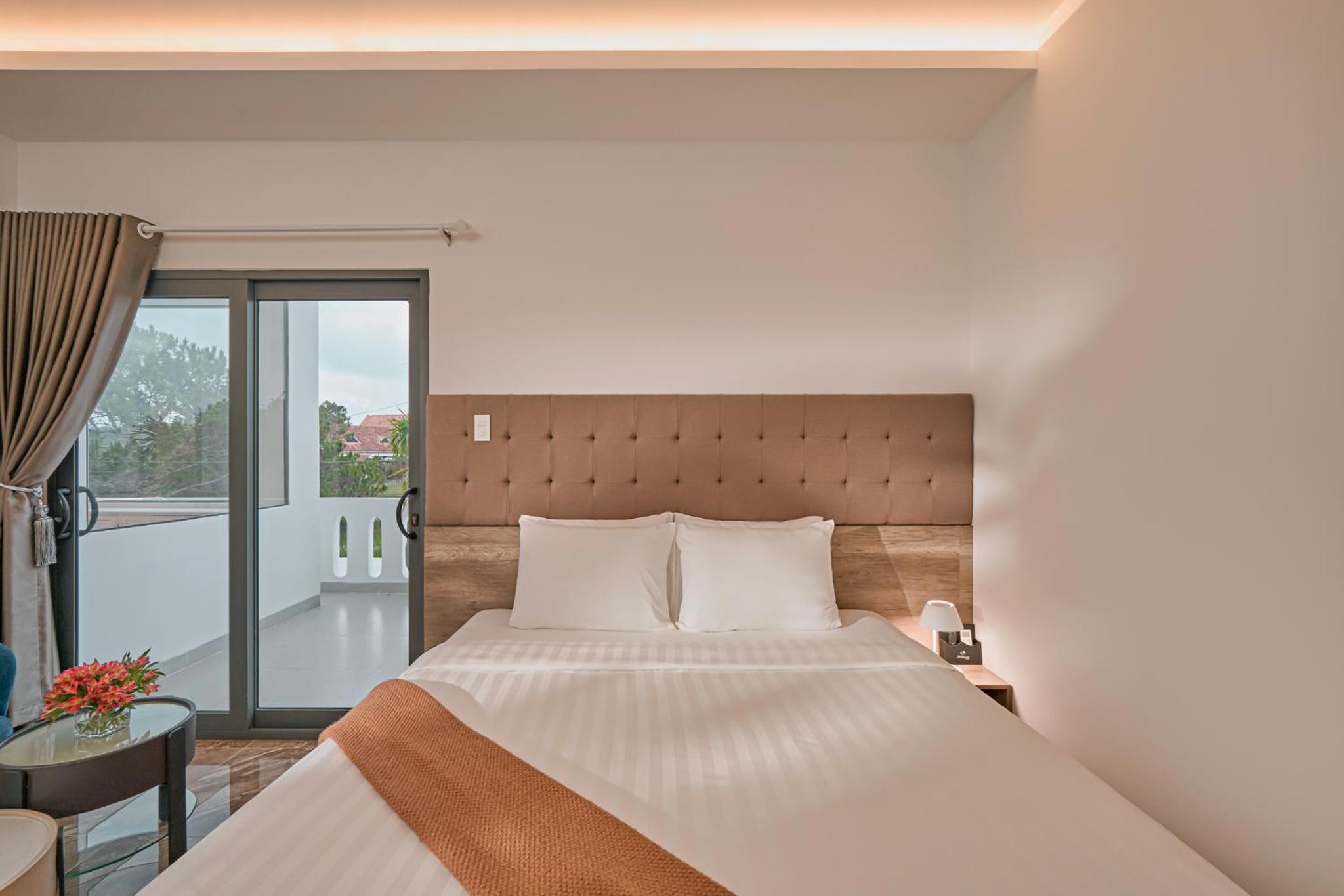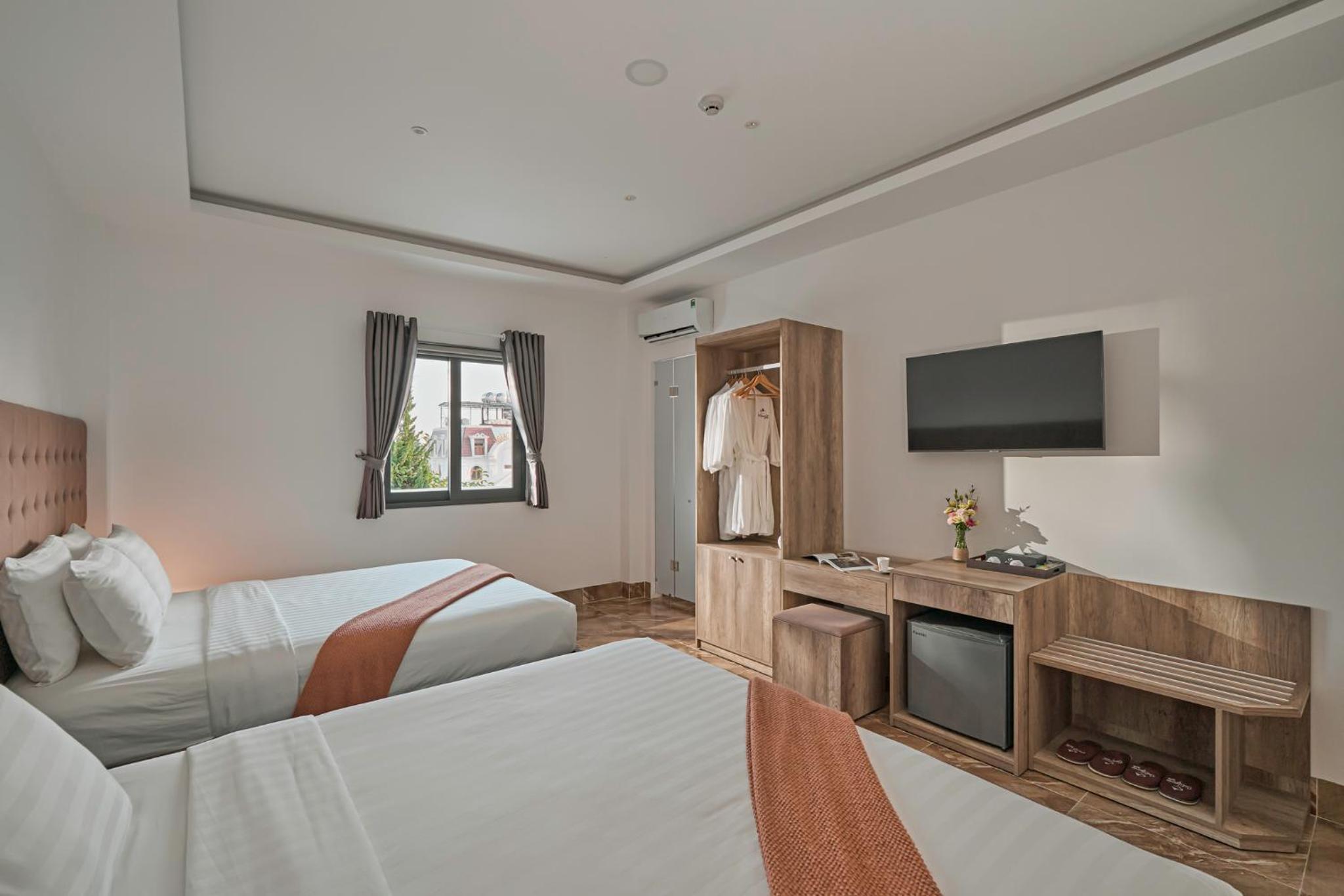 California Hotel in Da Lat offers air-conditioned rooms with modern amenities like a flat-screen TV, minibar, and private bathroom. The rooms are designed for comfort and convenience, ensuring a pleasant stay for all guests.