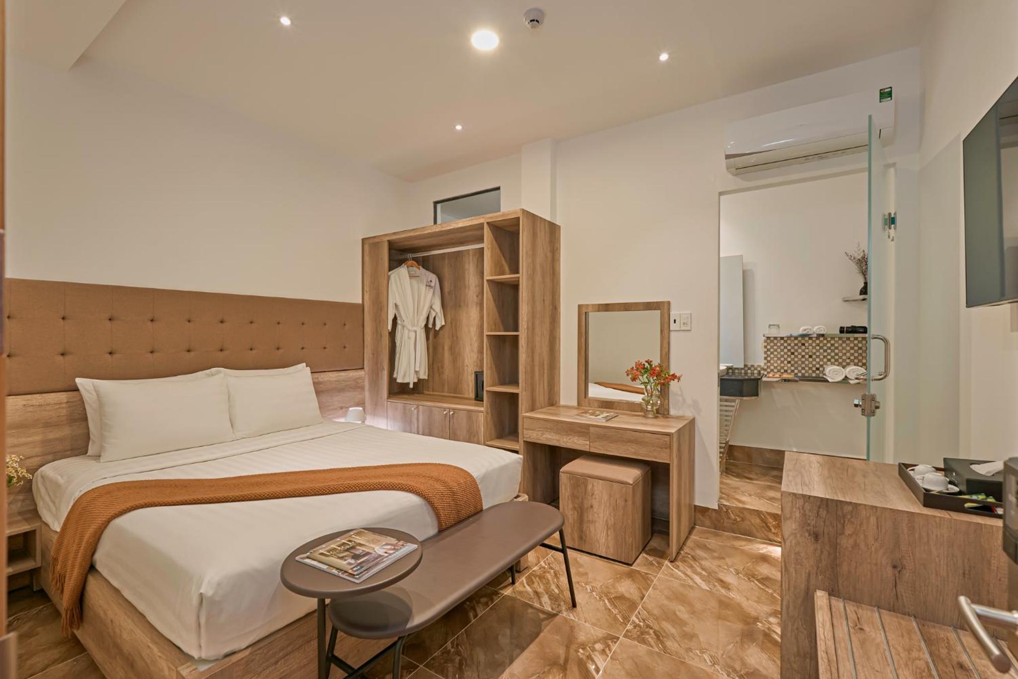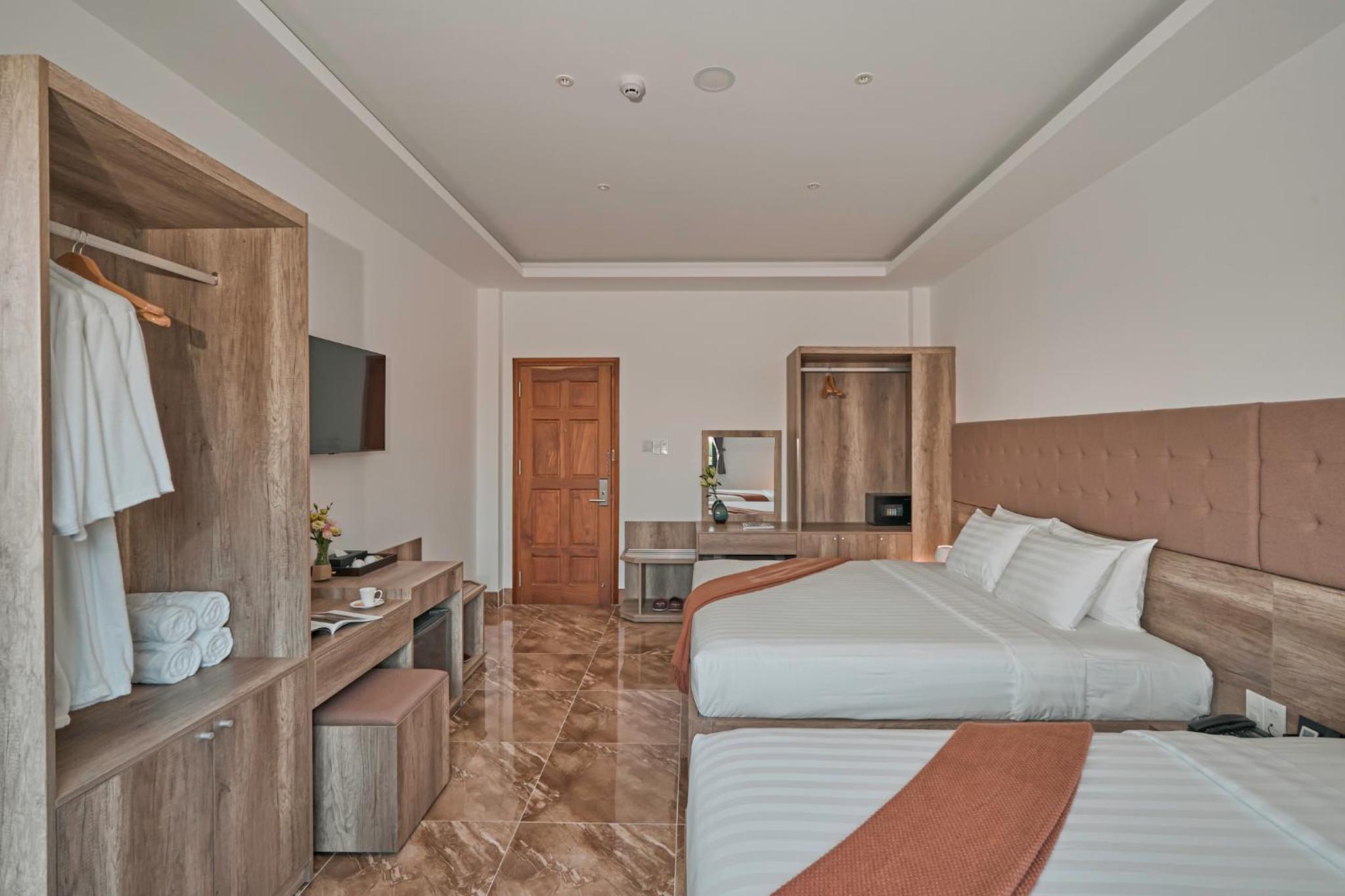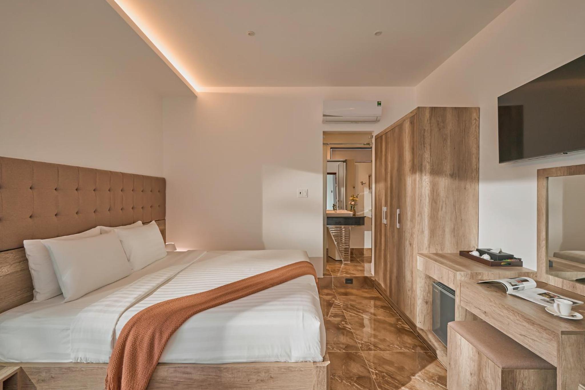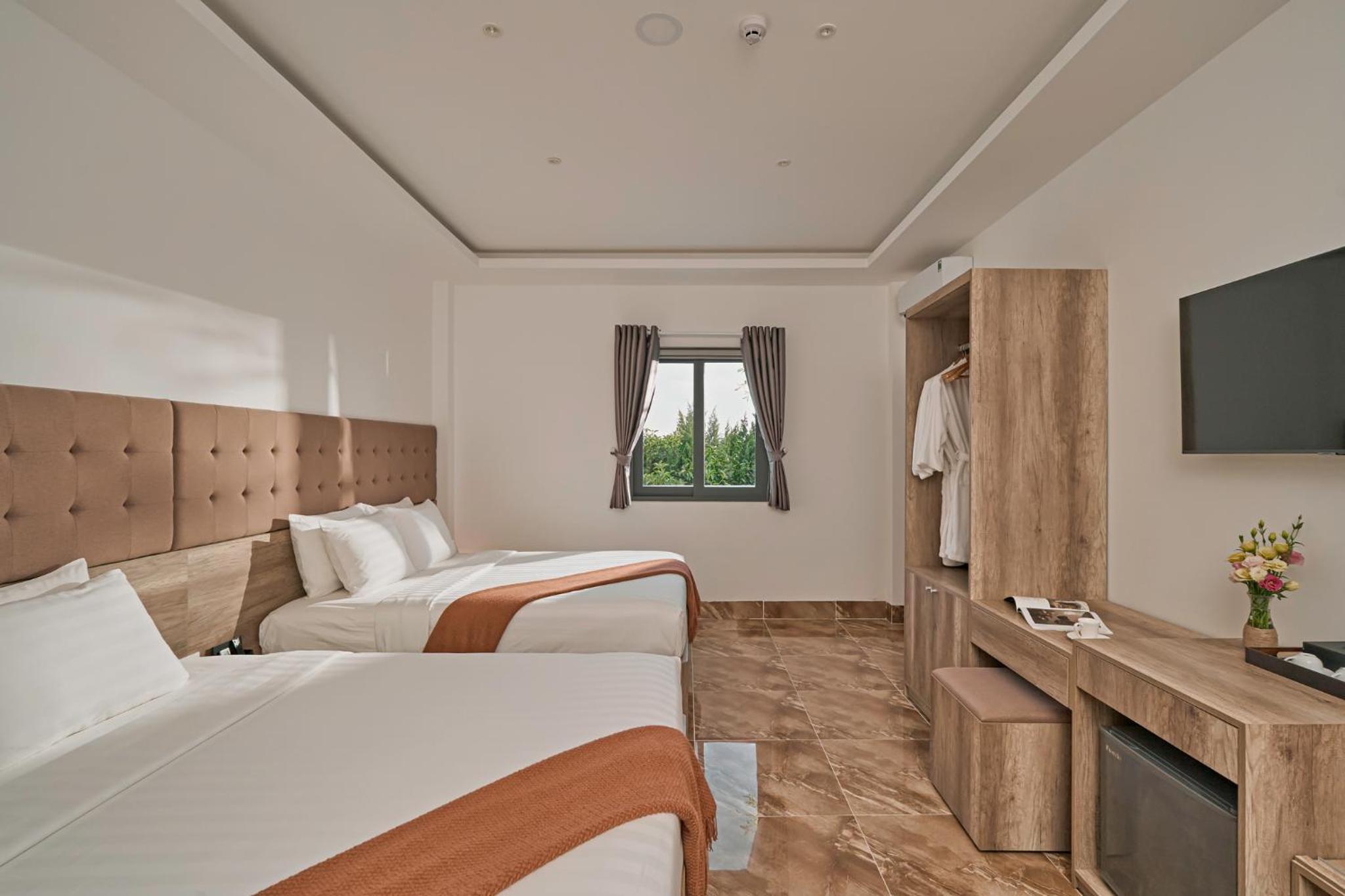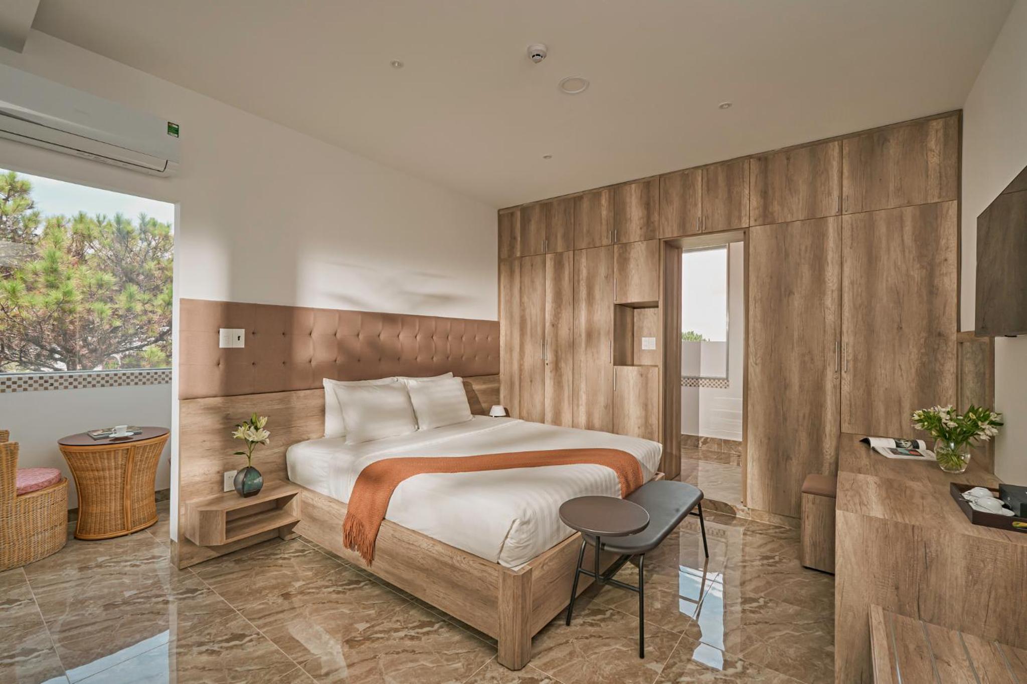 California Hotel in Da Lat offers air-conditioned rooms with modern amenities like a flat-screen TV, minibar, and private bathroom. The rooms are designed for comfort and convenience, ensuring a pleasant stay for all guests.