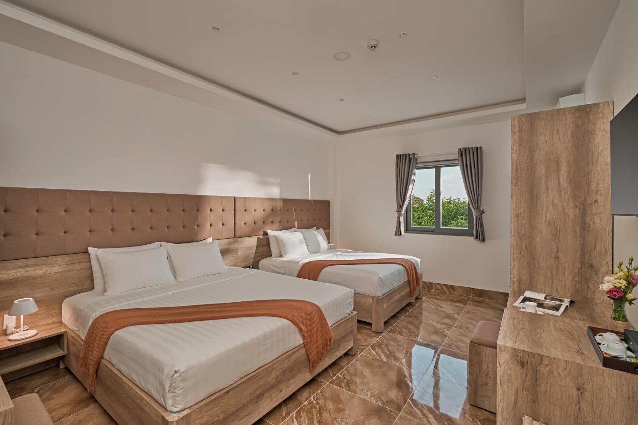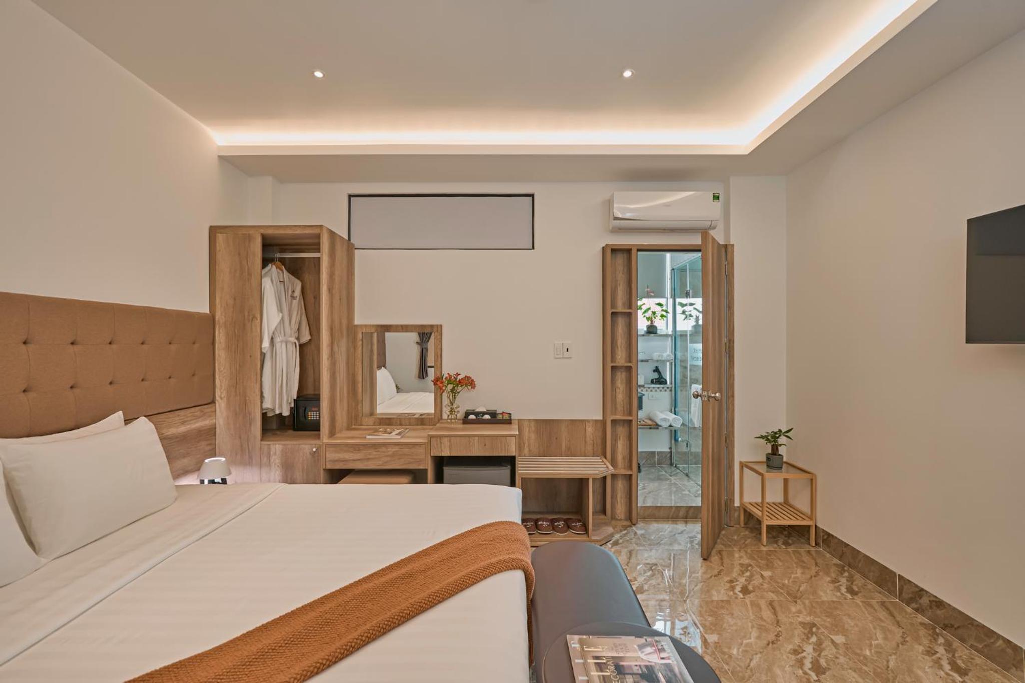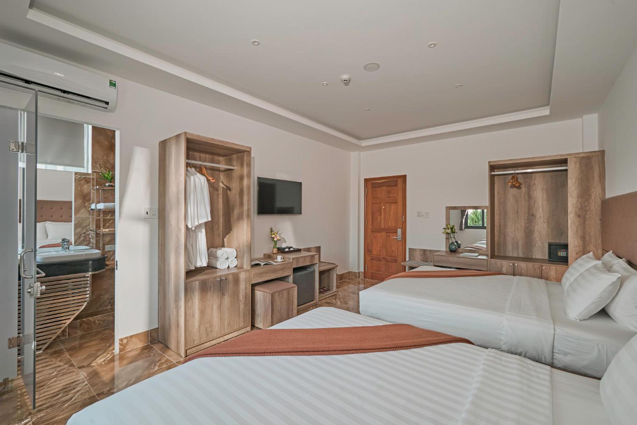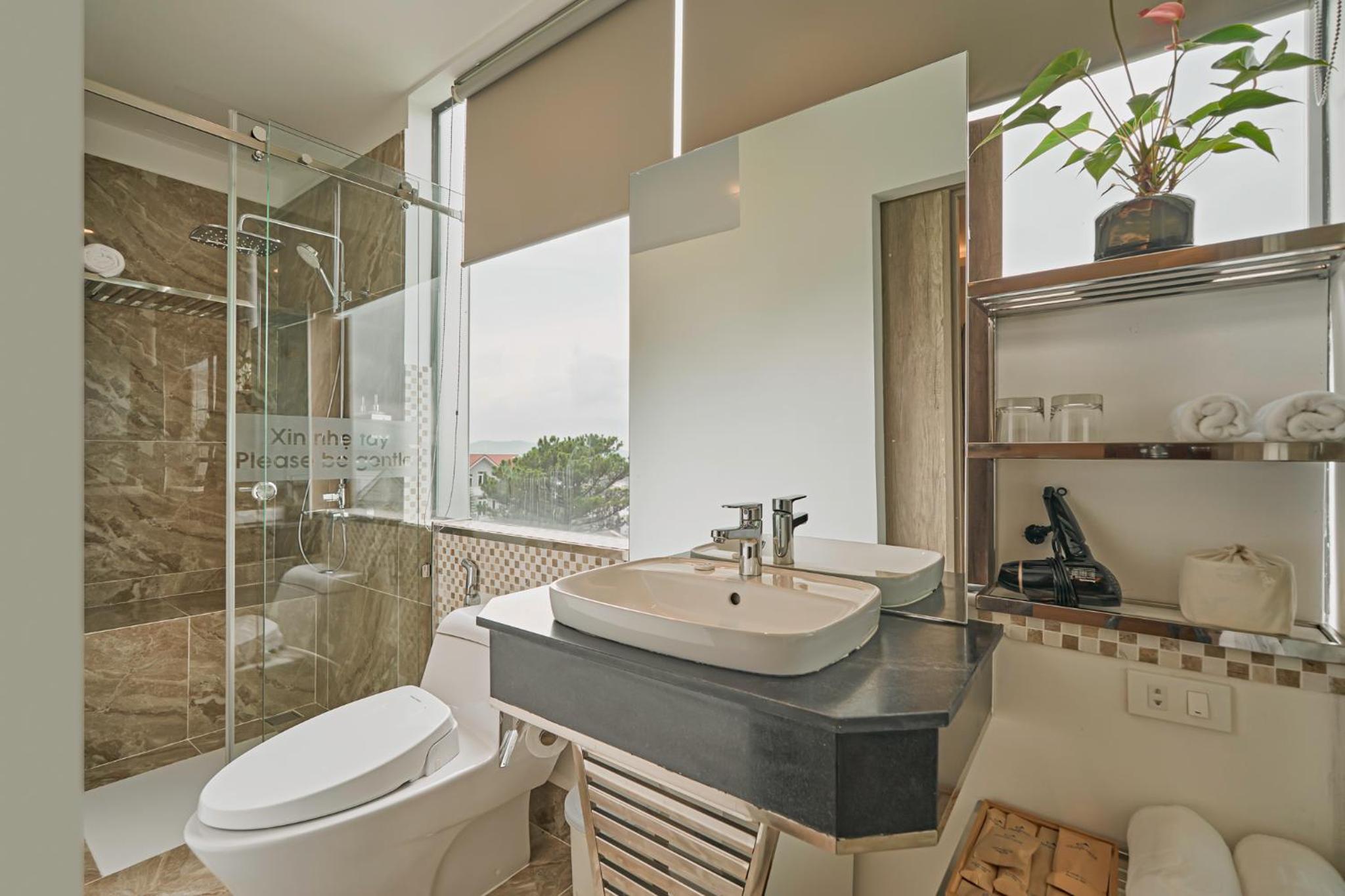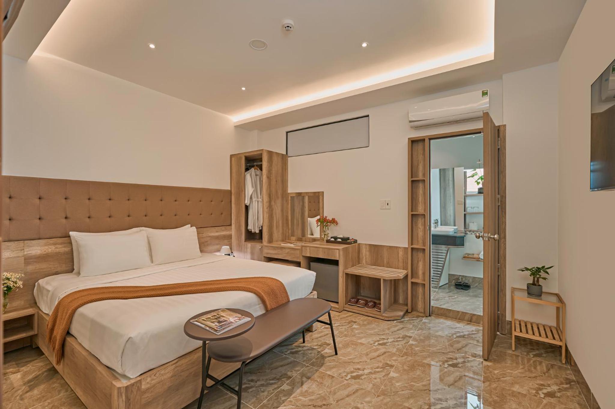 California Hotel in Da Lat offers air-conditioned rooms with modern amenities like a flat-screen TV, minibar, and private bathroom. The rooms are designed for comfort and convenience, ensuring a pleasant stay for all guests.