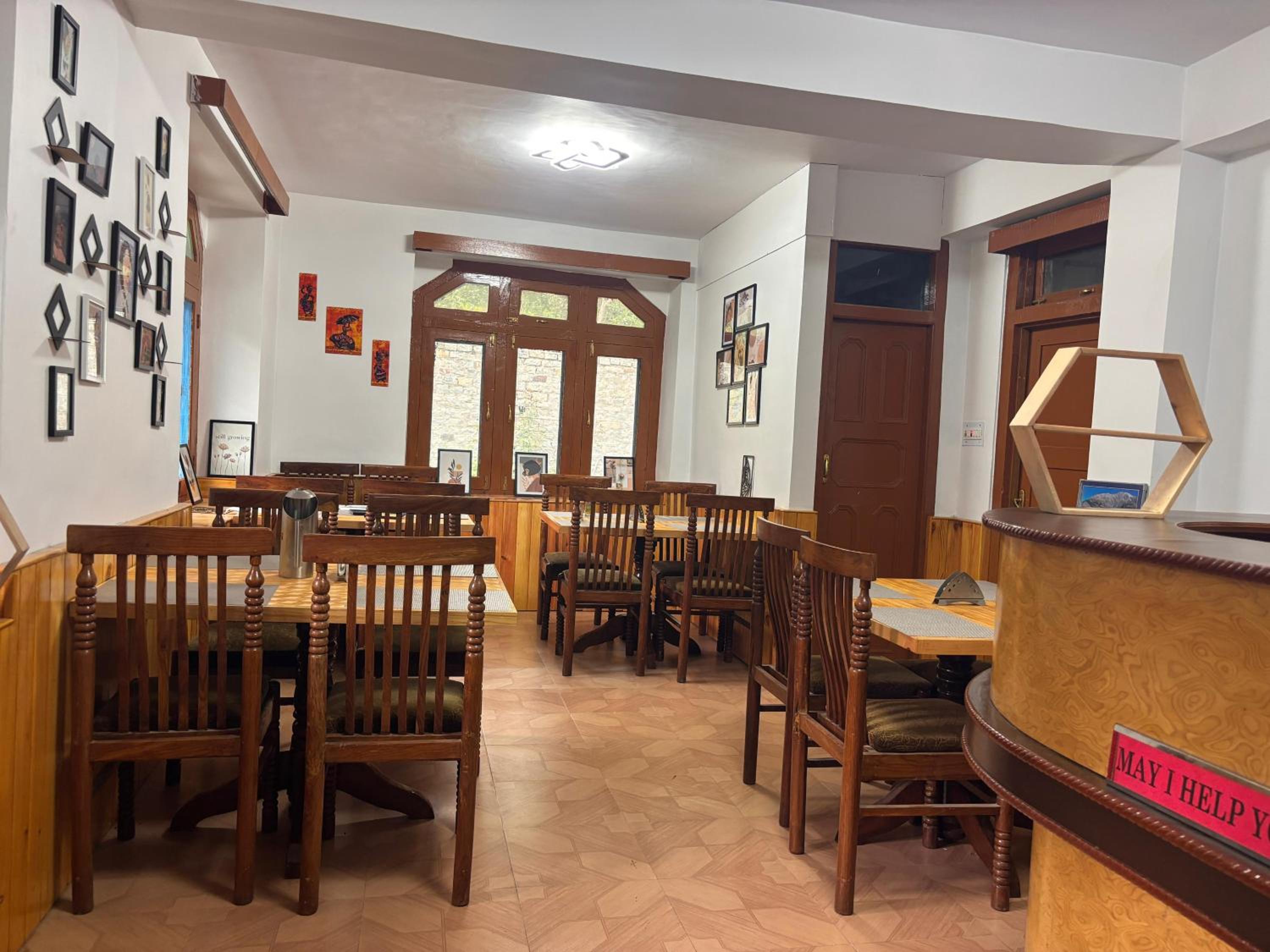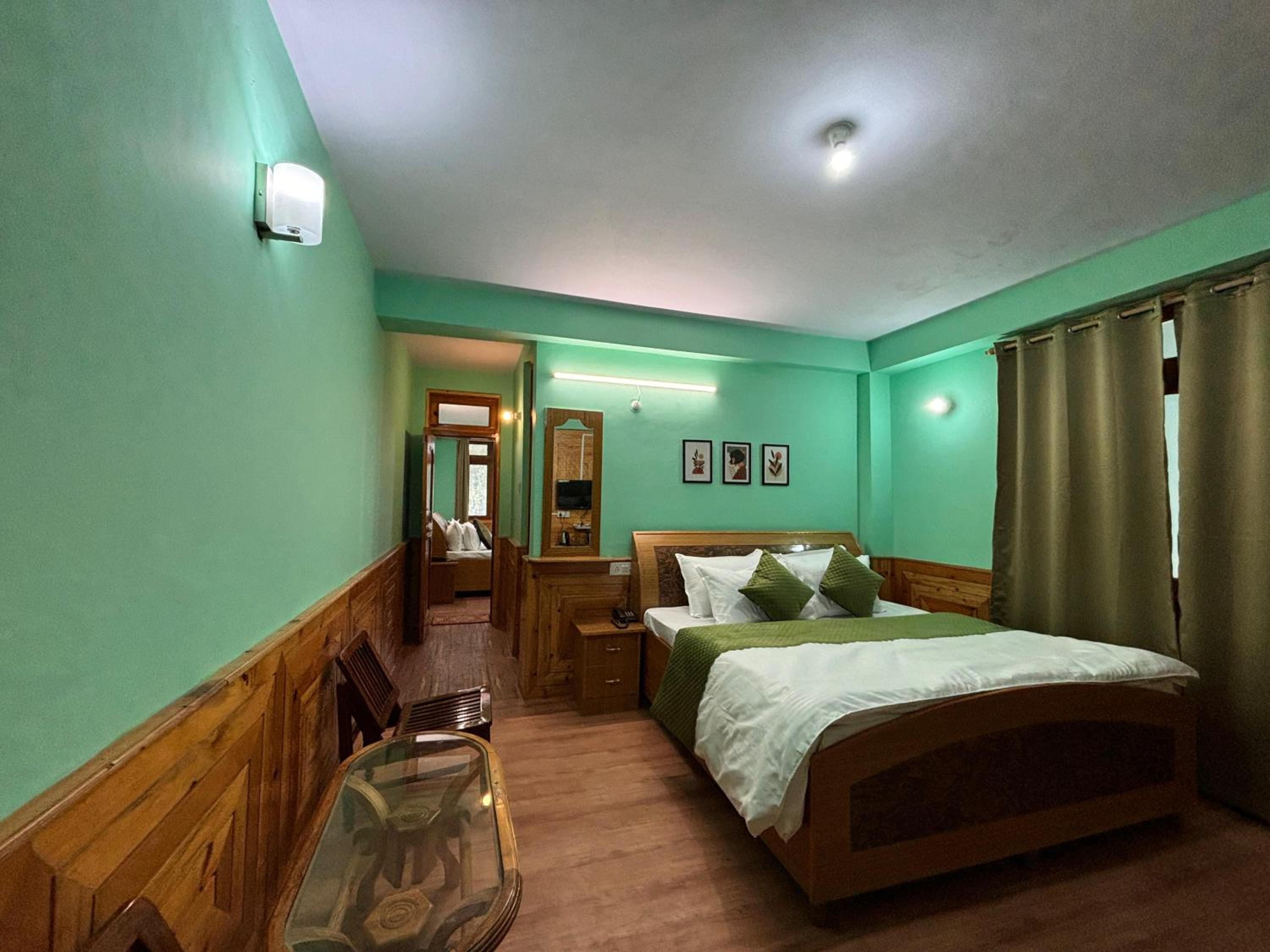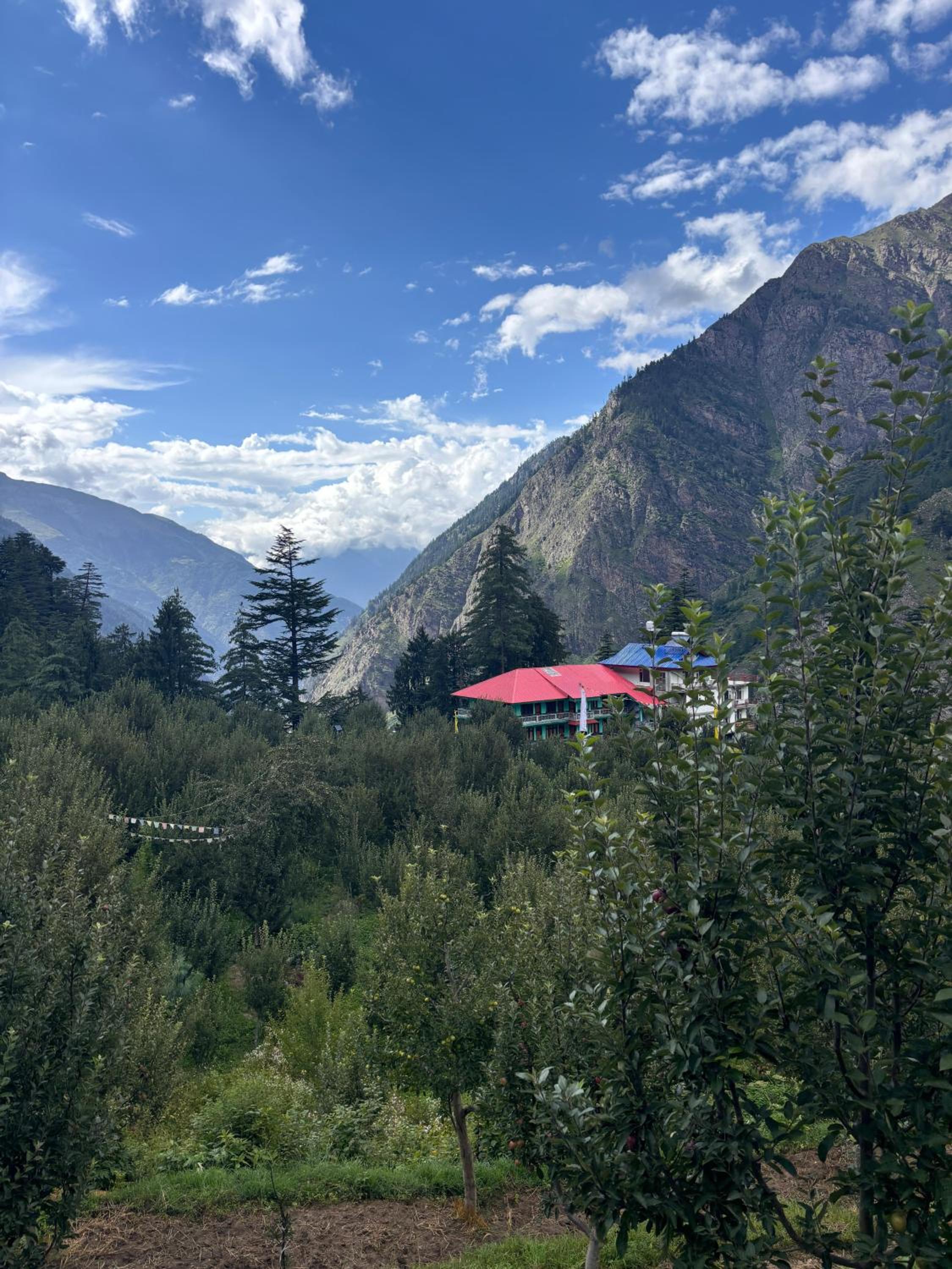 The hotel is located in surrounding the hills ranges with snow clad mountains. the river flows on one side with water from melted snows at the top of mountains. there is an apple orchard behind .. Beautiful lush green grass outside, the dining area is vast and well furnished. the services are great. and the rooms are kept impeccably clean and well furnished, and the rooms offer a spectacular view of mountains and jungles apple orchards around. we feel like as if we are in heaven, we loved the place,