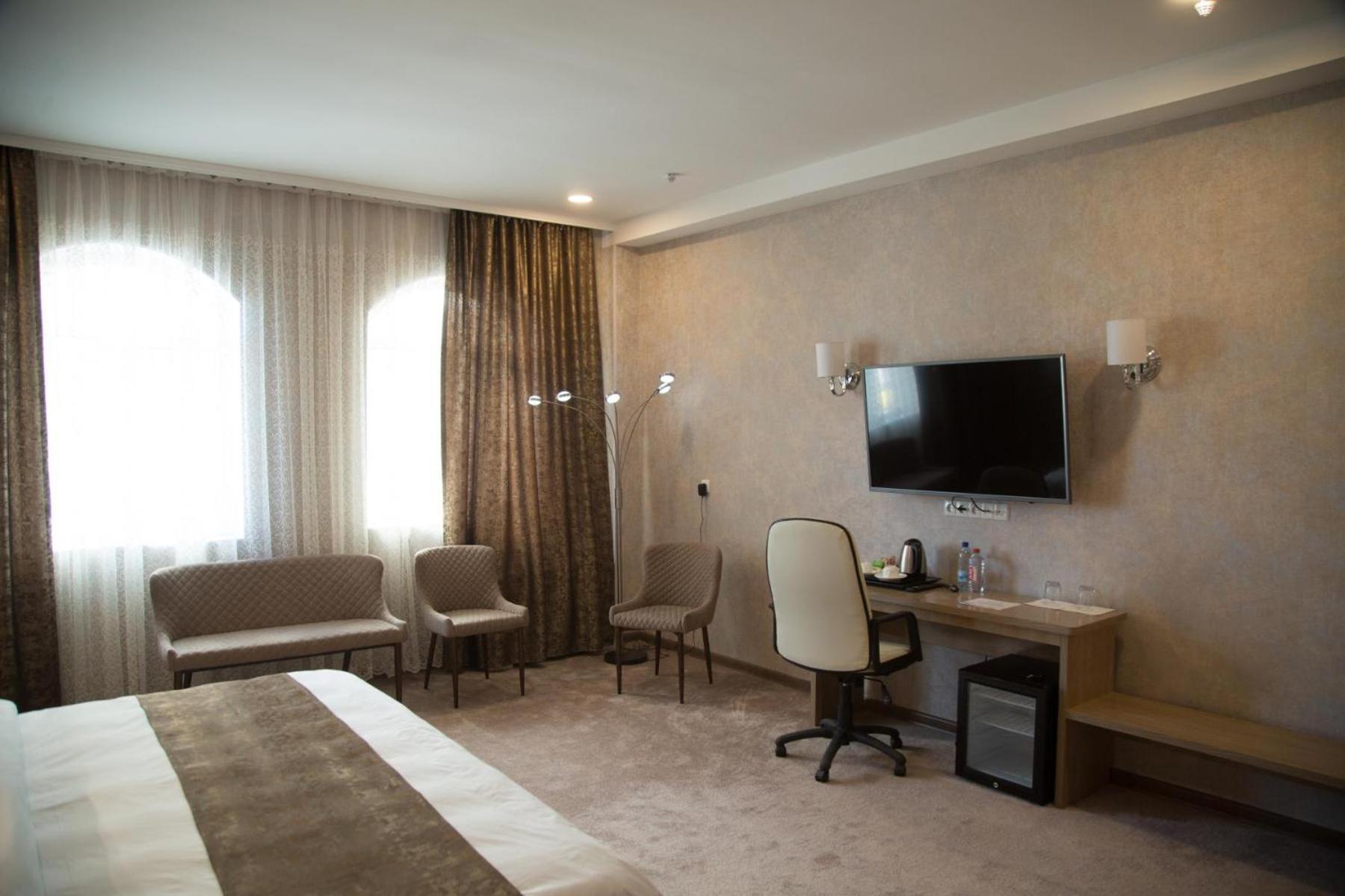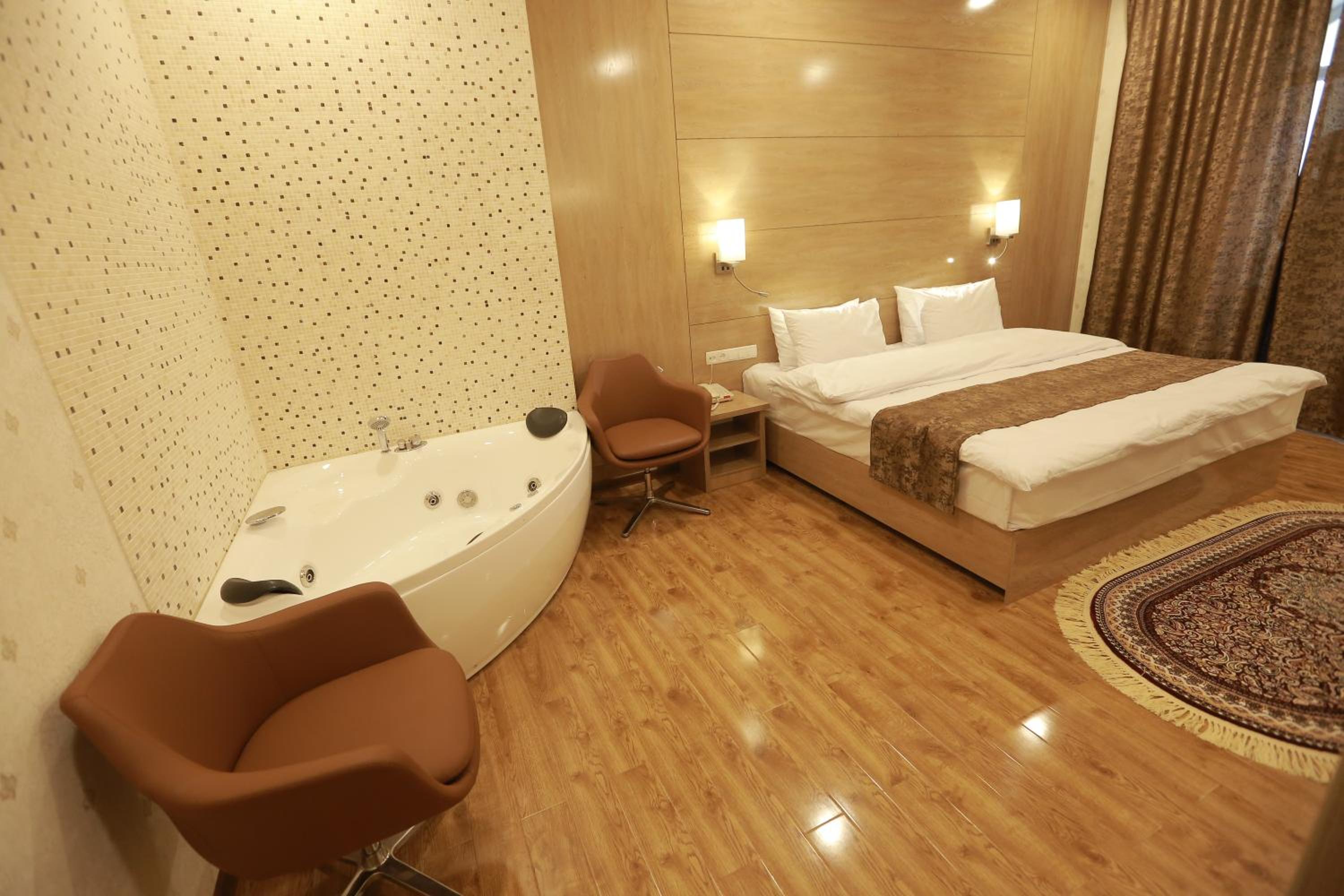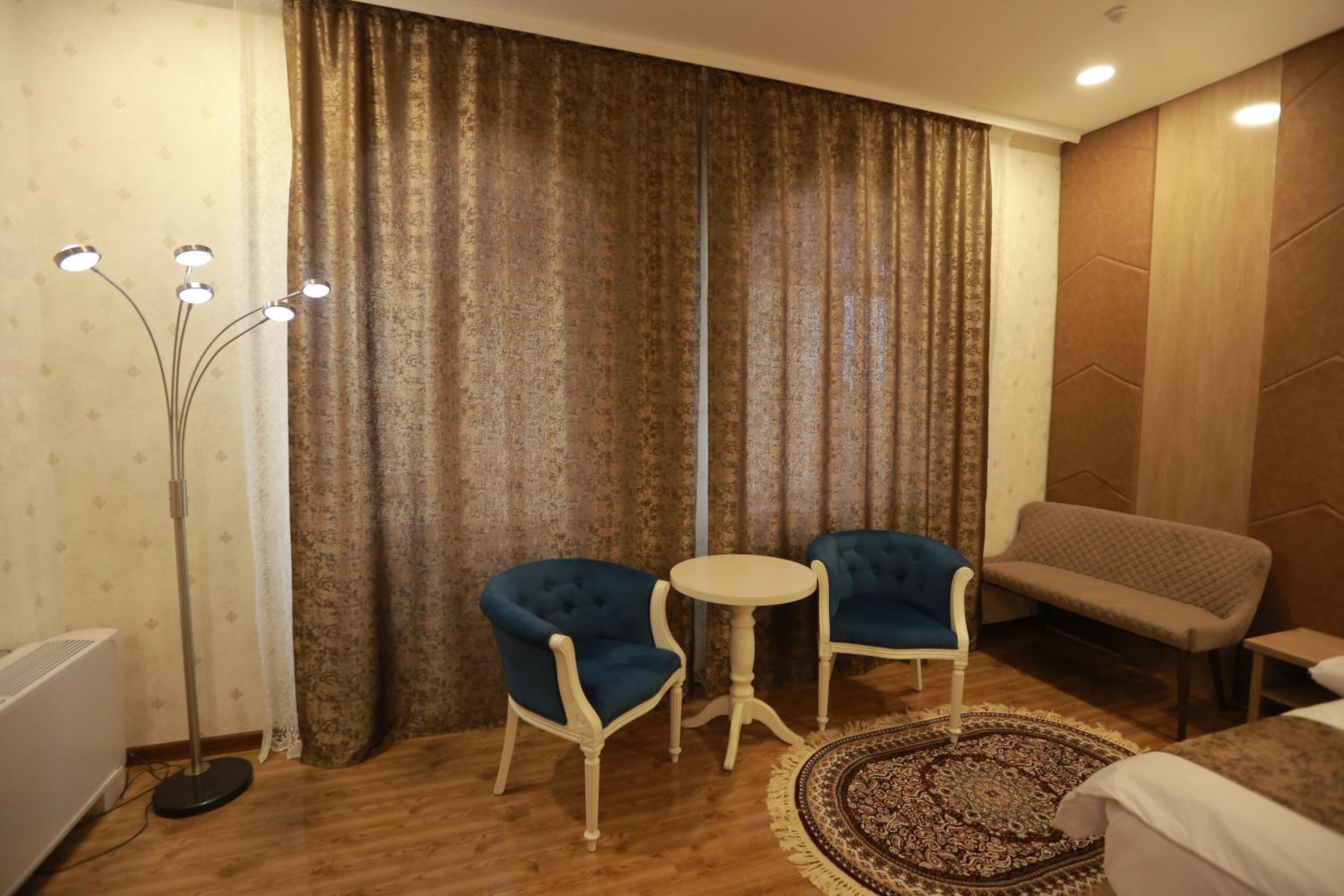 Hotel Uzbekistan offers a range of luxurious amenities including an indoor pool, fitness centre, sauna, and hammam. Guests can also enjoy karaoke nights and relax in the shared lounge or on the terrace.