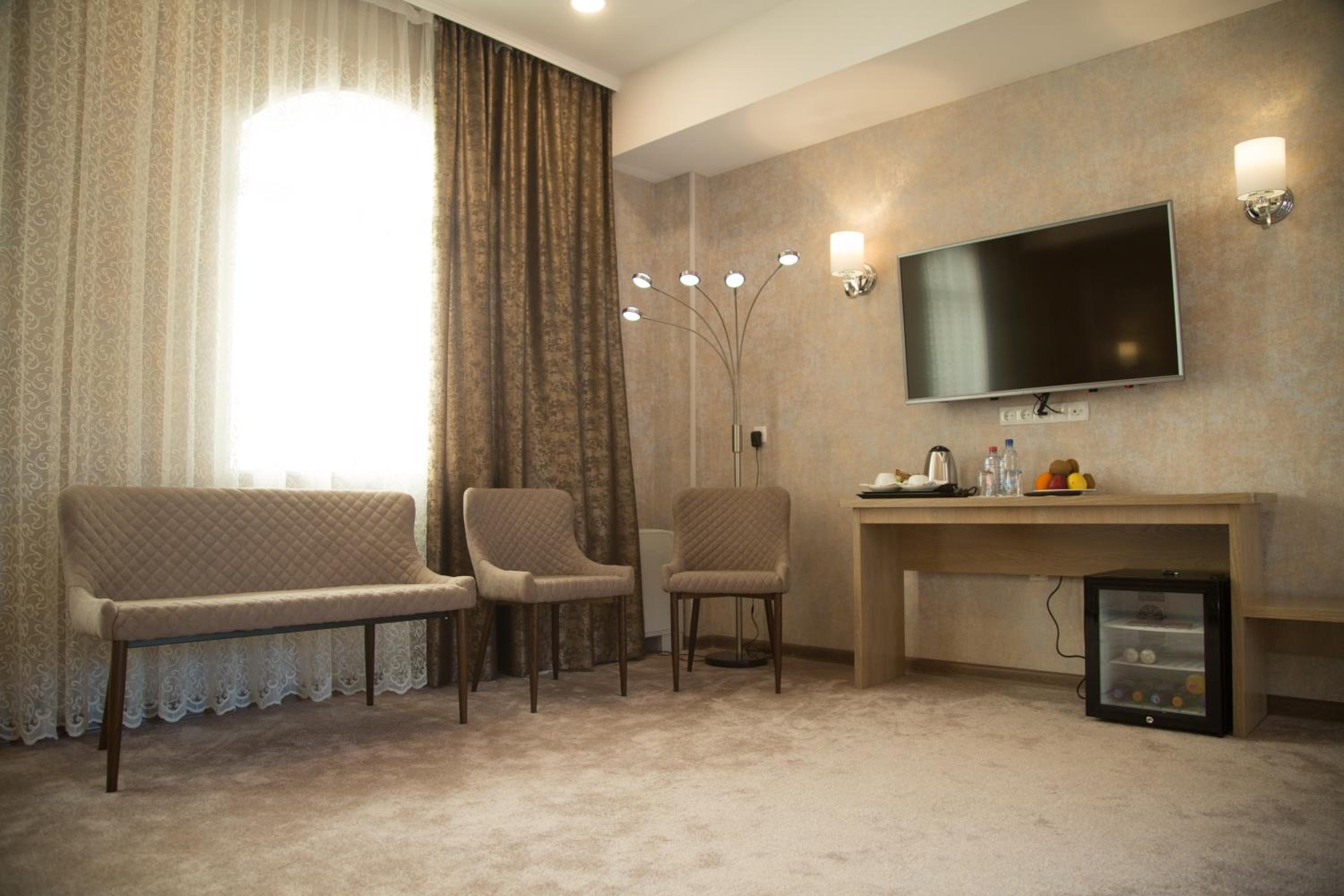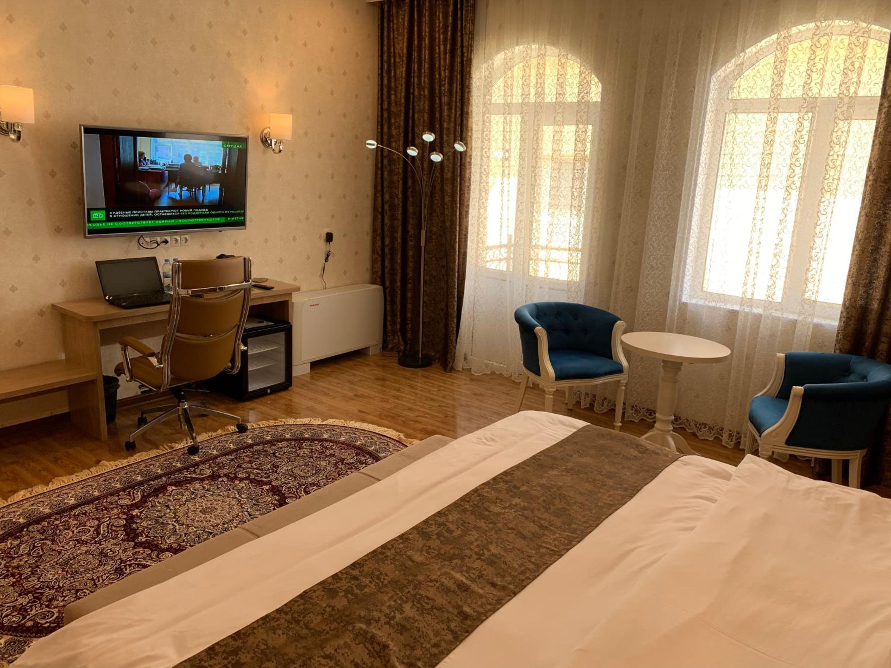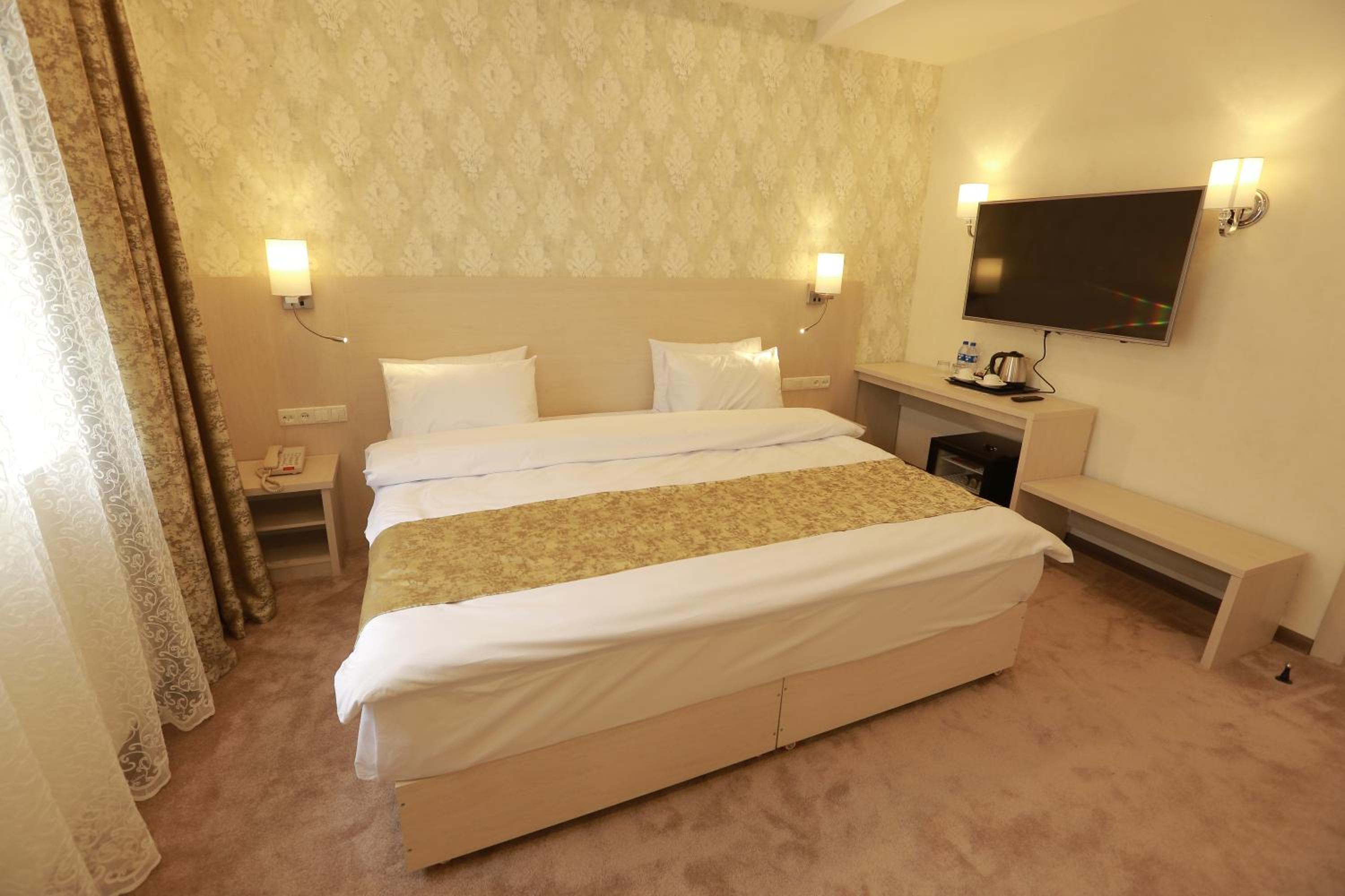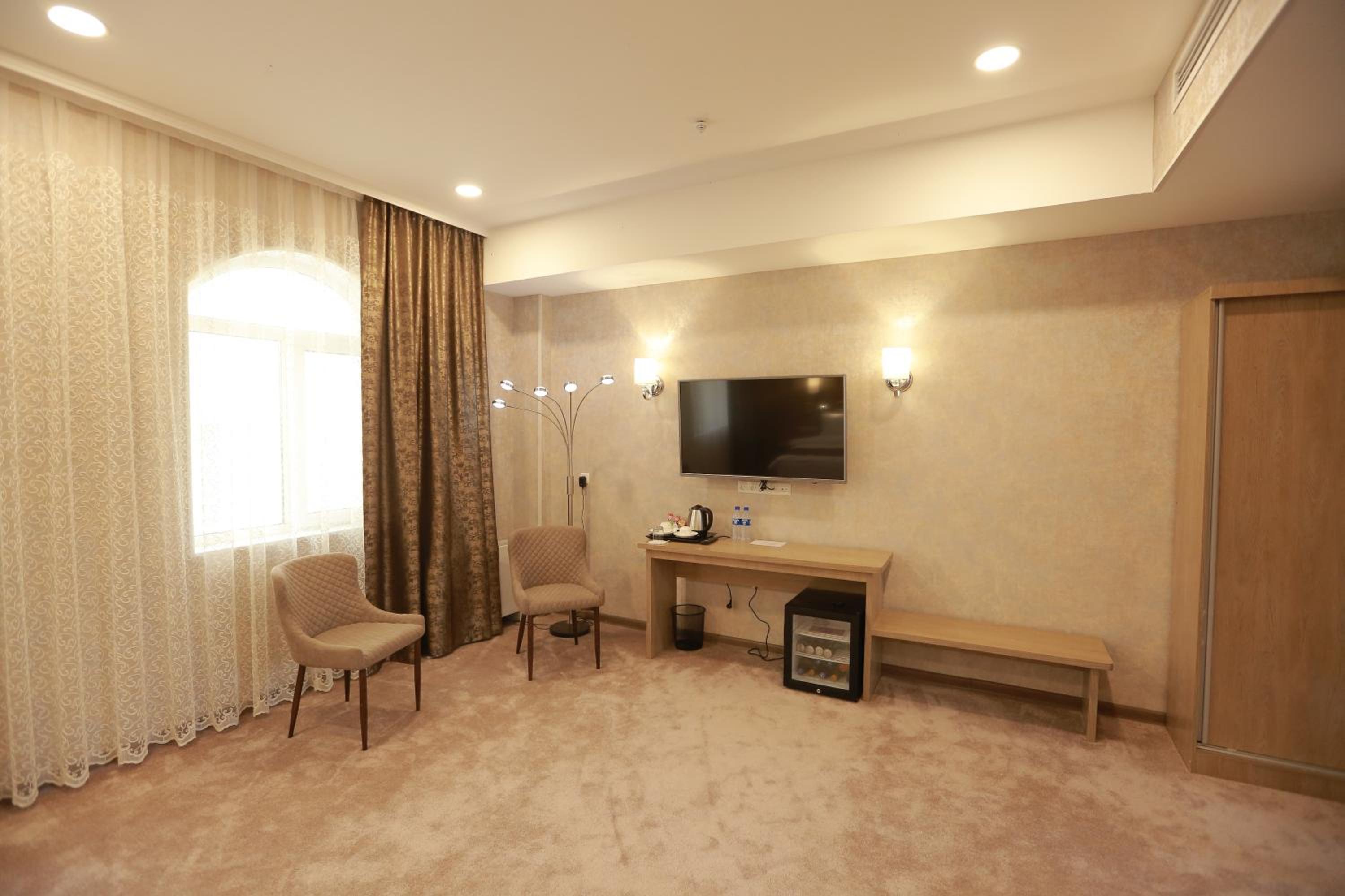Hotel Uzbekistan offers a range of luxurious amenities including an indoor pool, fitness centre, sauna, and hammam. Guests can also enjoy karaoke nights and relax in the shared lounge or on the terrace.