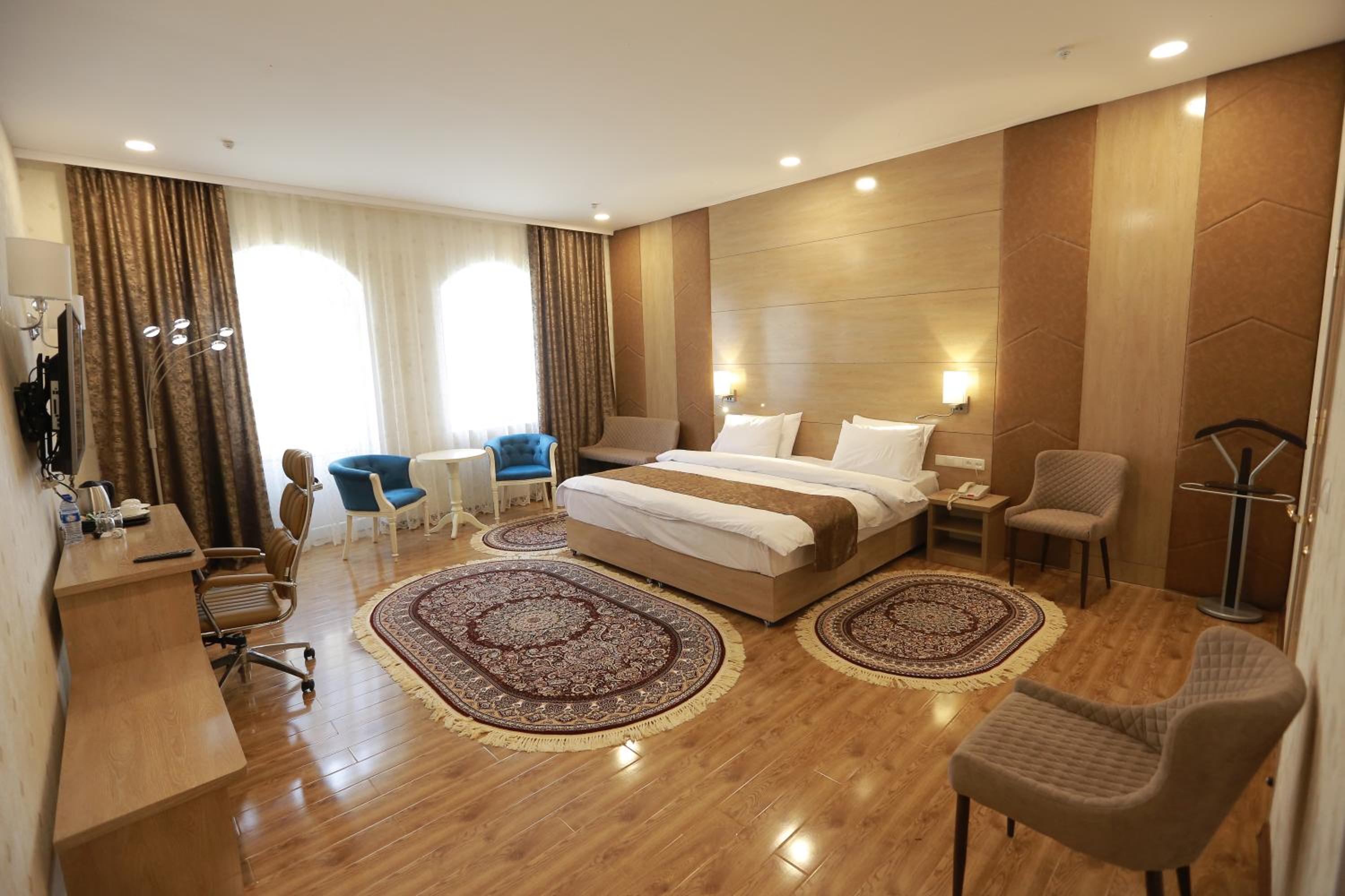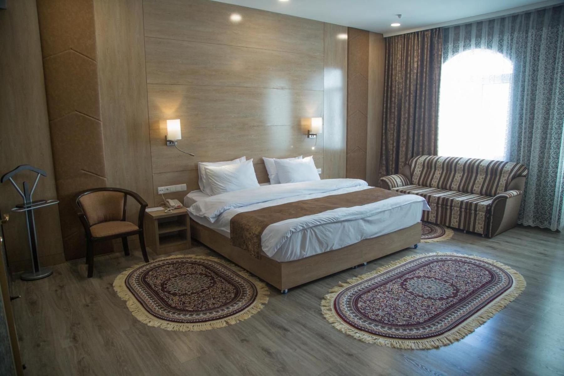 Each guest room at Hotel Uzbekistan is thoughtfully designed for comfort and convenience. With amenities such as a flat-screen TV, air conditioning, and a private bathroom with slippers and a bidet, guests are sure to have a pleasant stay. Some rooms even feature a balcony for a lovely view.