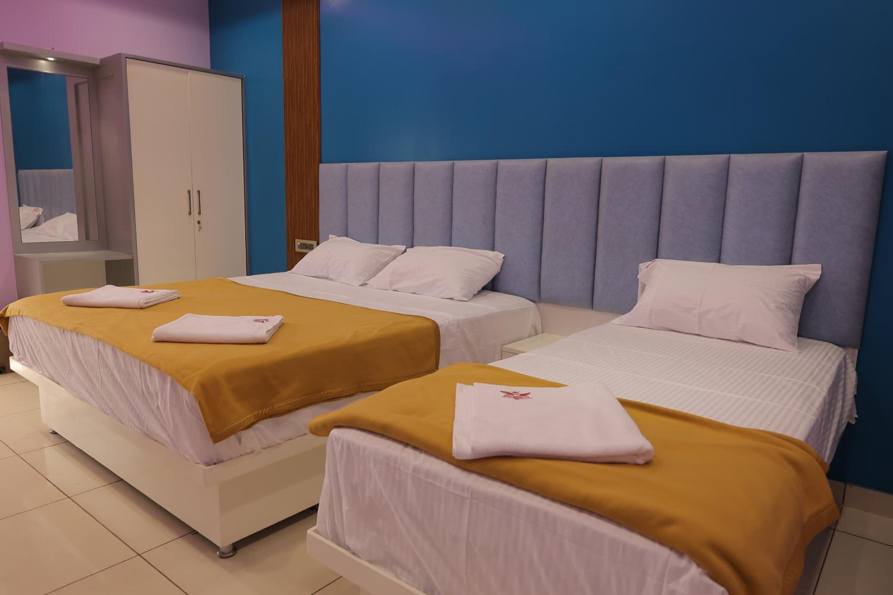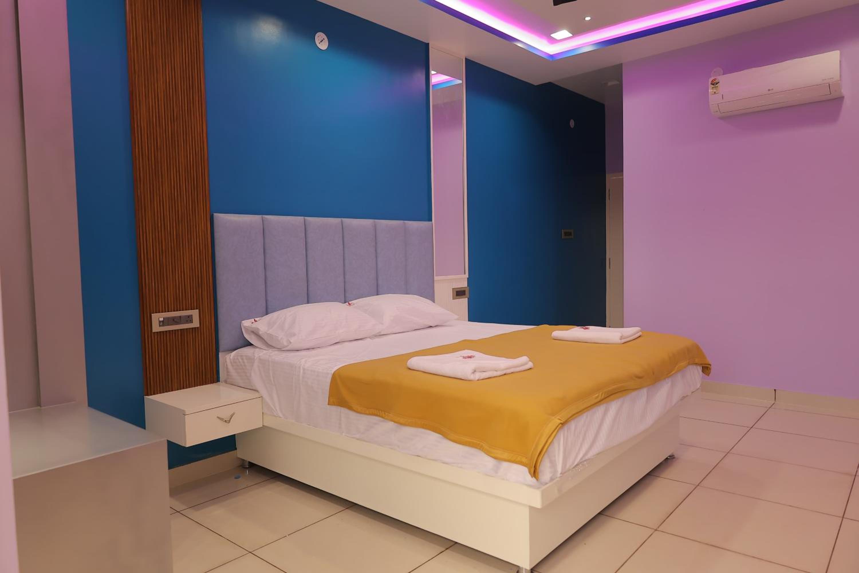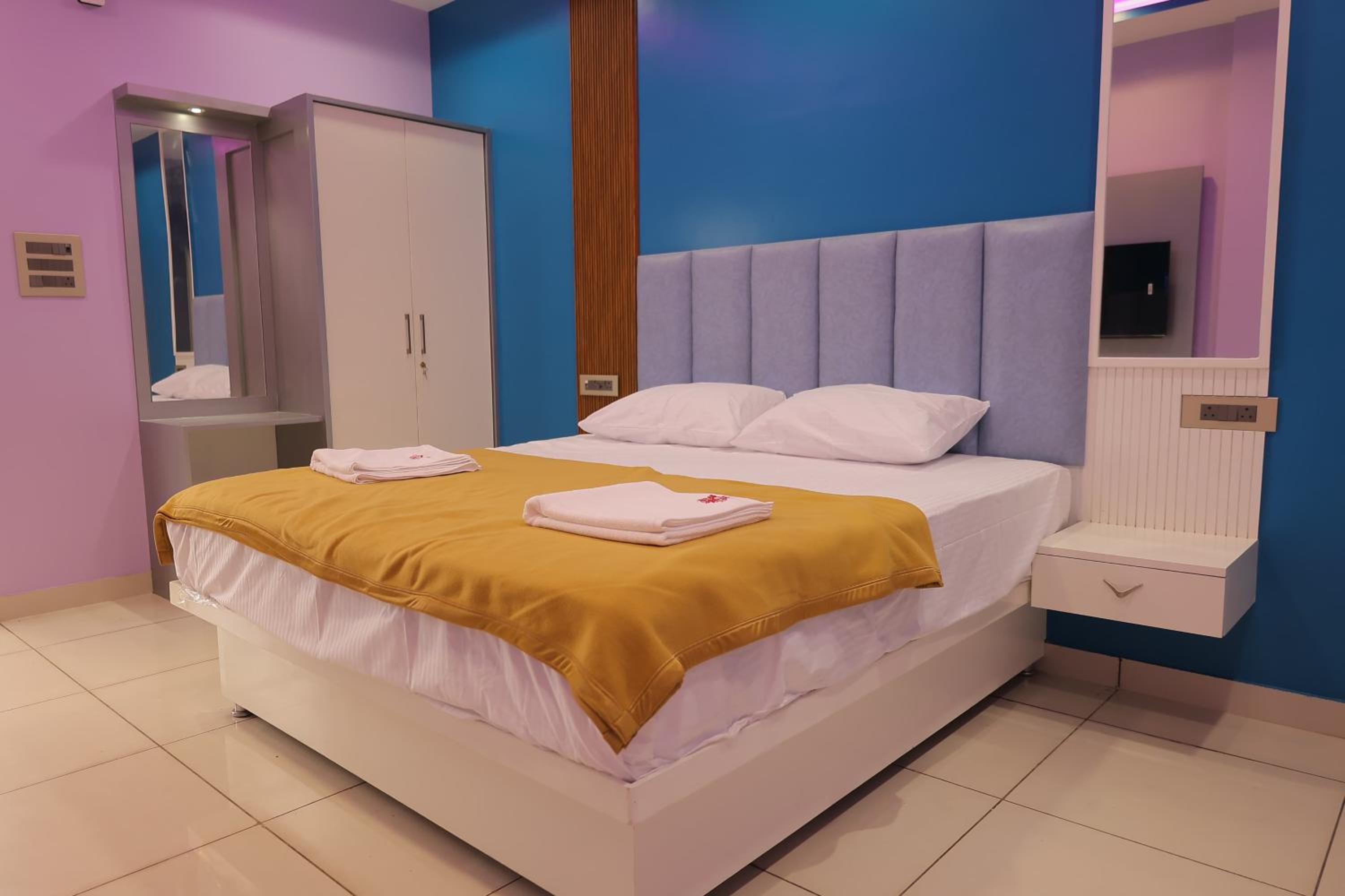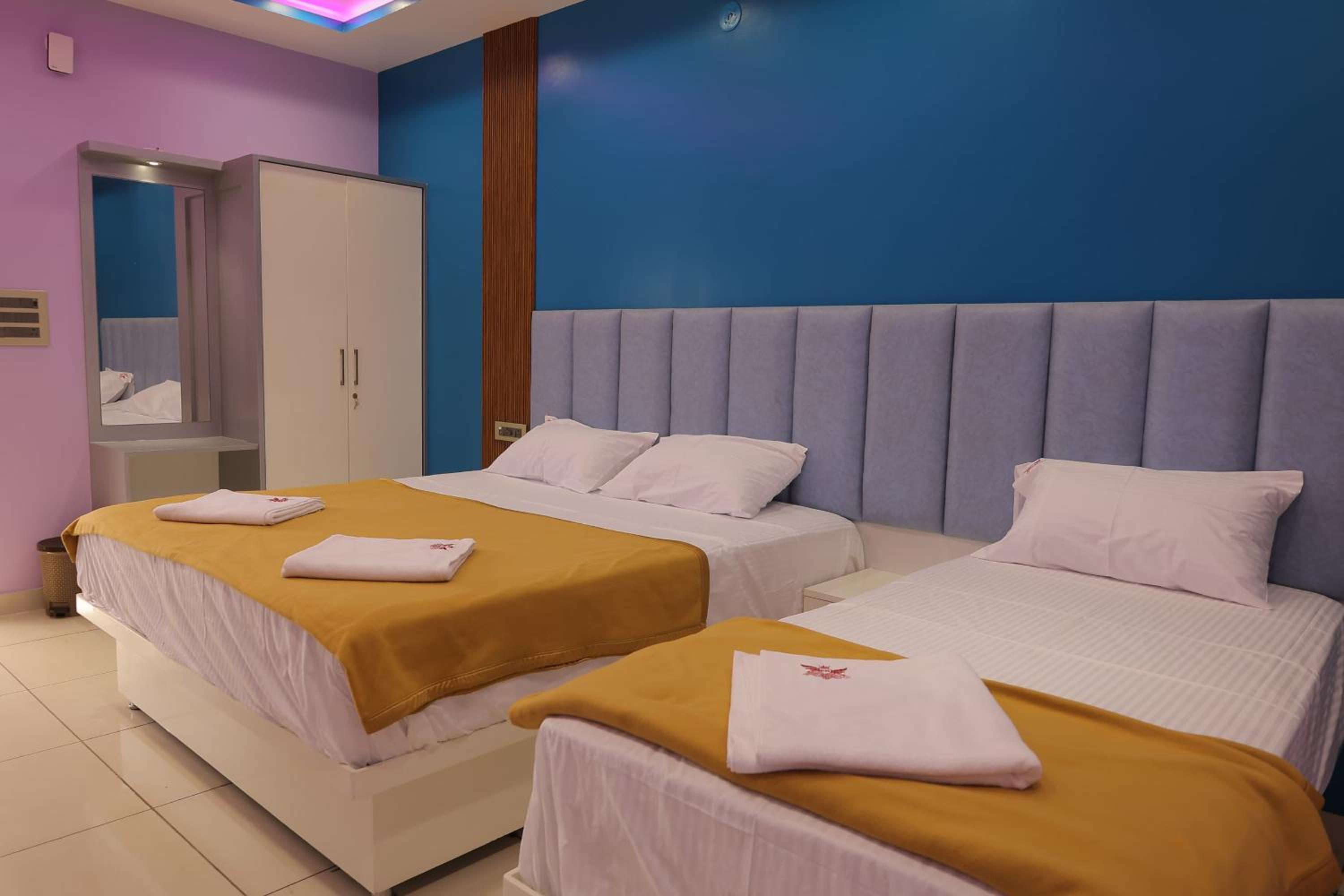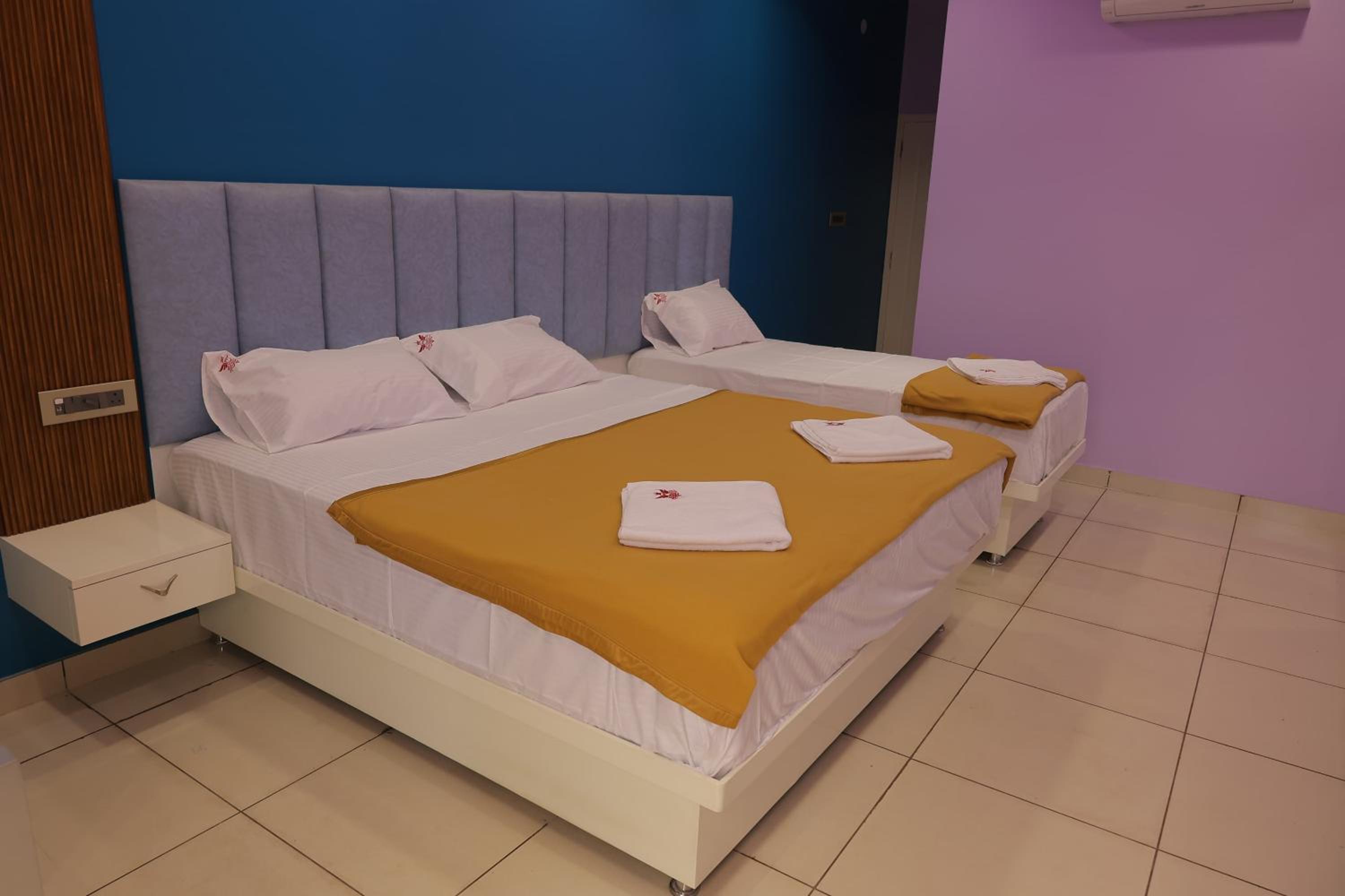 Experience comfort and elegance in our air-conditioned rooms with modern amenities like a flat-screen TV and a safety deposit box.