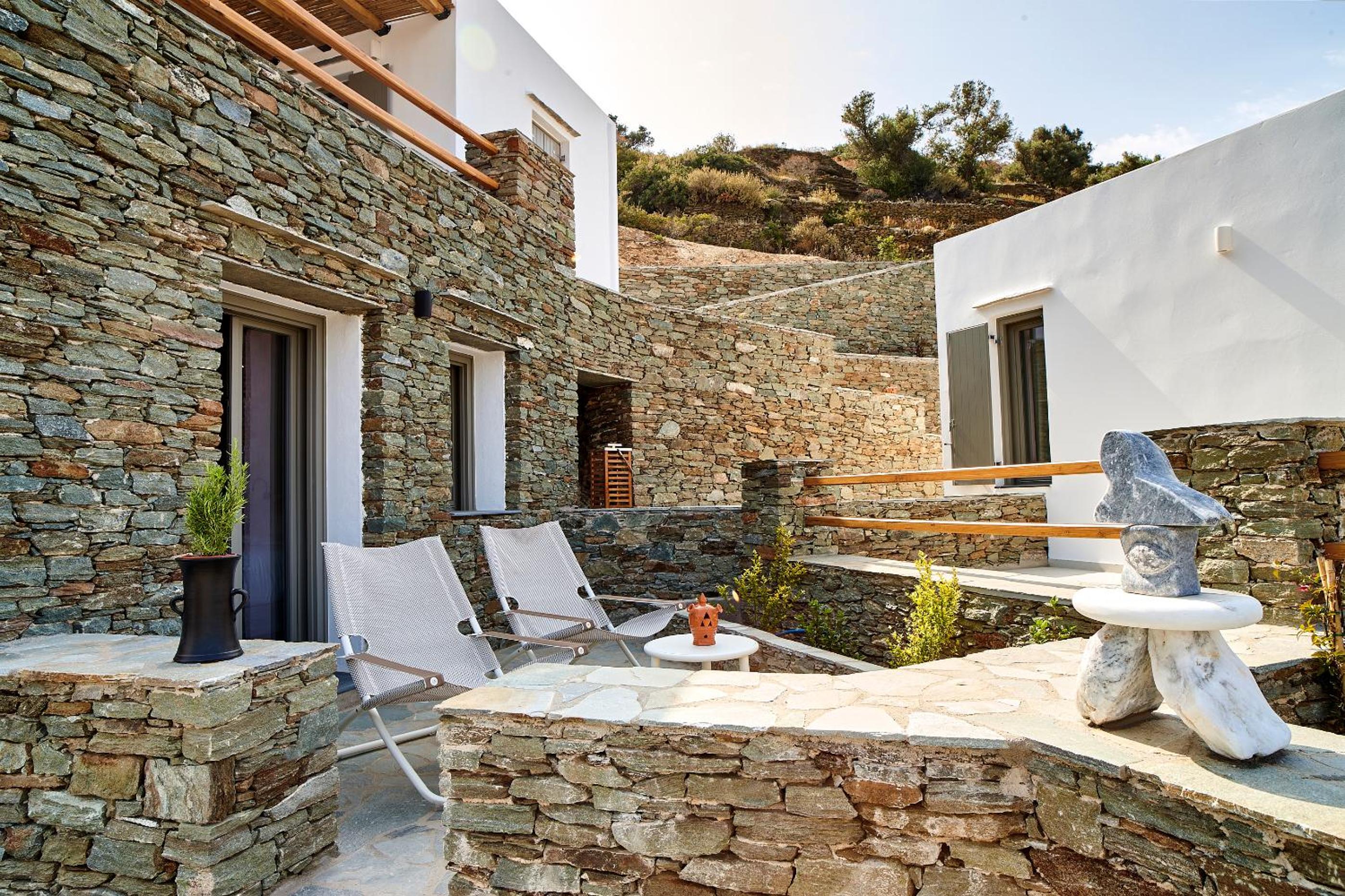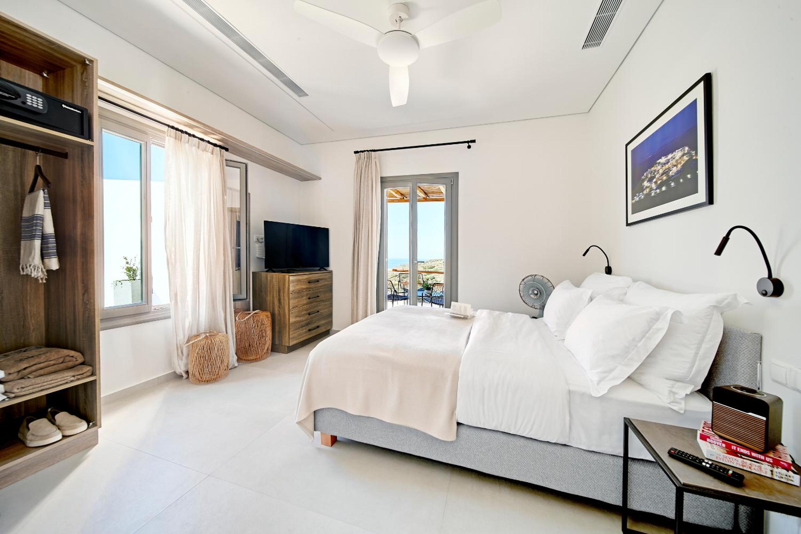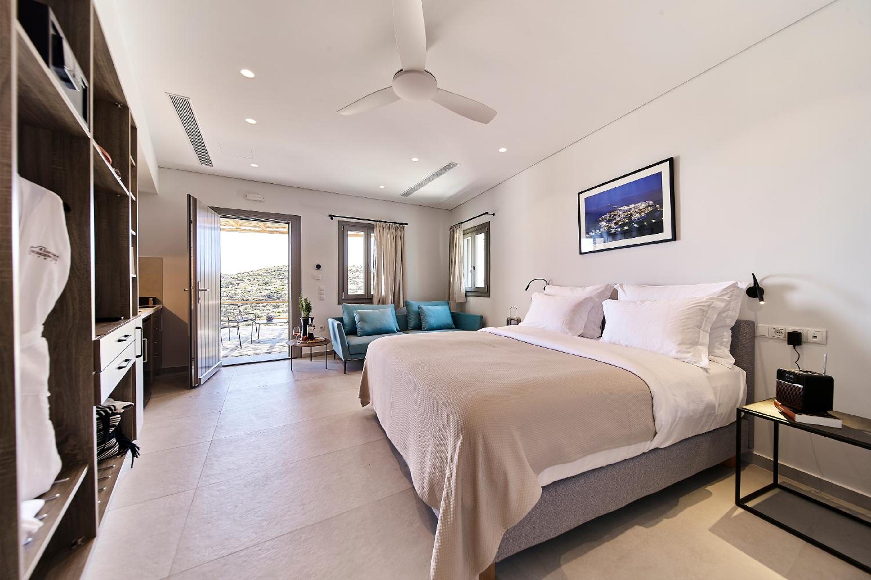 Ein wunderbarer Ort zum entspannen! Eine einmalige Lage mit Blick in der Ferne auf Kastro und das Meer. Es war so ruhig und friedlich. Ein toller infinity Pool mit schönen Liegen und großen Sonnenschirmen. Die Ausstattung der Apartments war sehr gut mit Bügelbrett, Bügeleisen, Fön, Bademäntel, Wasserkocher, Nespresso Maschine und Nespresso Milchaufschäumer. Jeden Tag gab es frische Wasserflaschen im Kühlschrank. Jeden Morgen variierte das Frühstück und wurde mit Liebe zubereitet und zur vereinbarten Zeit in einem Korb gebracht. Die Betten waren sehr bequem. Es gab eine Klimaanlage und einen großen Deckenventilator.