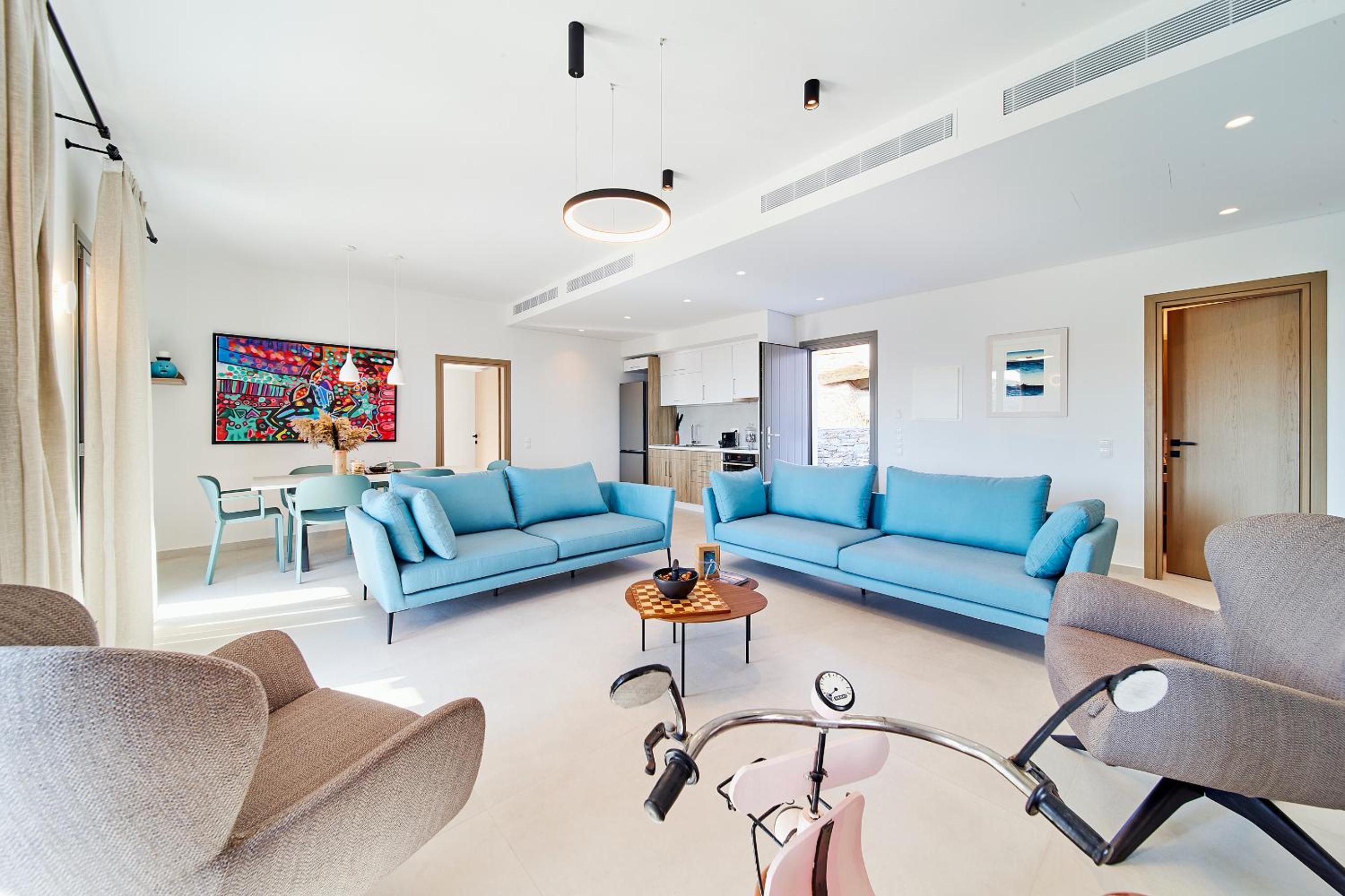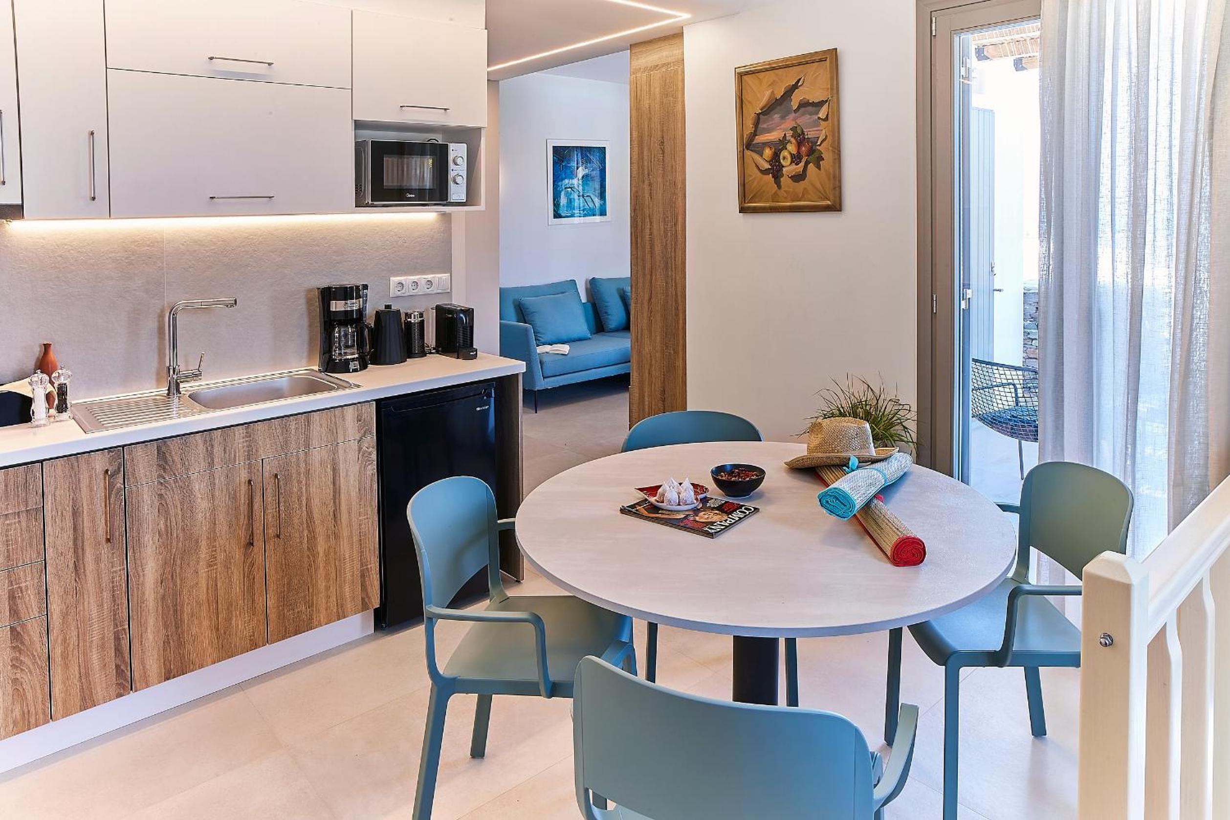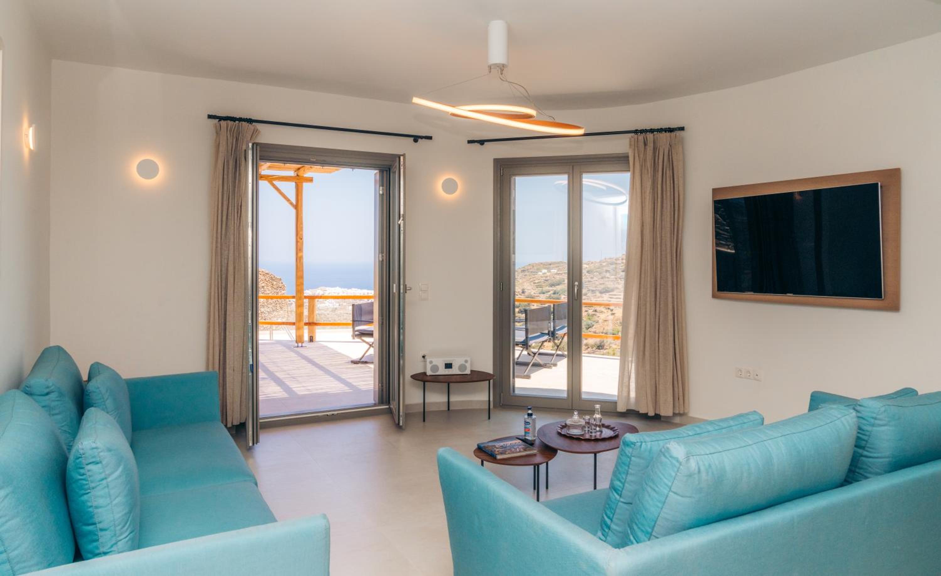 Ein wunderbarer Ort zum entspannen! Eine einmalige Lage mit Blick in der Ferne auf Kastro und das Meer. Es war so ruhig und friedlich. Ein toller infinity Pool mit schönen Liegen und großen Sonnenschirmen. Die Ausstattung der Apartments war sehr gut mit Bügelbrett, Bügeleisen, Fön, Bademäntel, Wasserkocher, Nespresso Maschine und Nespresso Milchaufschäumer. Jeden Tag gab es frische Wasserflaschen im Kühlschrank. Jeden Morgen variierte das Frühstück und wurde mit Liebe zubereitet und zur vereinbarten Zeit in einem Korb gebracht. Die Betten waren sehr bequem. Es gab eine Klimaanlage und einen großen Deckenventilator.