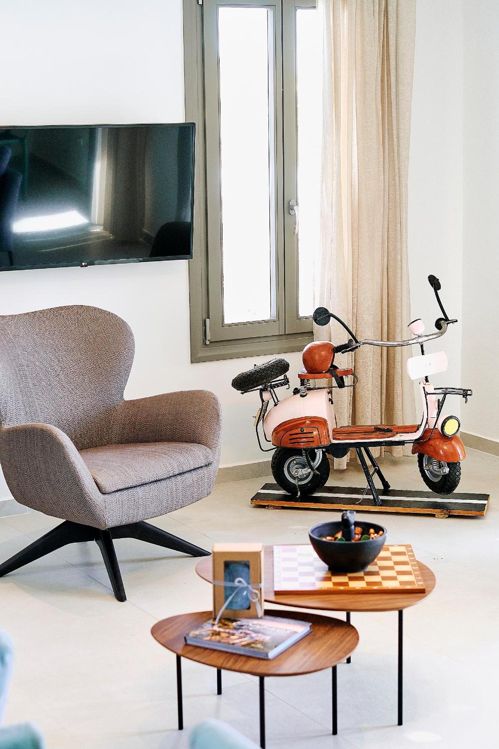 La vue magique de l’hôtel, la tranquillité, la piscine à débordement, la décoration, très bonne literie, nous avons eu l’impression d’être seuls dans l’hôtel en plein mois d’août. Le lieu est vraiment très intimiste. À 5min en scooter de Appolonia. C’était magique.