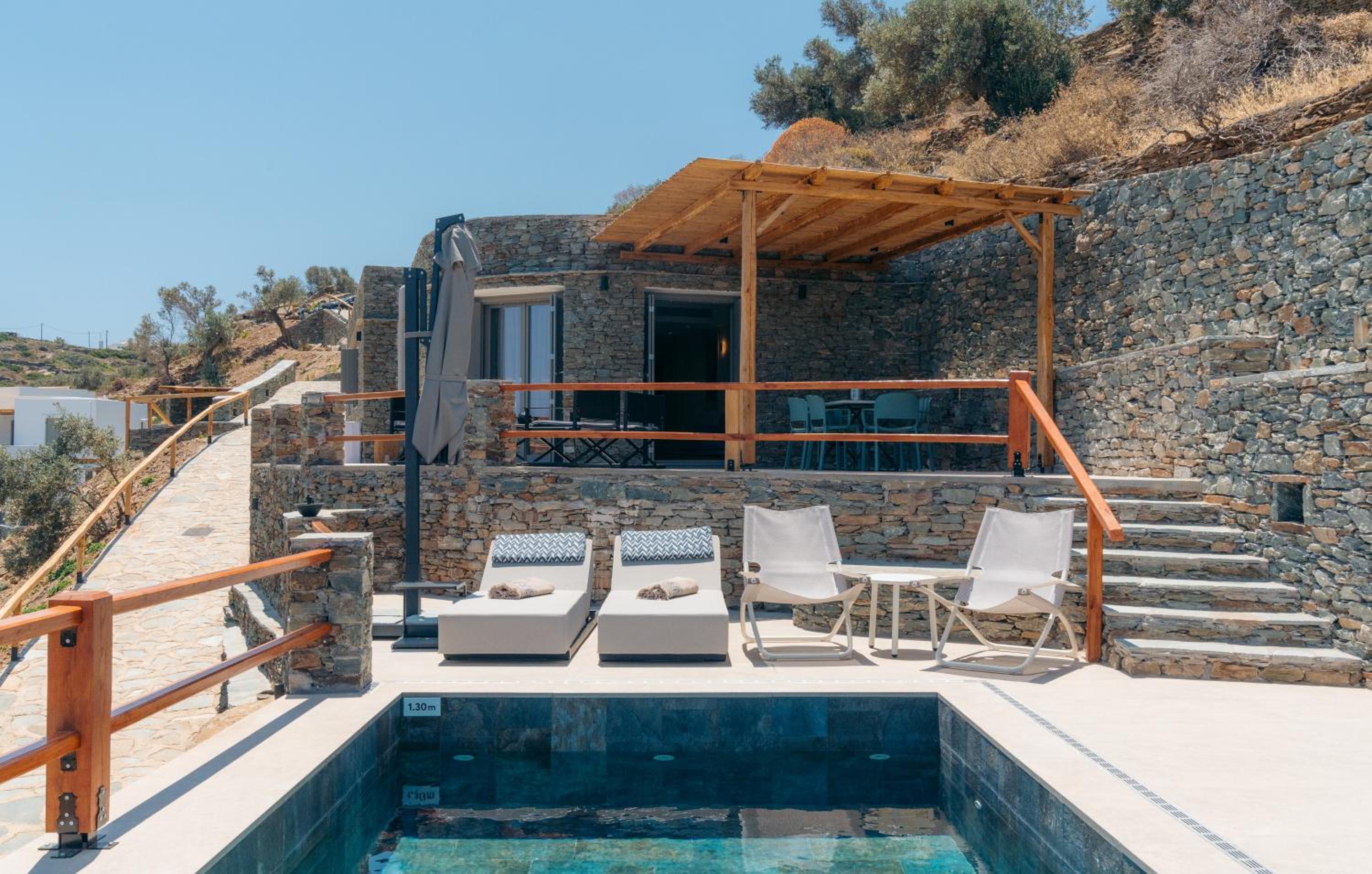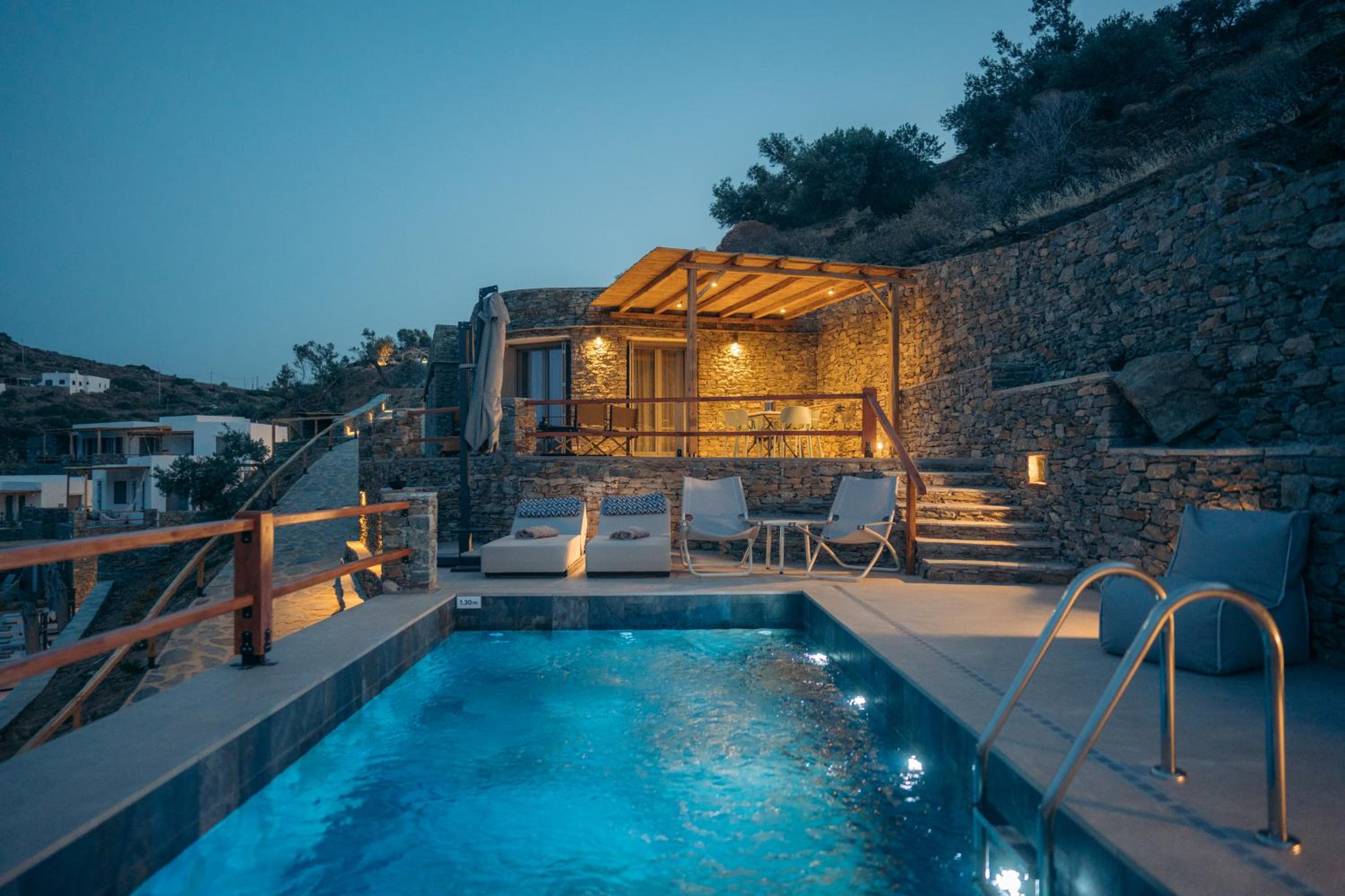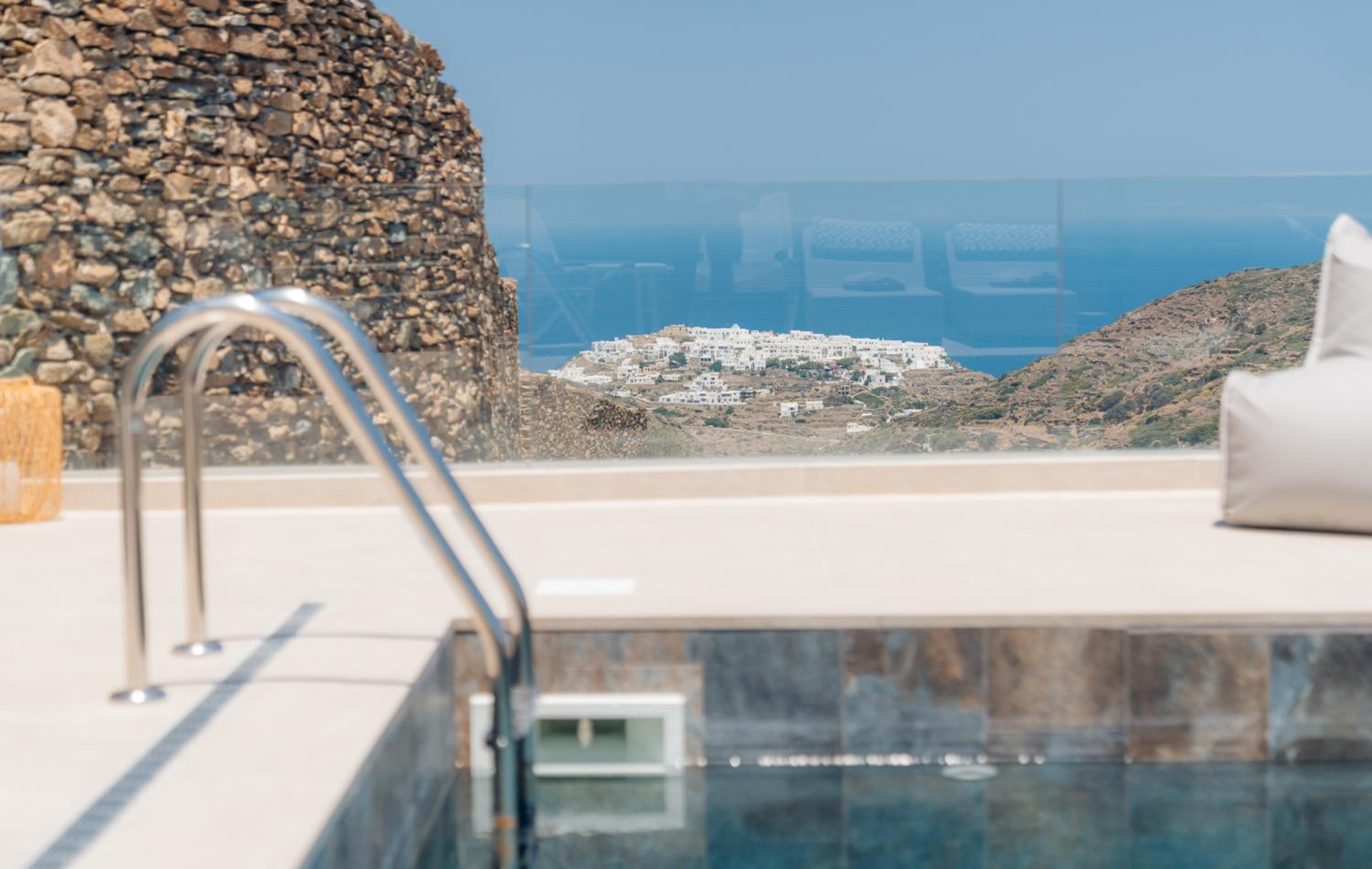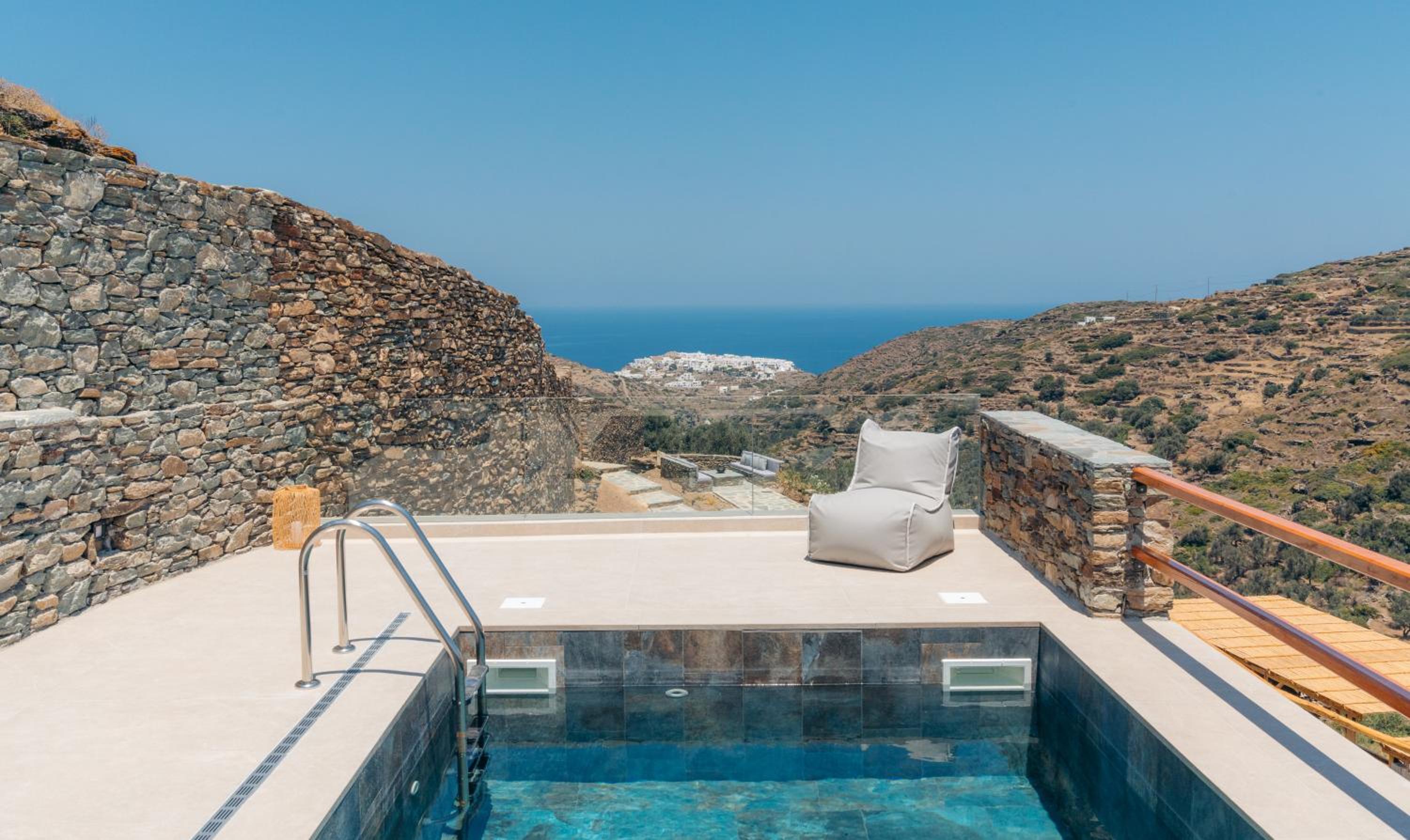 - the location is super. We have visited sifnos 6 times and the location is amazing if you use a car. Apollonia, artemonas , faros, chrusopigi, platus gualos is less than 9 minutes drive which is ideal. -the view of the pool area is amazing and the staff were very kind.