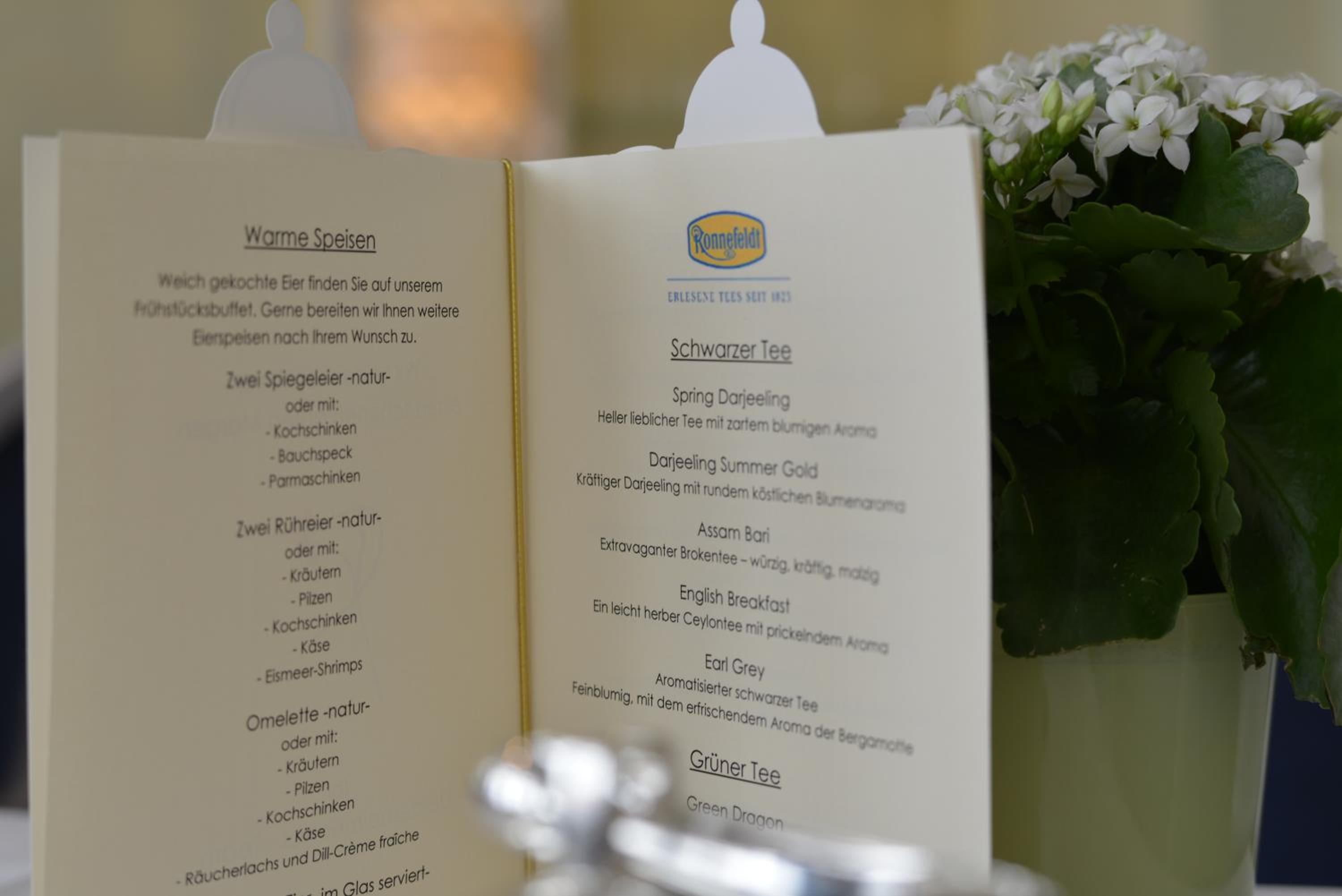 Das Brot, die Brötchen und die anderen Backwaren stammen von einem Traditionsbäcker aus Neustadt. Die Qualität des Buffetangebots ist einfach außergewöhnlich. Die Beschwerden einiger Gäste über das Preis-Leistungs-Verhältnis beim Frühstück können wir nicht nachvollziehen. In welchem Fünfsternehotel werden auf Bestellung diverse Eierspeisen, darunter Poached Eggs auf geröstetem Bauernbrot mit Avocados, direkt am Tisch serviert? Das ist Sterneküche! Dazu gibt es Winzersekt von Menger-Krug in Champagner-Qualität.