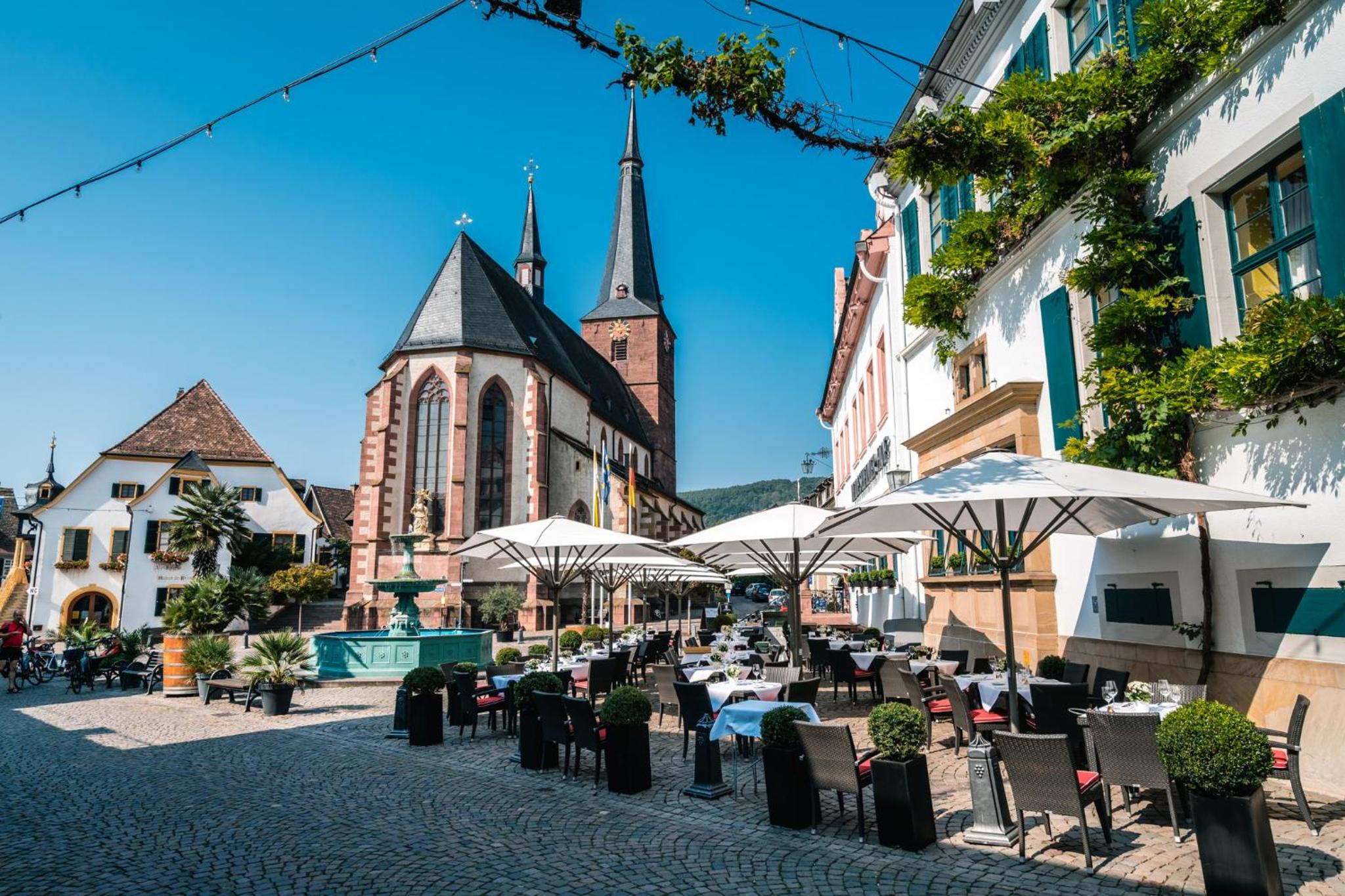 After a day of exploring, relax in the hotel's historic cellar or on the terrace overlooking the bustling marketplace. With thoughtful amenities like bathrobes and hairdryers in each bathroom, the Deidesheimer Hof ensures a comfortable stay. Book now for an unforgettable experience!
