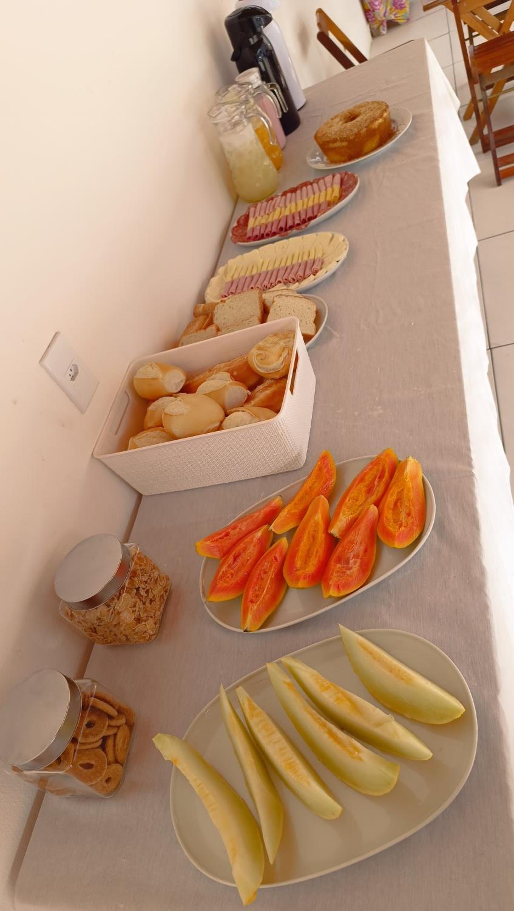 O café da manhã era ok, poderia apenas acrescentar ovo, além disso, o problema foi que nem sempre tinha alguém acompanhando para repor as coisas, inclusive pratos, então por vezes tínhamos que nos servir no pires das xícaras.