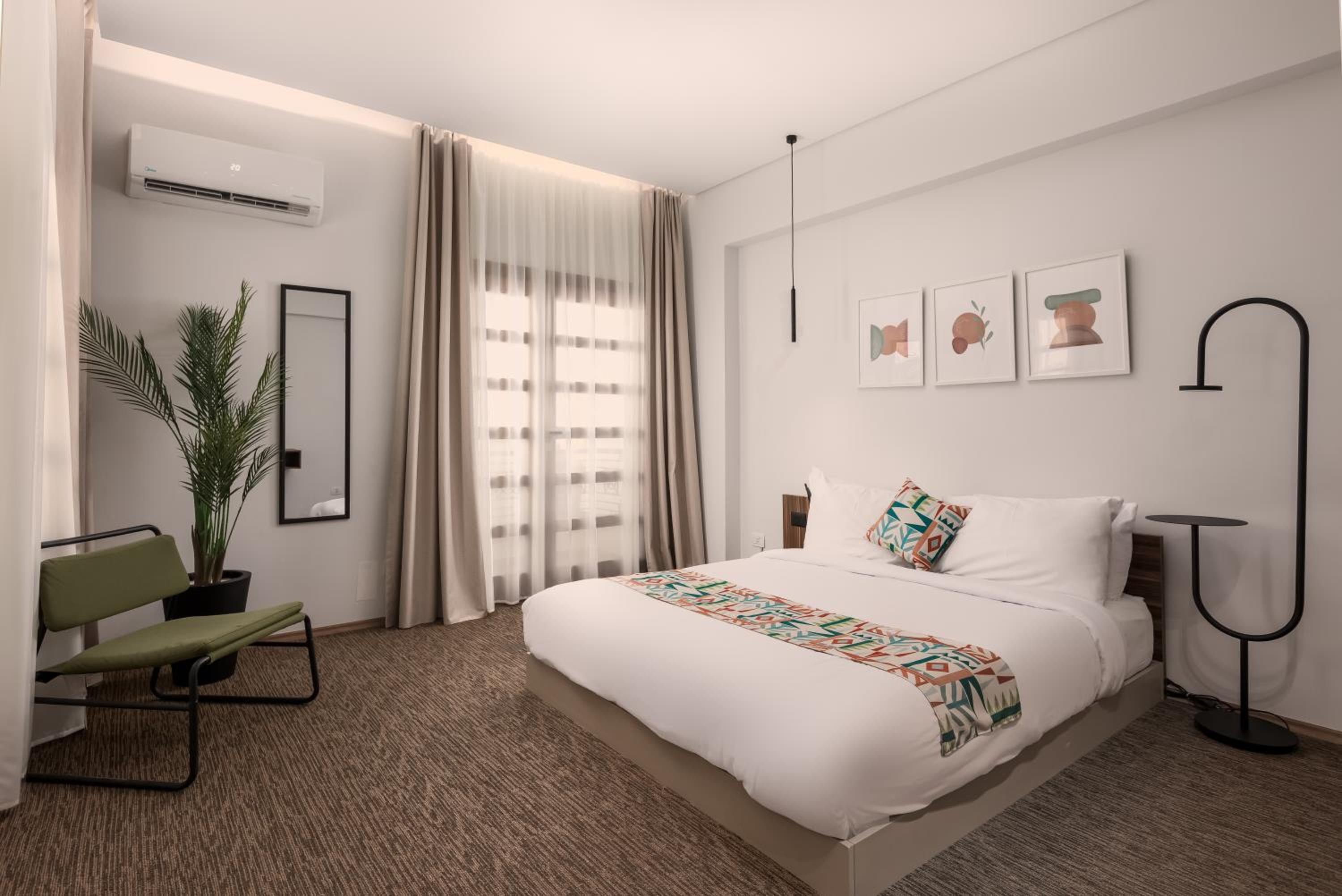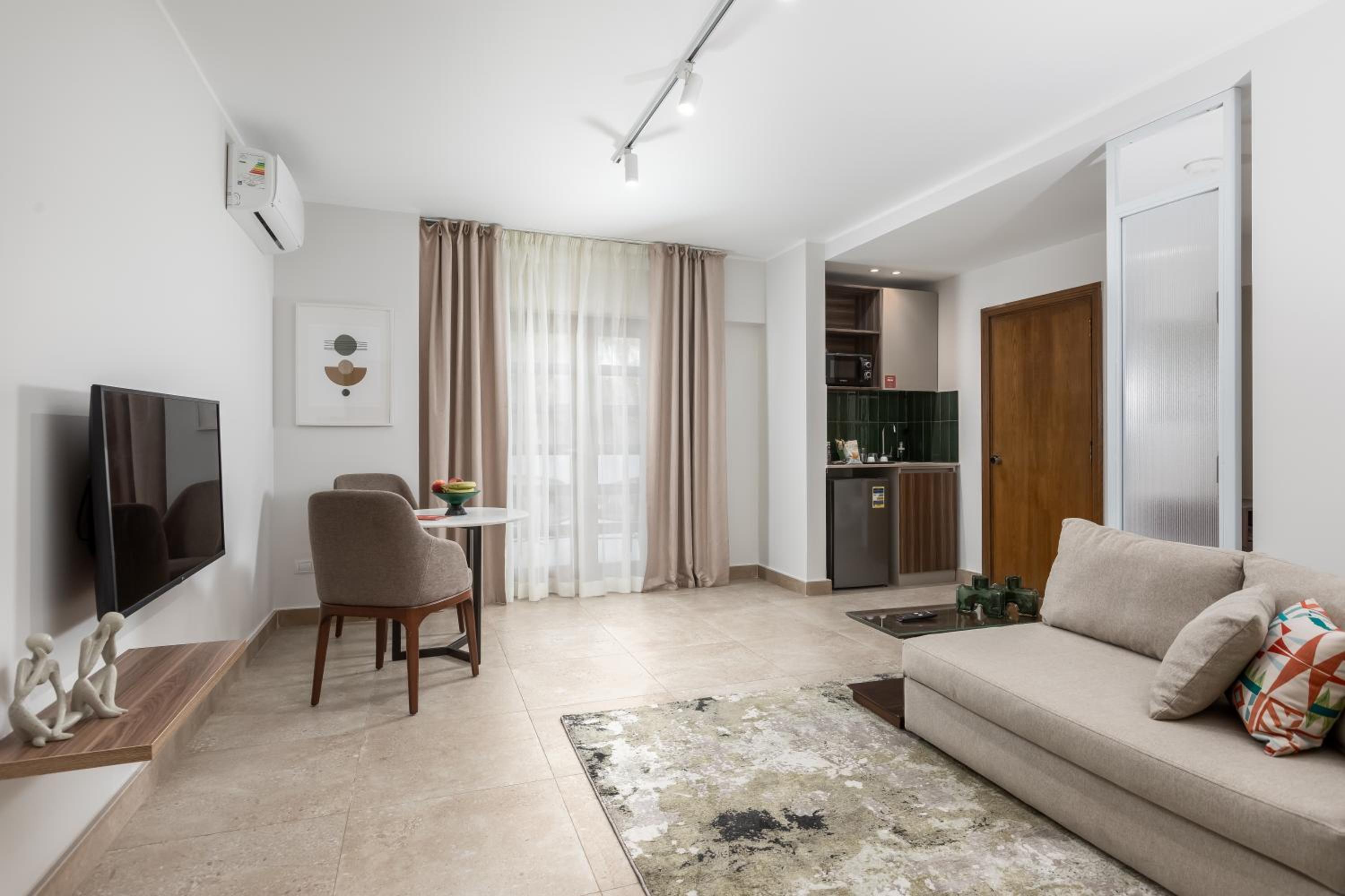 Modern Amenities: Enjoy air conditioning, flat-screen TV, and free WiFi in all units. Relax in the walk-in shower or on the balcony with city views.