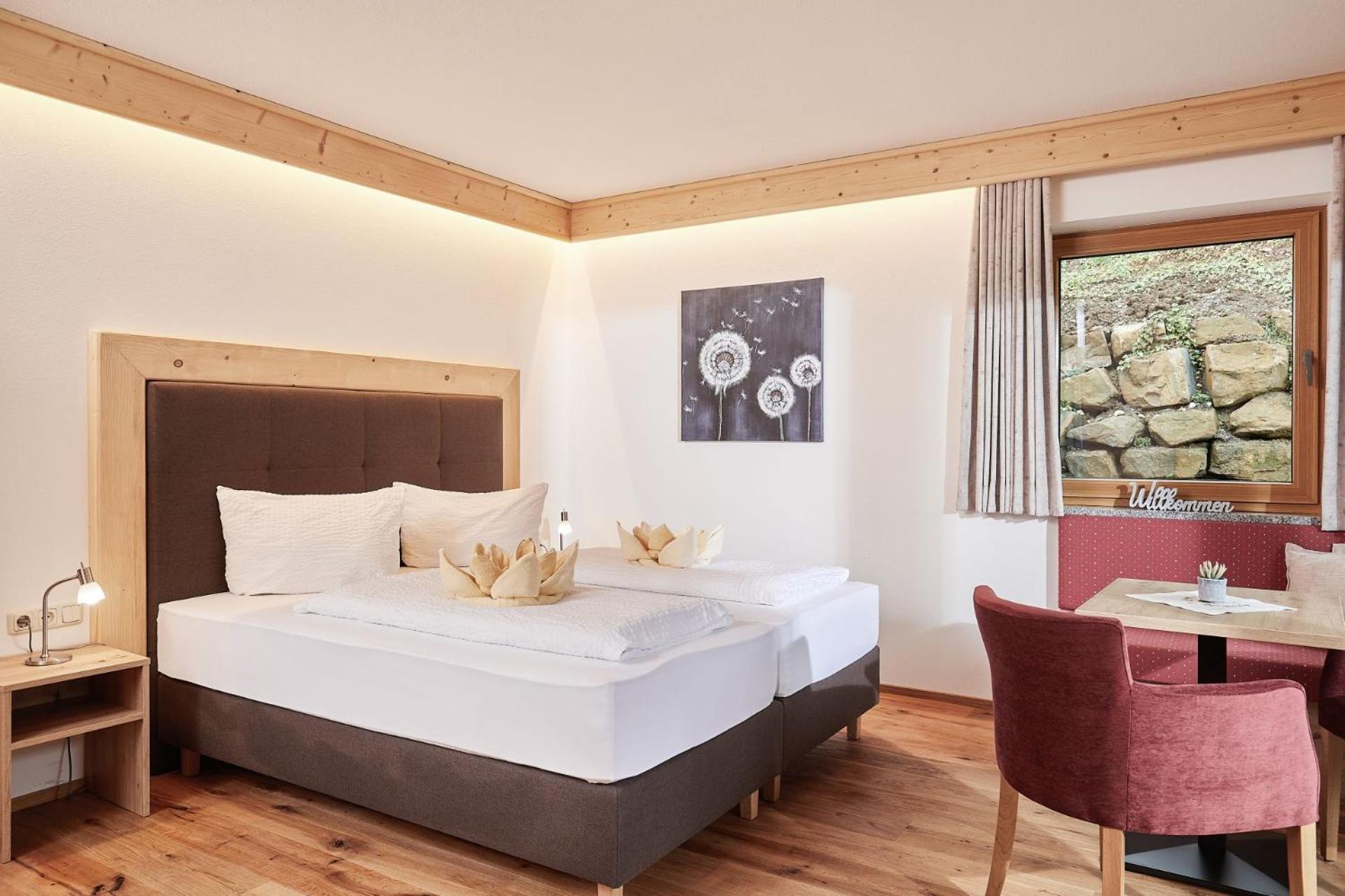 Geräumige, lichtdurchflutete Zimmer, alles scheint frisch renoviert, die Betten waren sehr bequem und das Personal war super lieb. Auf Anfrage wurde mir ein Wasserkocher zur Verfügung gestellt. Das Frühstück war reichhaltig und lecker. Das Bergerbad ist wirklich einen Besuch wert. Es gibt eine tolle Saunalandschaft mit Pool und Whirlpool. Auf dem Gelände rund ums Bergerbad finden sich überall wunderschöne Holzskulpturen.