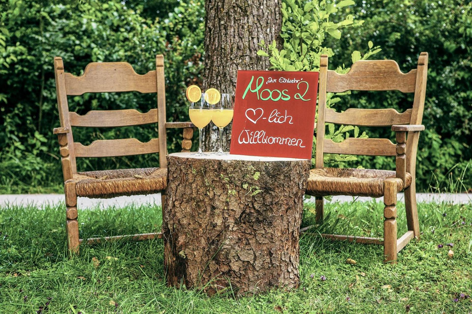 den Wald. Leider befindet sich der Außenpool nahe der Rezeption.