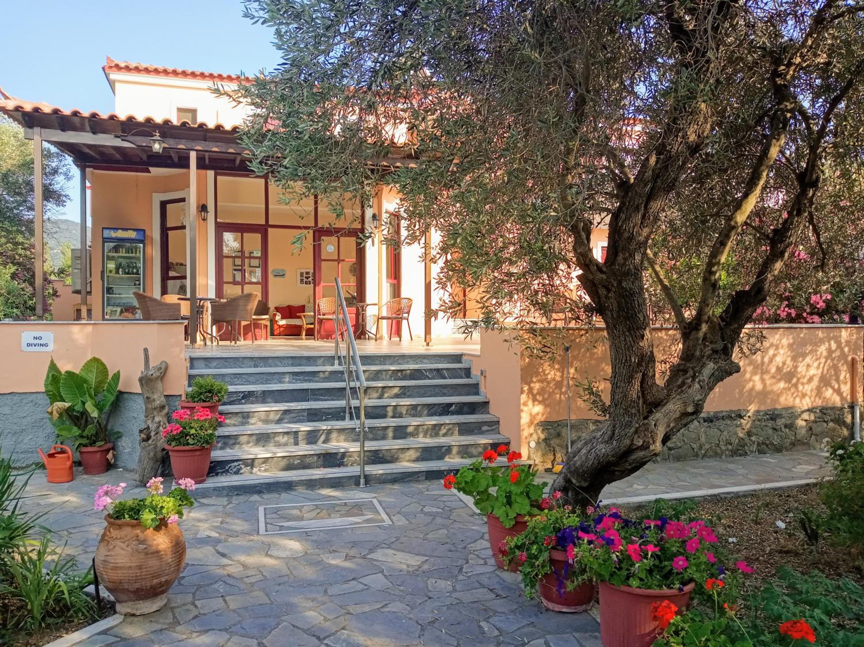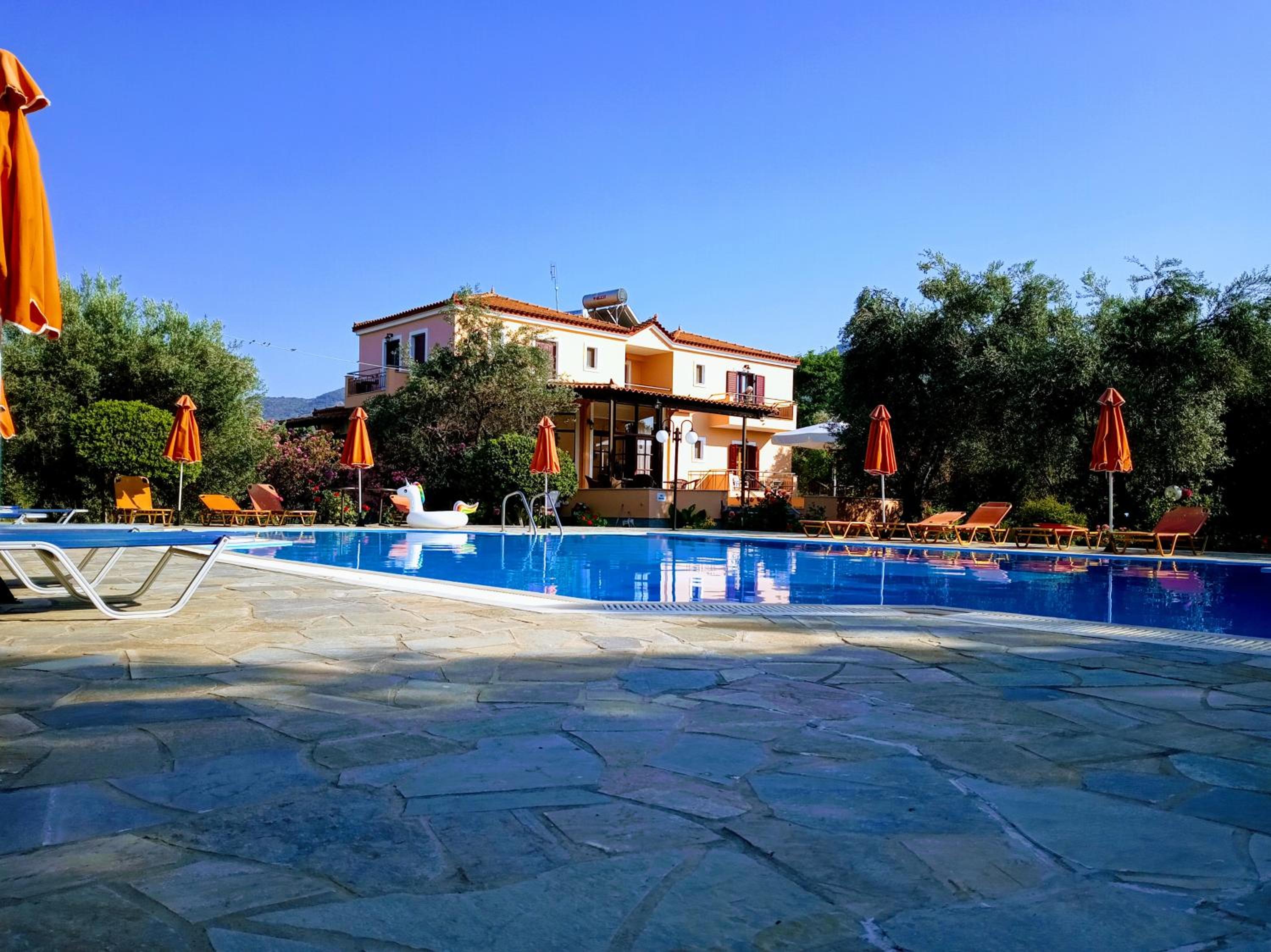 Super skønt lille og roligt hotel lige på kanten til byen i landlige omgivelser. Skøn blomstrende have, oliventræer og en rigtig dejlig ren pool. Pænt og rent overalt og søde ejere.