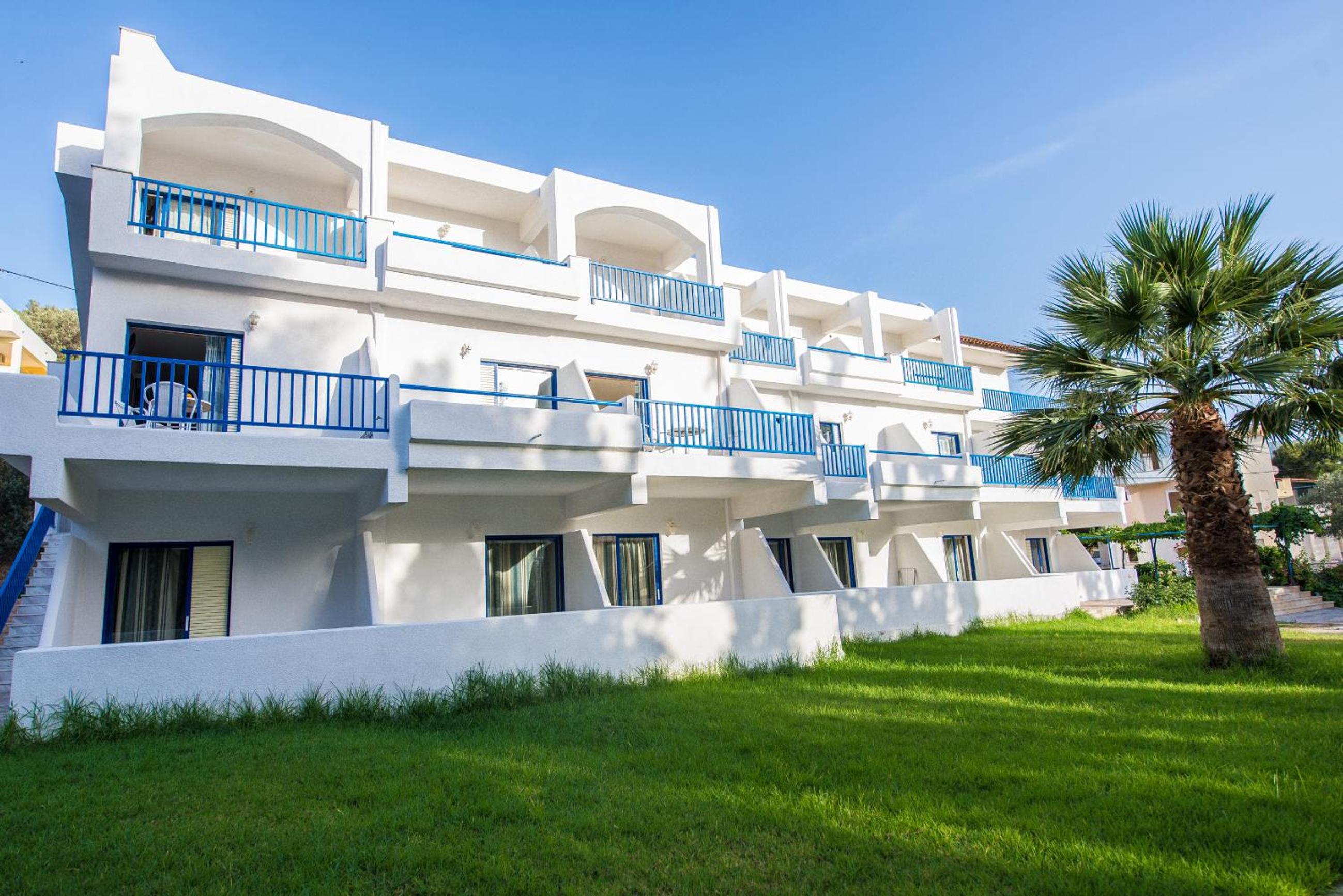 Convenient Amenities: Each studio features a kitchenette, LCD TV, and a private bathroom, ensuring a comfortable stay. Relax on the sun terrace with sun loungers, umbrellas, and a children's pool.