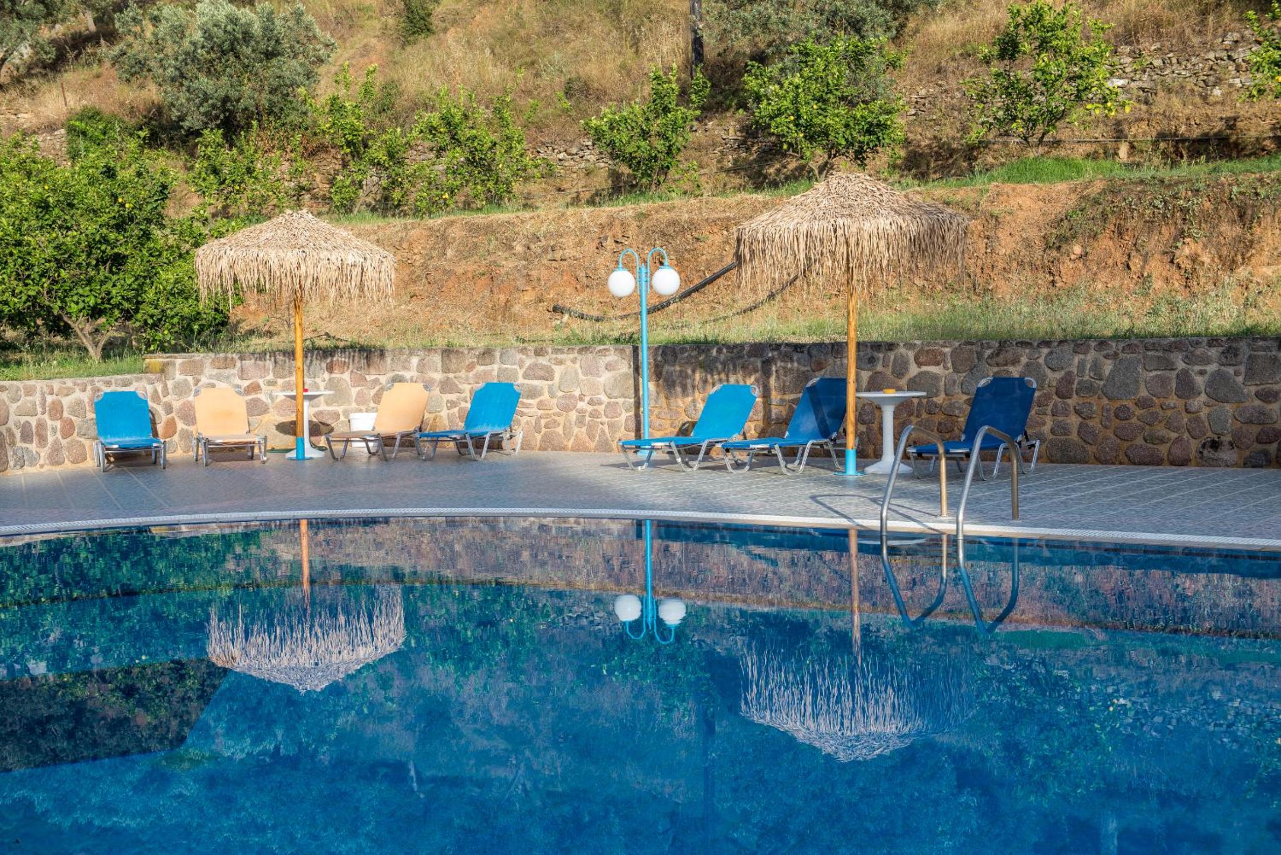 Ωραία ήσυχη τοποθεσία,καθαρός προσεγμένος χώρος, ωραία μεγάλη πισίνα, πολύ ευγενικός οικοδεσπότης