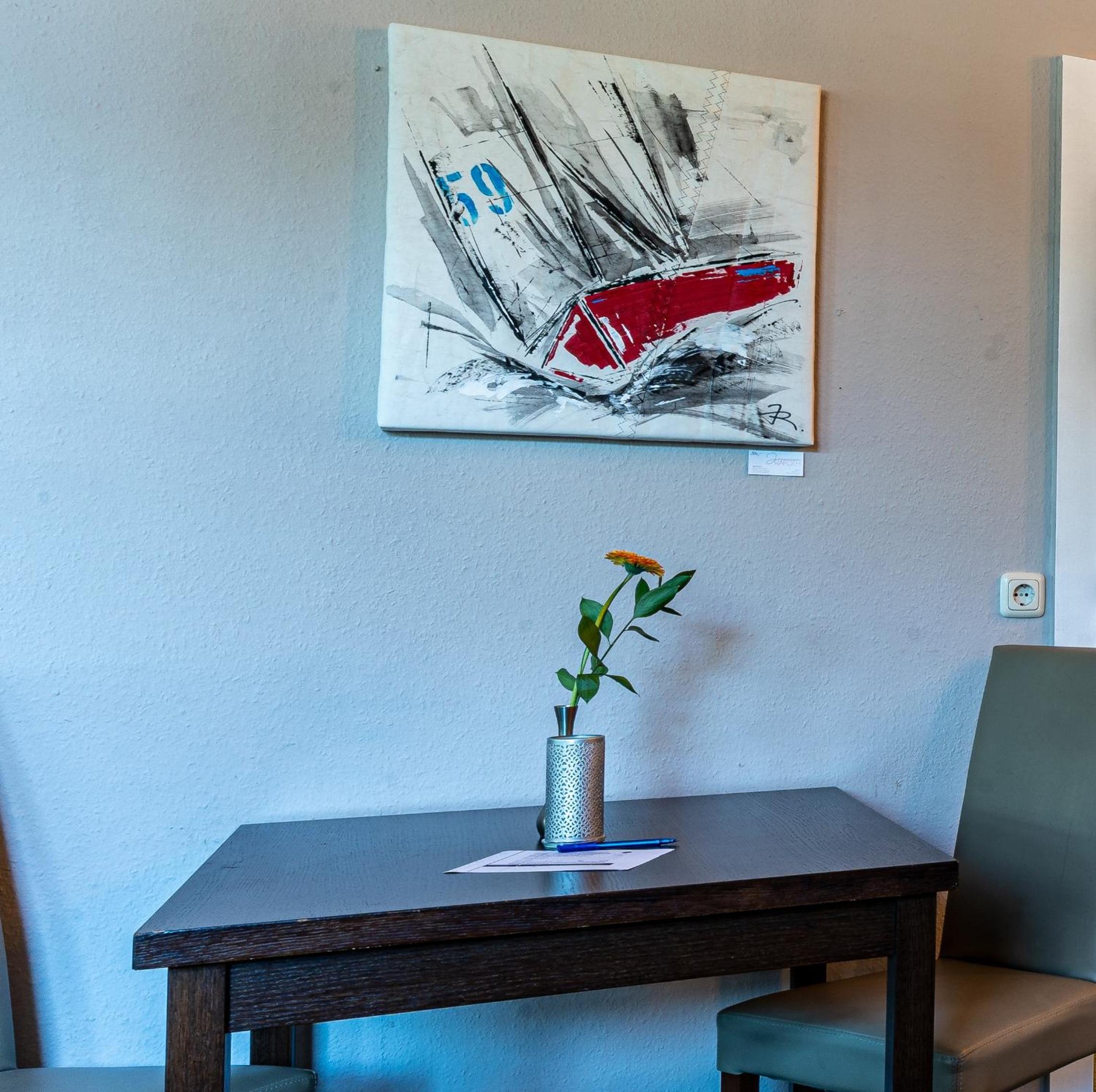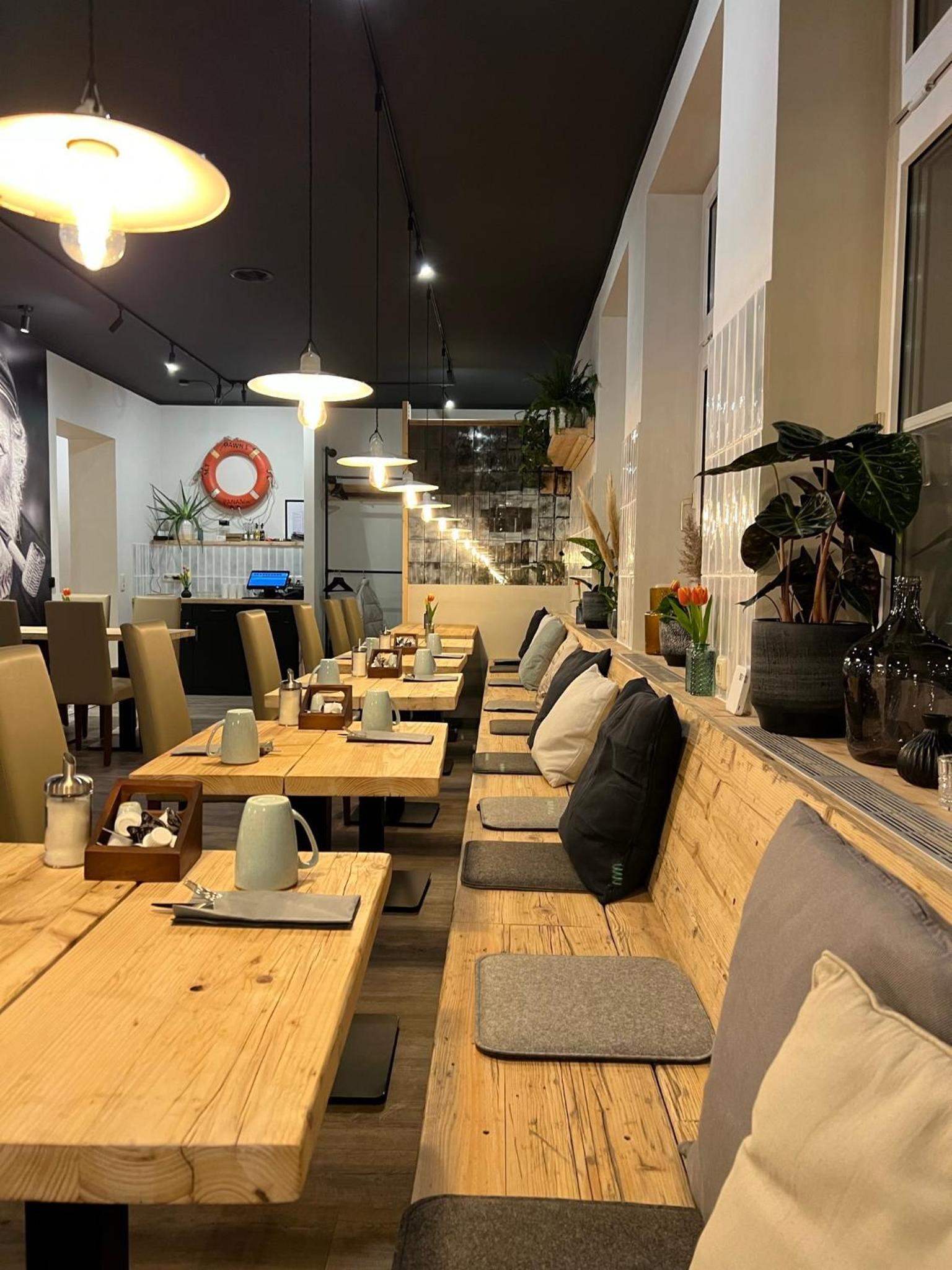 God morgenmadsbuffet. Venlig betjening og smagsfulde produkter. Ost uden! smag, et minus. Beliggenhed upåklagelig. Gode parkeringsforhold. Et alt i alt rart ophold, hvor vores små firbenede venner kunne slappe af efter et hektisk besøg i Berlin.