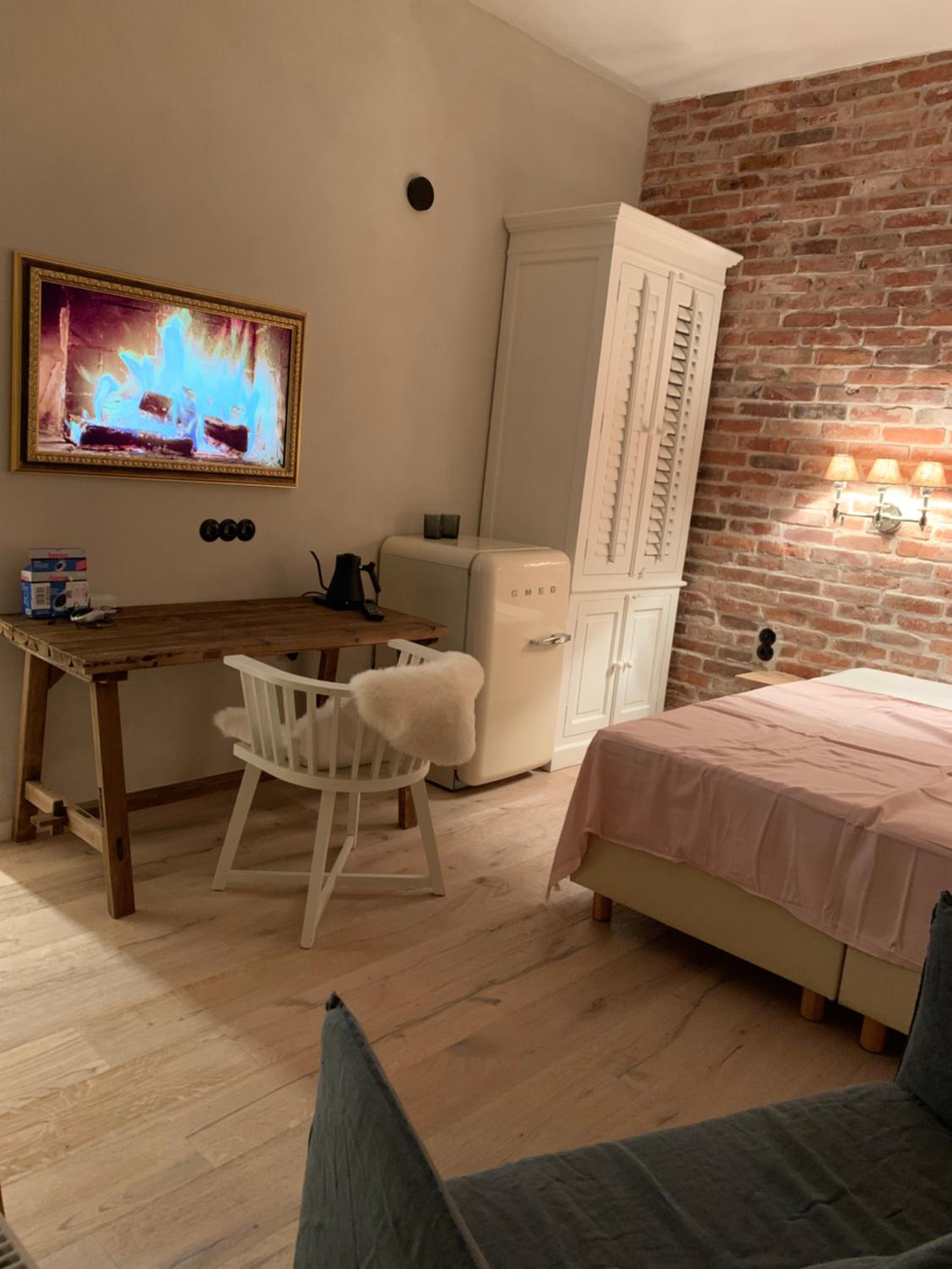 …das Badezimmer hat keine richtige Tür (lediglich eine alte Zimmertür dient als Abgrenzung, und die ist so schmal, dass man noch reinschauen kann), bei einem EZ nicht störend, aber bei einem DZ nicht so passend. Leider keine stabile Internetverbindung.