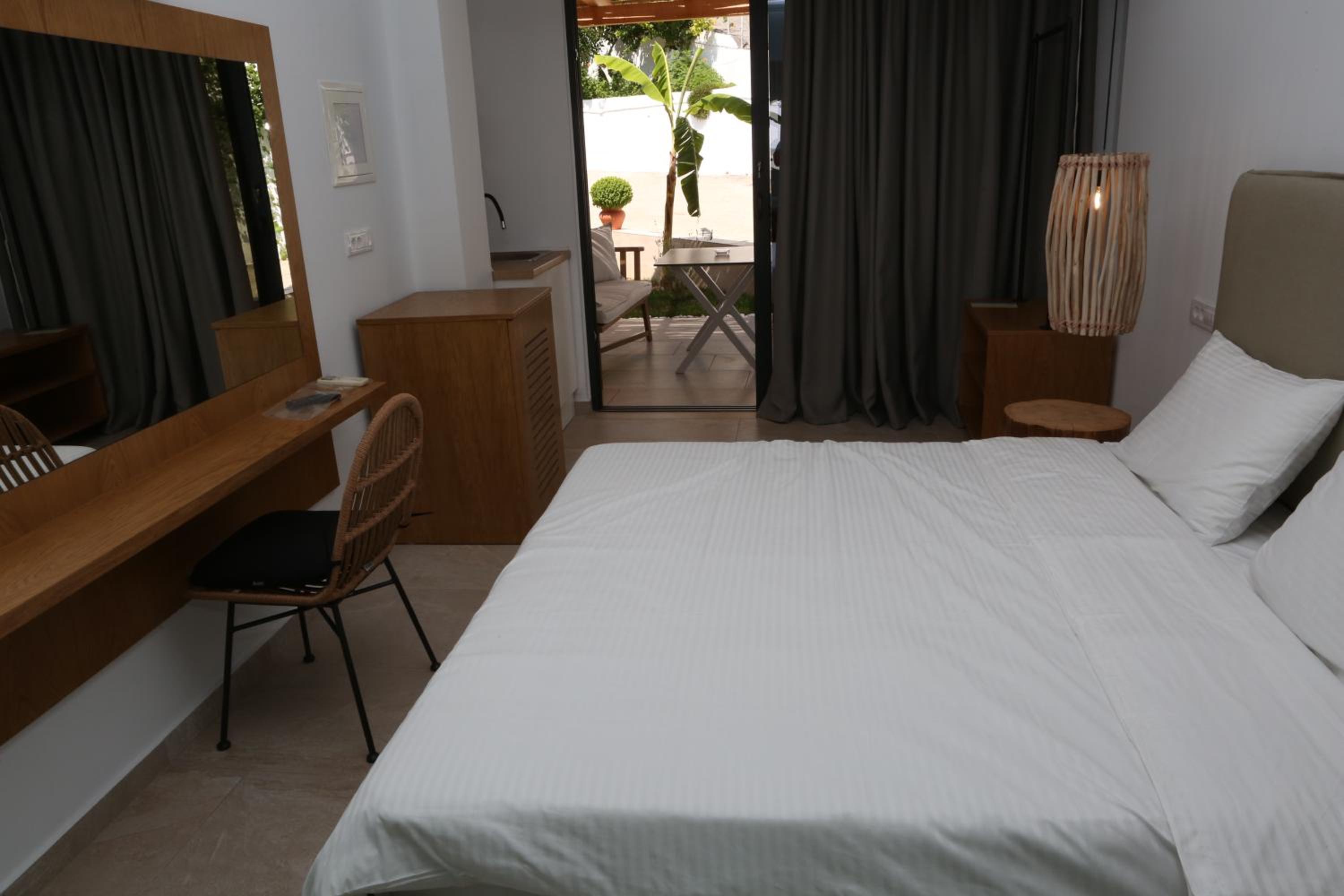 Ήσυχο δωμάτιο με θέα στον κήπο με τις μπανανιές. Λειτουργικό. Πεντακάθαρο. Πολύ φιλόξενοι οι οικοδεσπότες του. Διαθέσιμος χώρος στάθμευσης για το αυτοκίνητο.