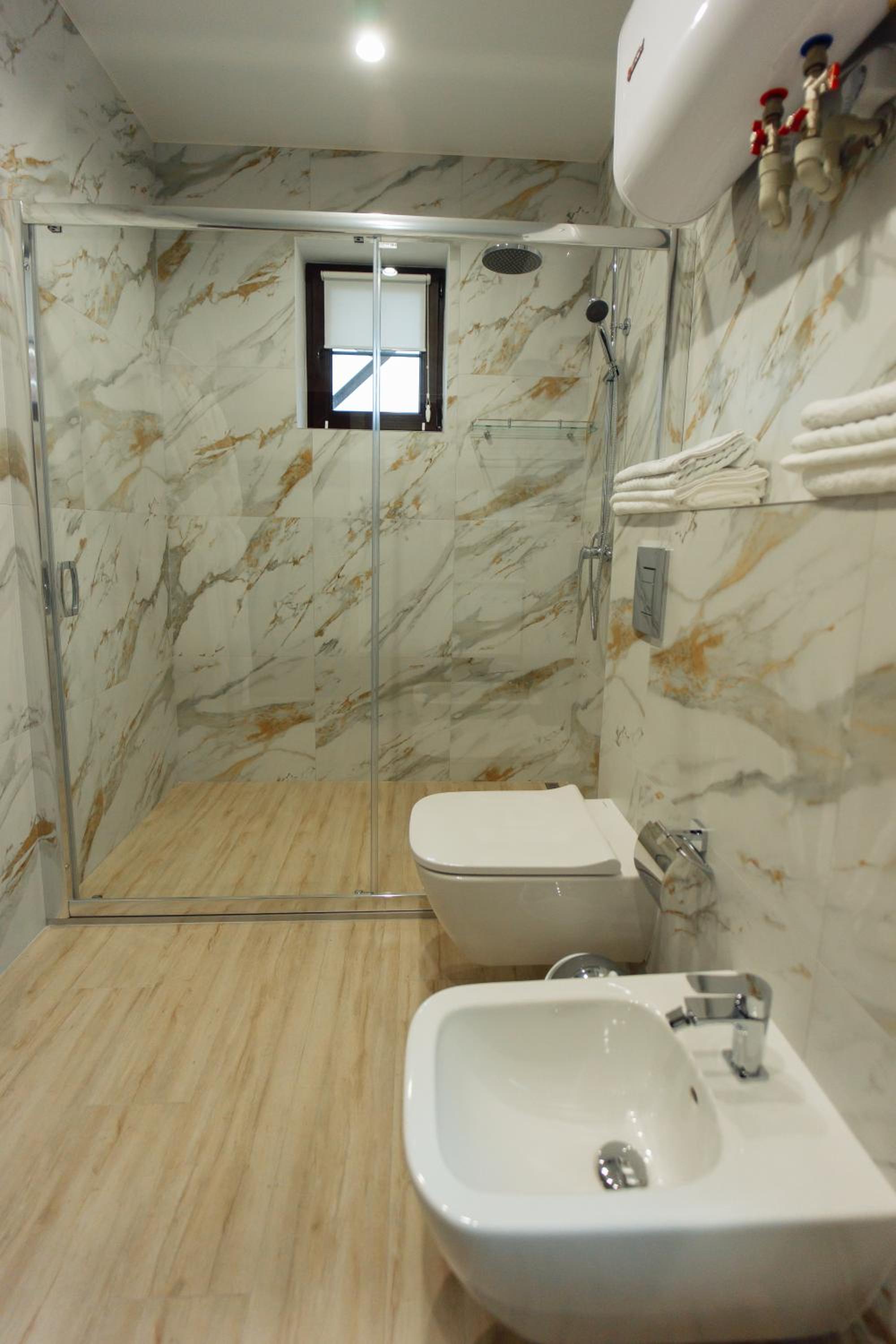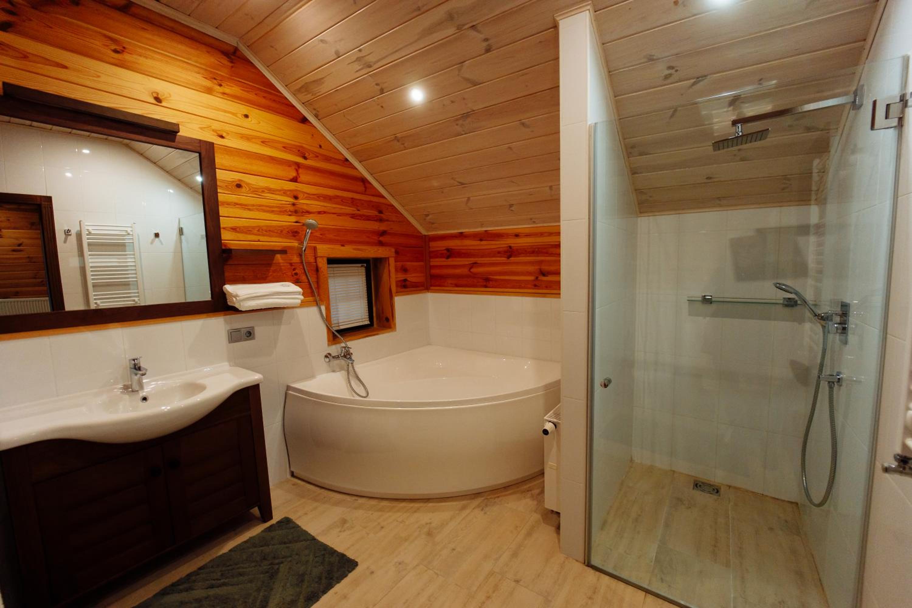 По приезду в коттедже было очень холодно, к нашему приезду можно было и включить кондиционер, хотя бы немножко к приезду гостей прогреть помещение. В душе пол тёплый, но в спальне на пол встать было невозможно от холода(