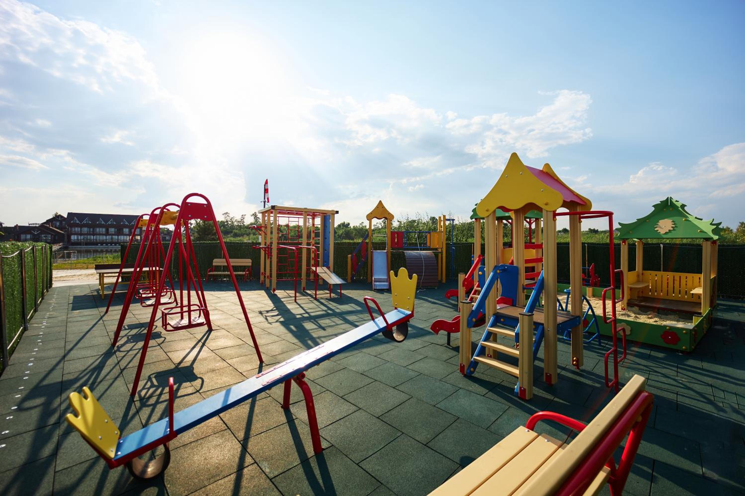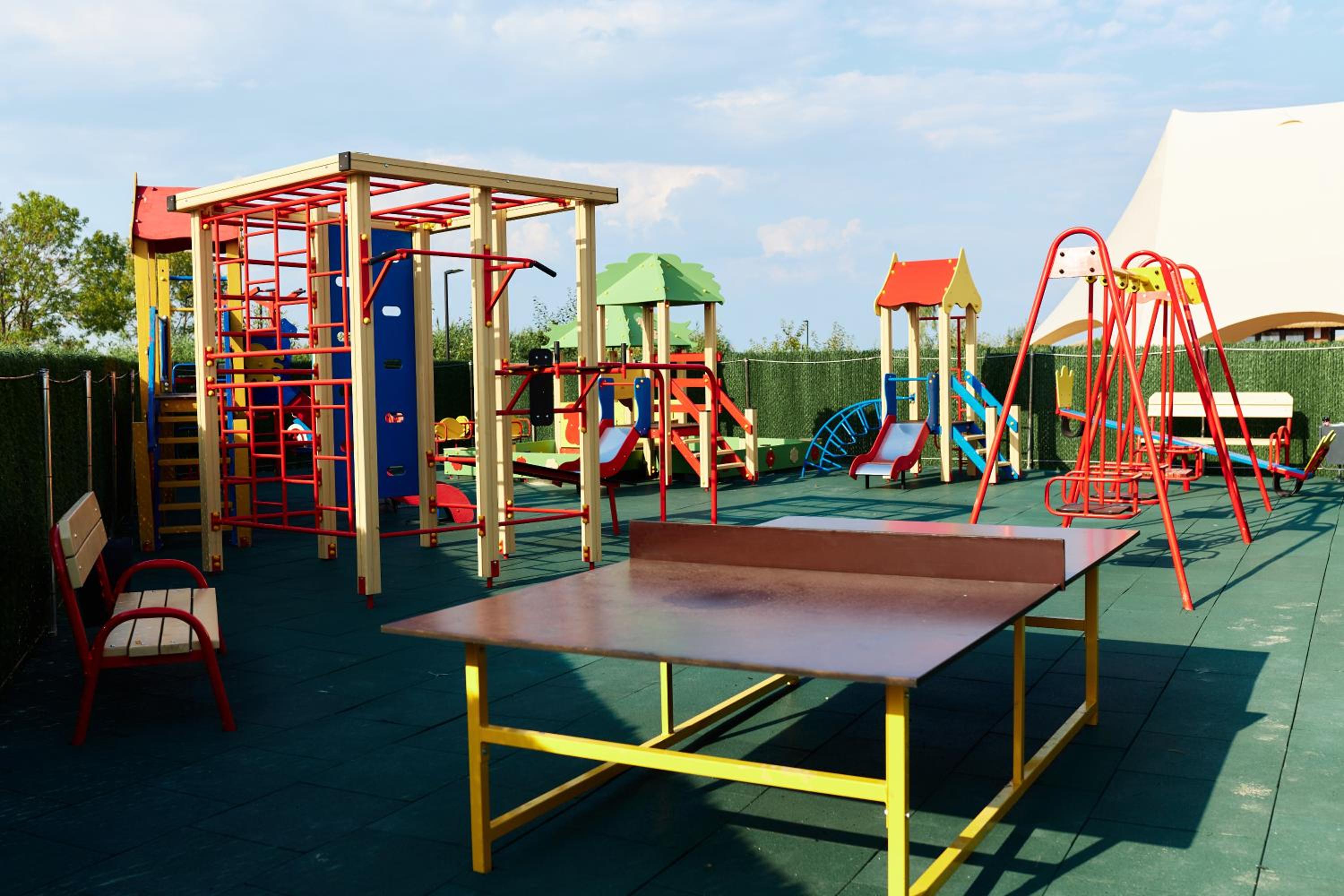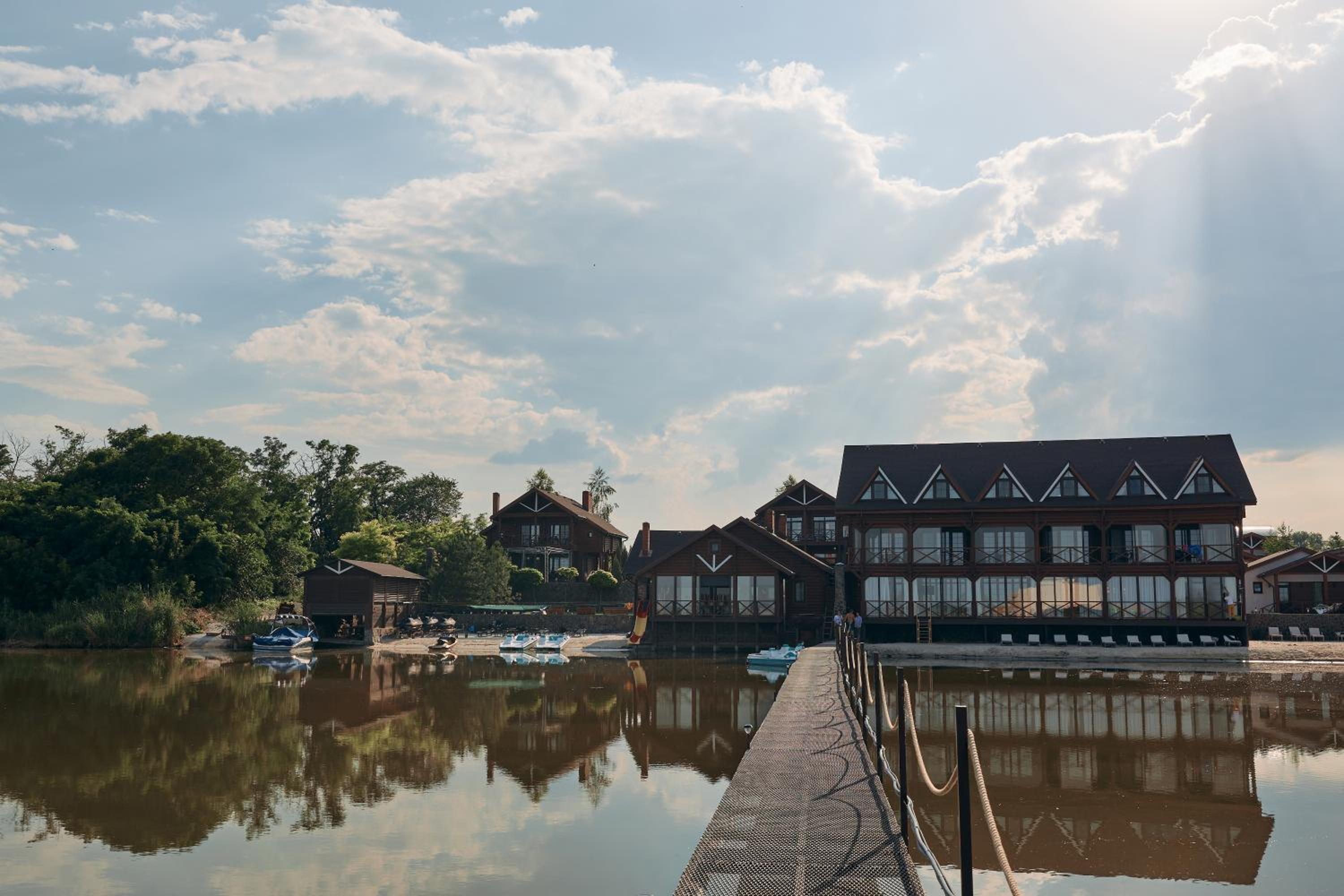 Waterloo Village in Pidhorodne offers comfortable family rooms and a children's playground, making it an ideal choice for families looking for a relaxing getaway.