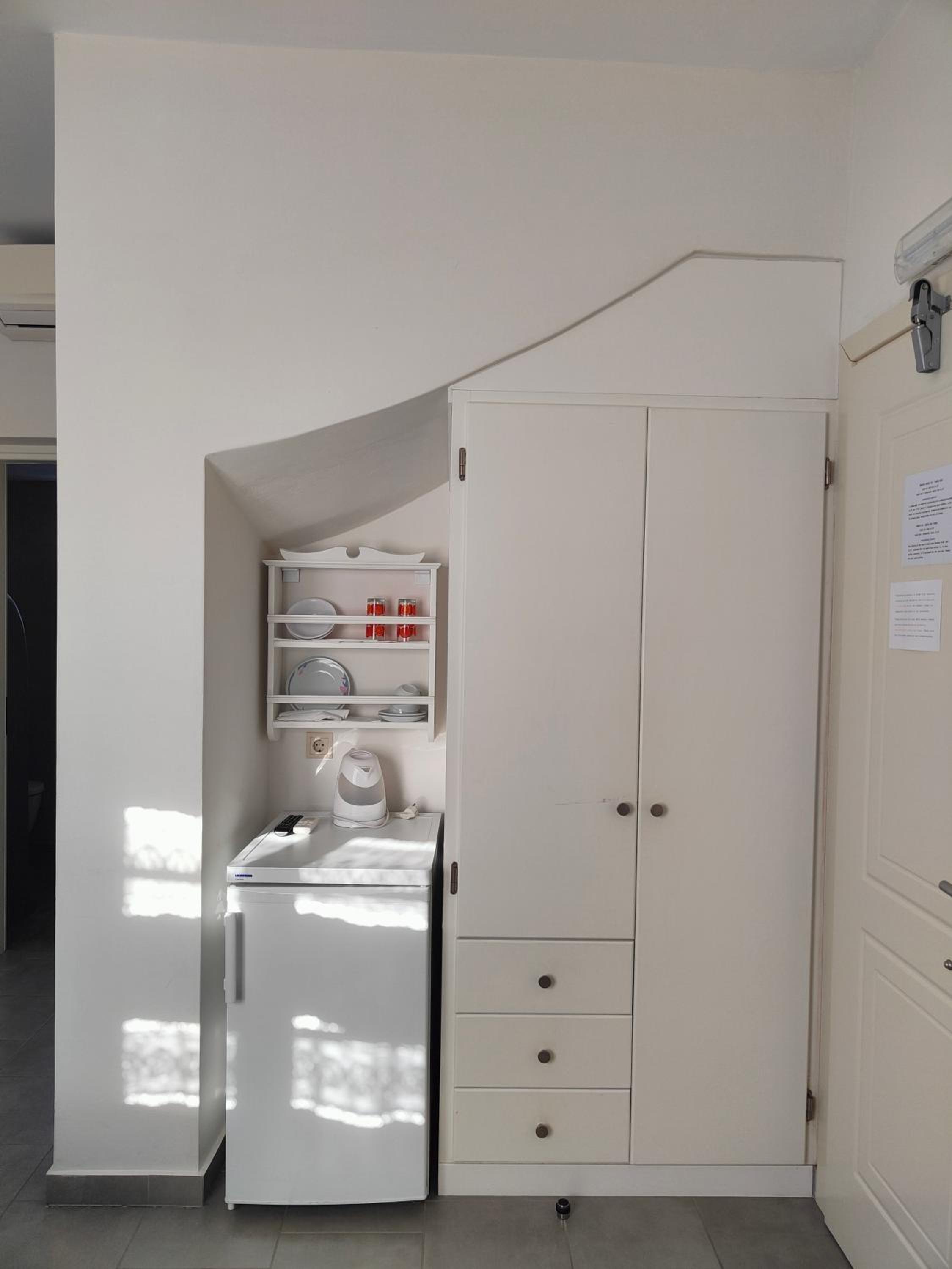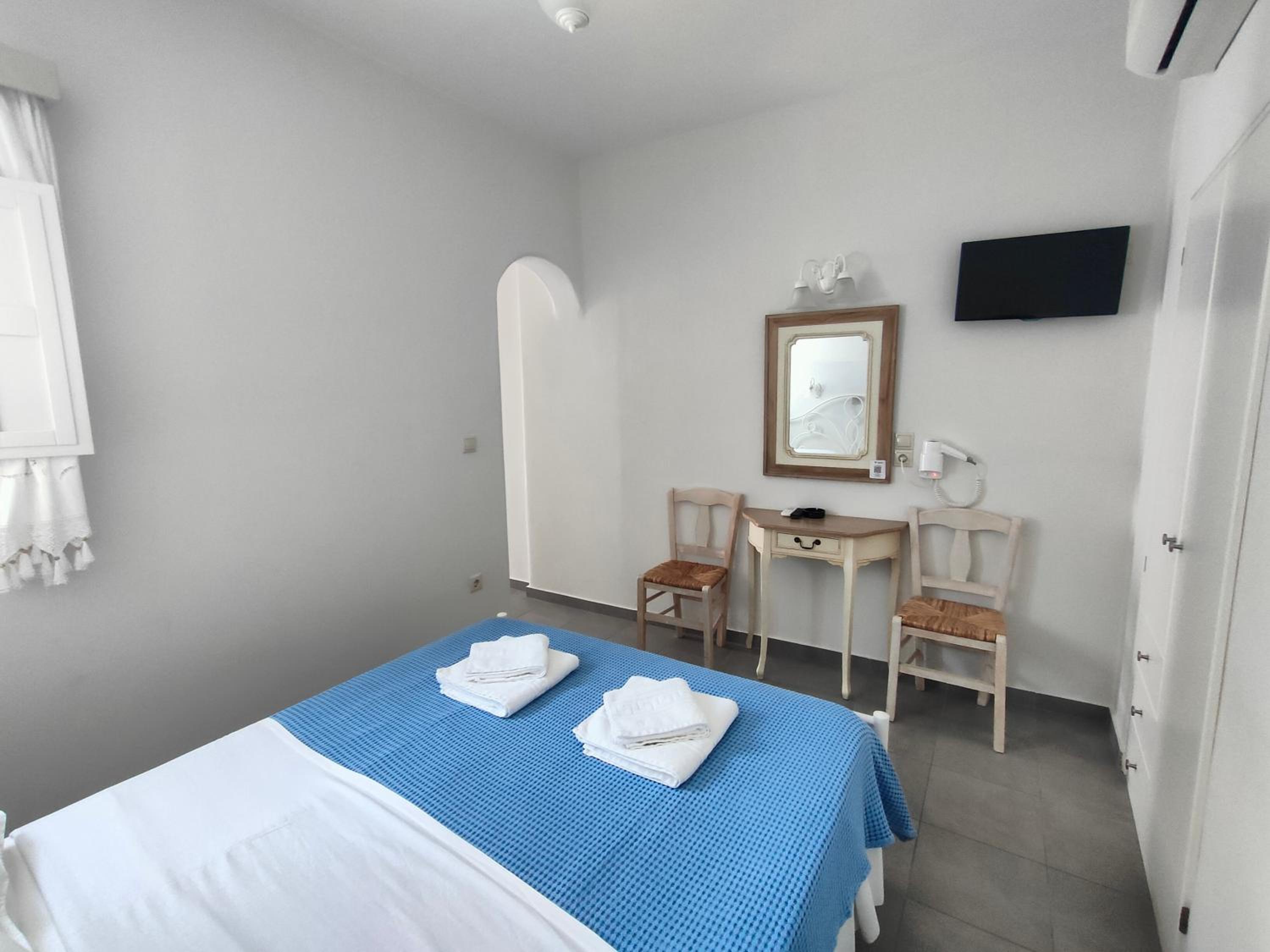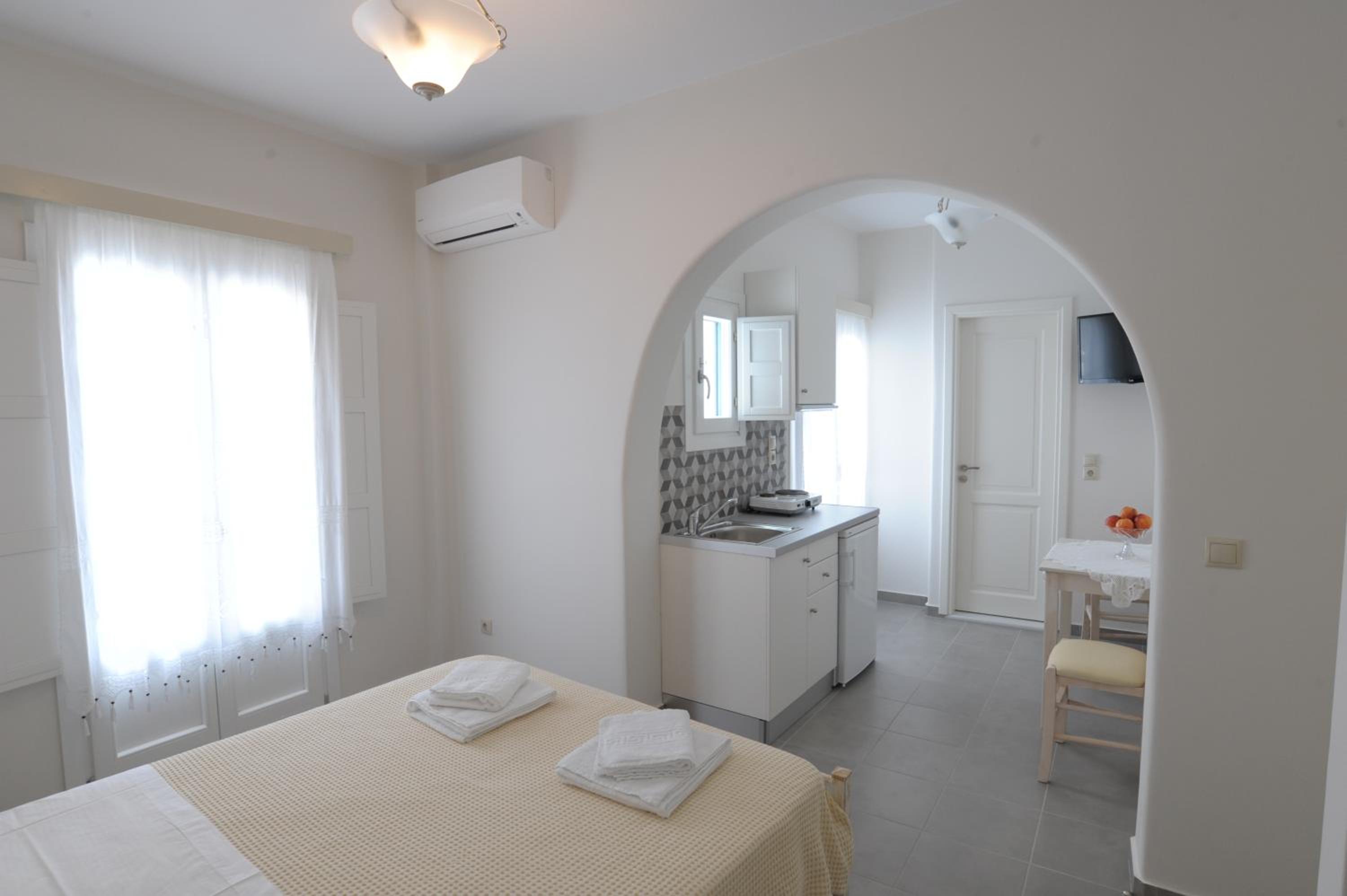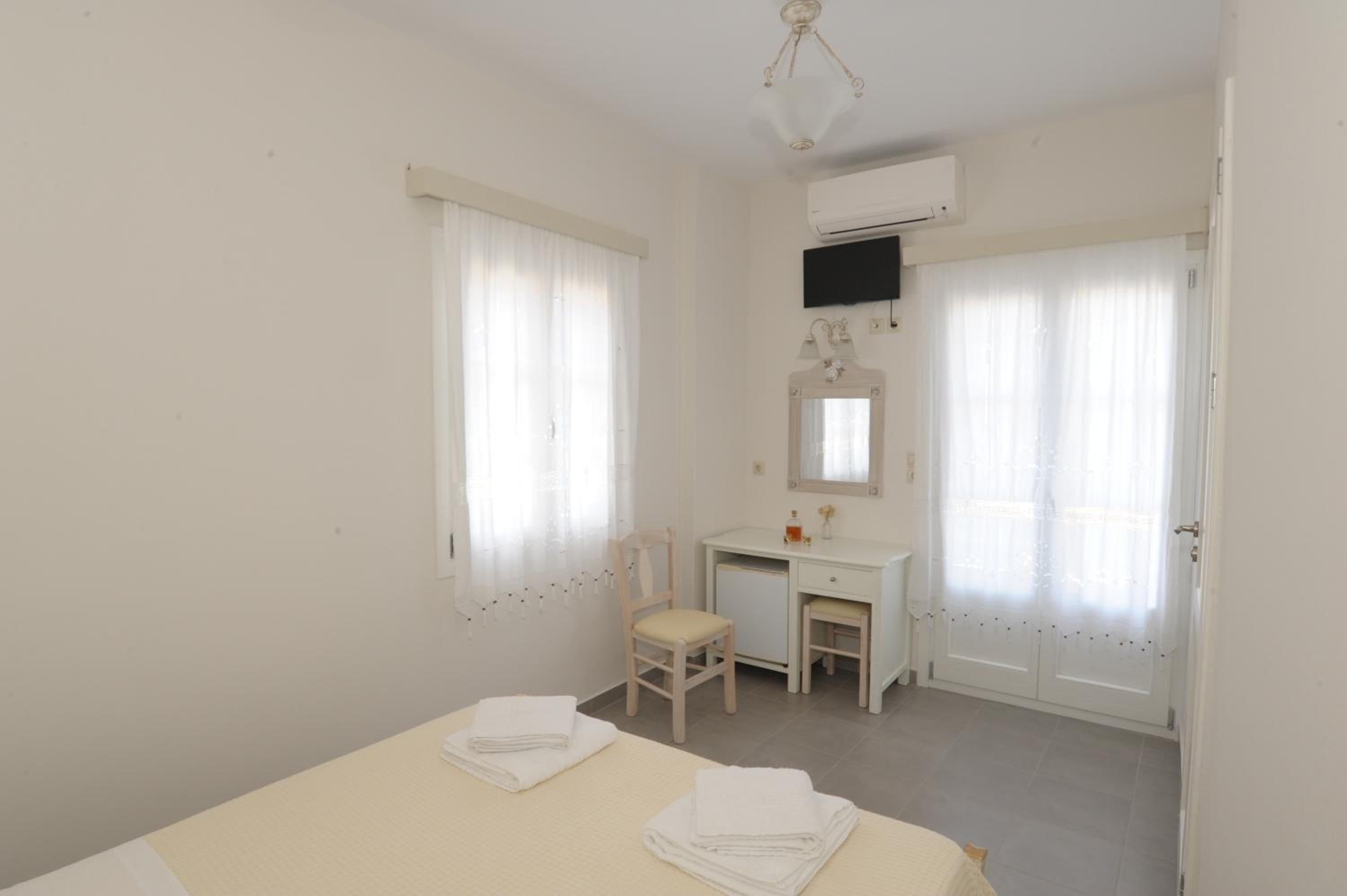 Very cozy, clean, quiet. I had a room on the top floor with a view towards Katapola, the sea and sunset. And side window opened towards the windmills. Very handy location next to the bus station, a nice bakery and a small supermarket.
